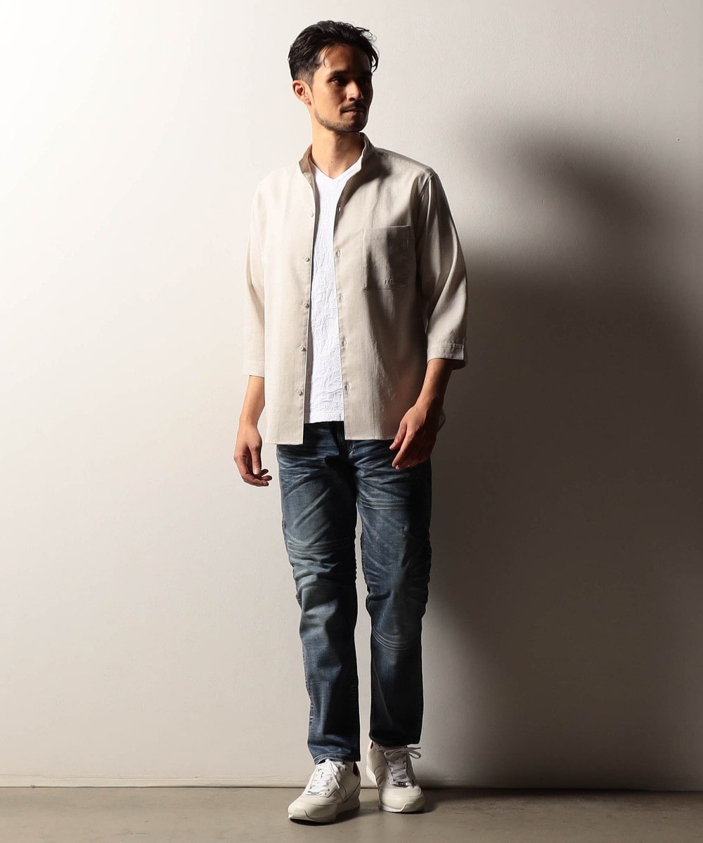 通常のスタンドカラーより首に沿う様なマオカラー風の設定にする事で、衿先の返り方もウイングカラーの様な見え方になります。