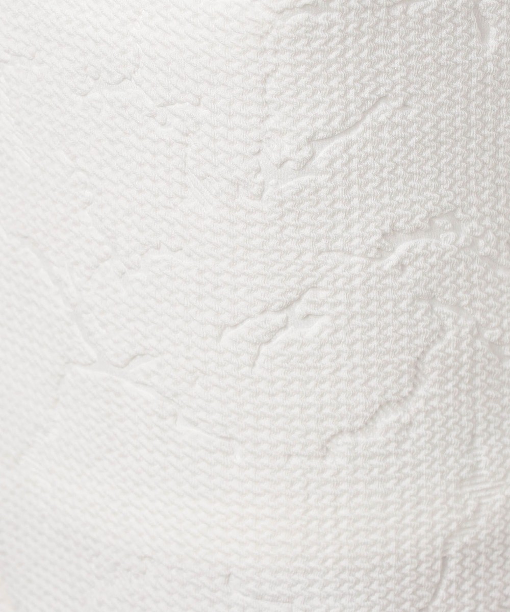ストレッチ性のある地柄ブリスタ-ジャカ-ドをベ-スに、2種類の柄をエンボス加工で施しました。