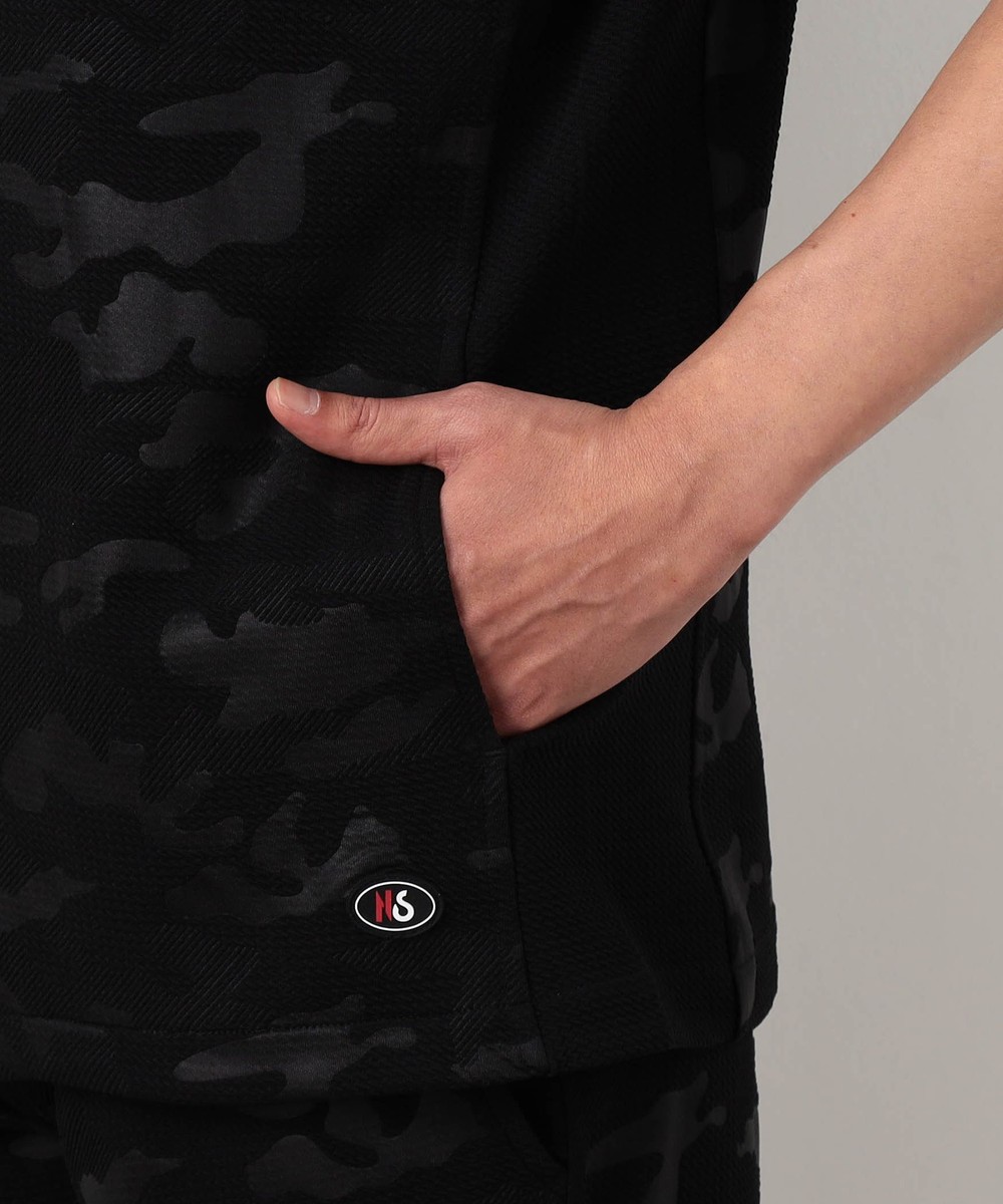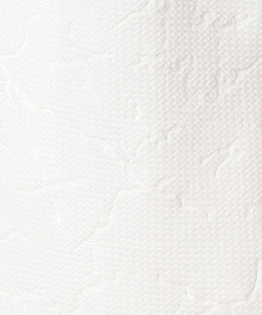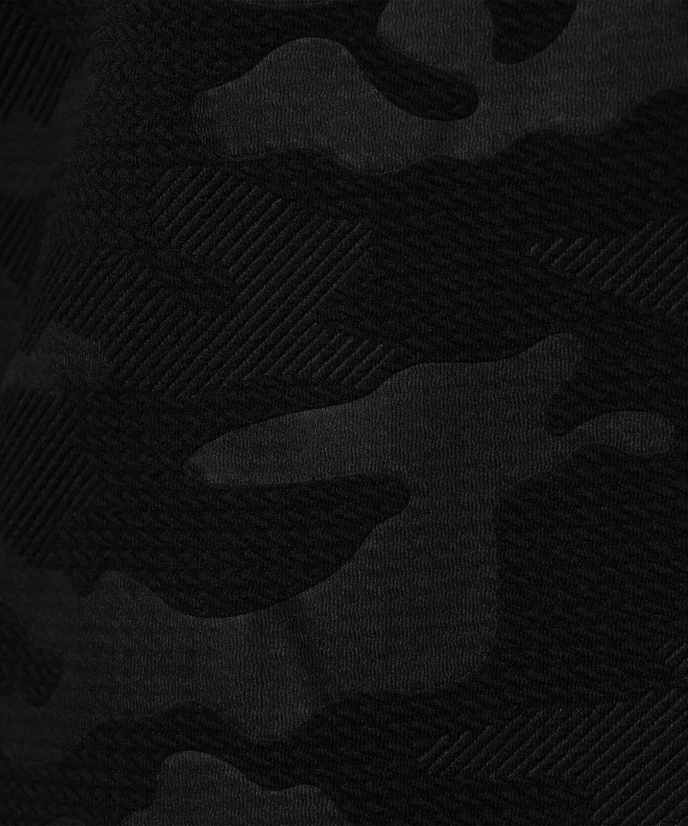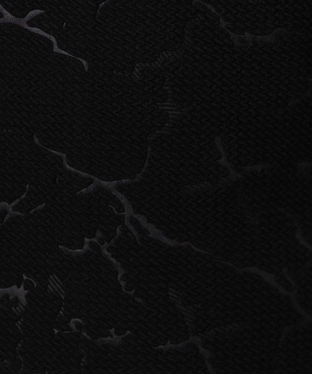 ストレッチ性のある地柄ブリスタ-ジャカ-ドをベ-スに、カモフラ柄とクラック柄をエンボス加工したオリジナル素材を使用しています。ベ-ス生地の凹凸感もプラスして表情のある仕上がりです。タテヨコのマルチストレッチ性、エアリ-な軽さとペ-パ-ライクな張り感が特徴で速乾性と防シワ性にも優れています。