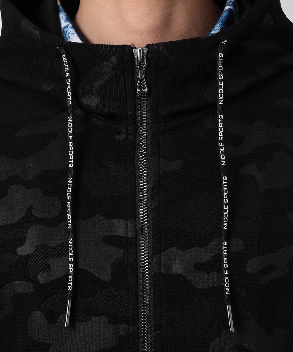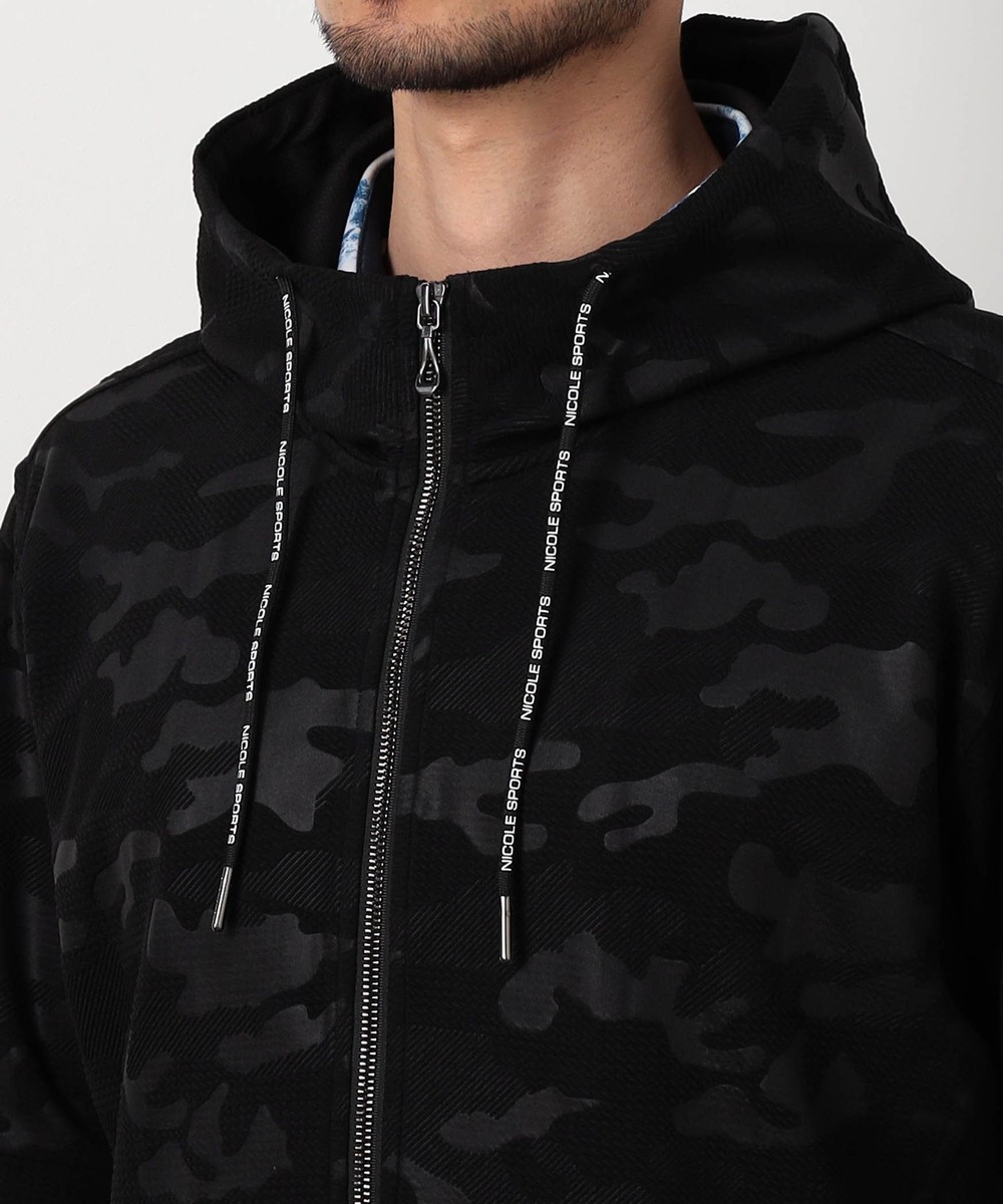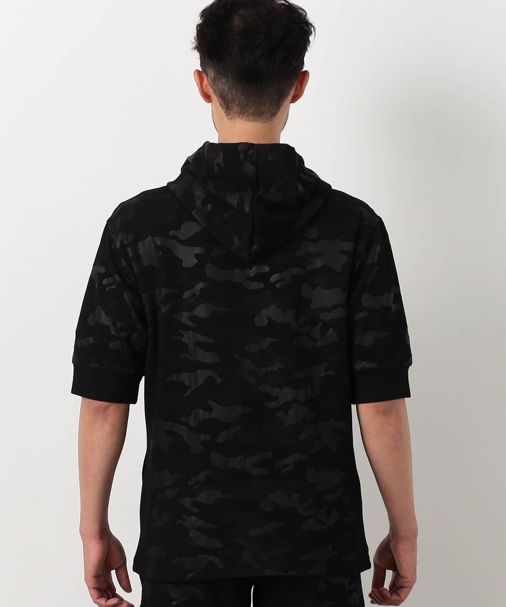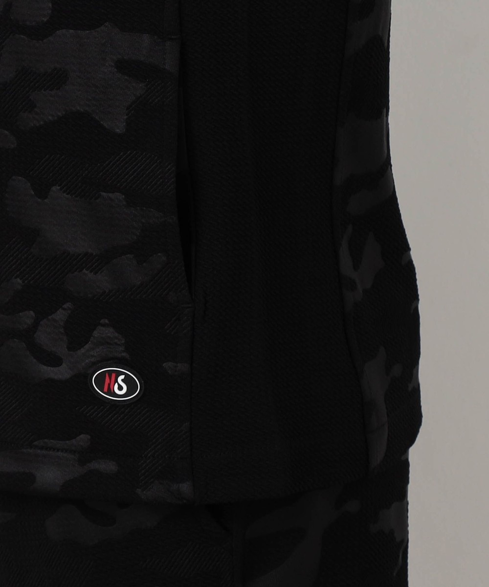 ストレッチ性のある地柄ブリスタ-ジャカ-ドをベ-スに、カモフラ柄とクラック柄をエンボス加工したオリジナル素材を使用しています。ベ-ス生地の凹凸感もプラスして表情のある仕上がりです。タテヨコのマルチストレッチ性、エアリ-な軽さとペ-パ-ライクな張り感が特徴で速乾性と防シワ性にも優れています。