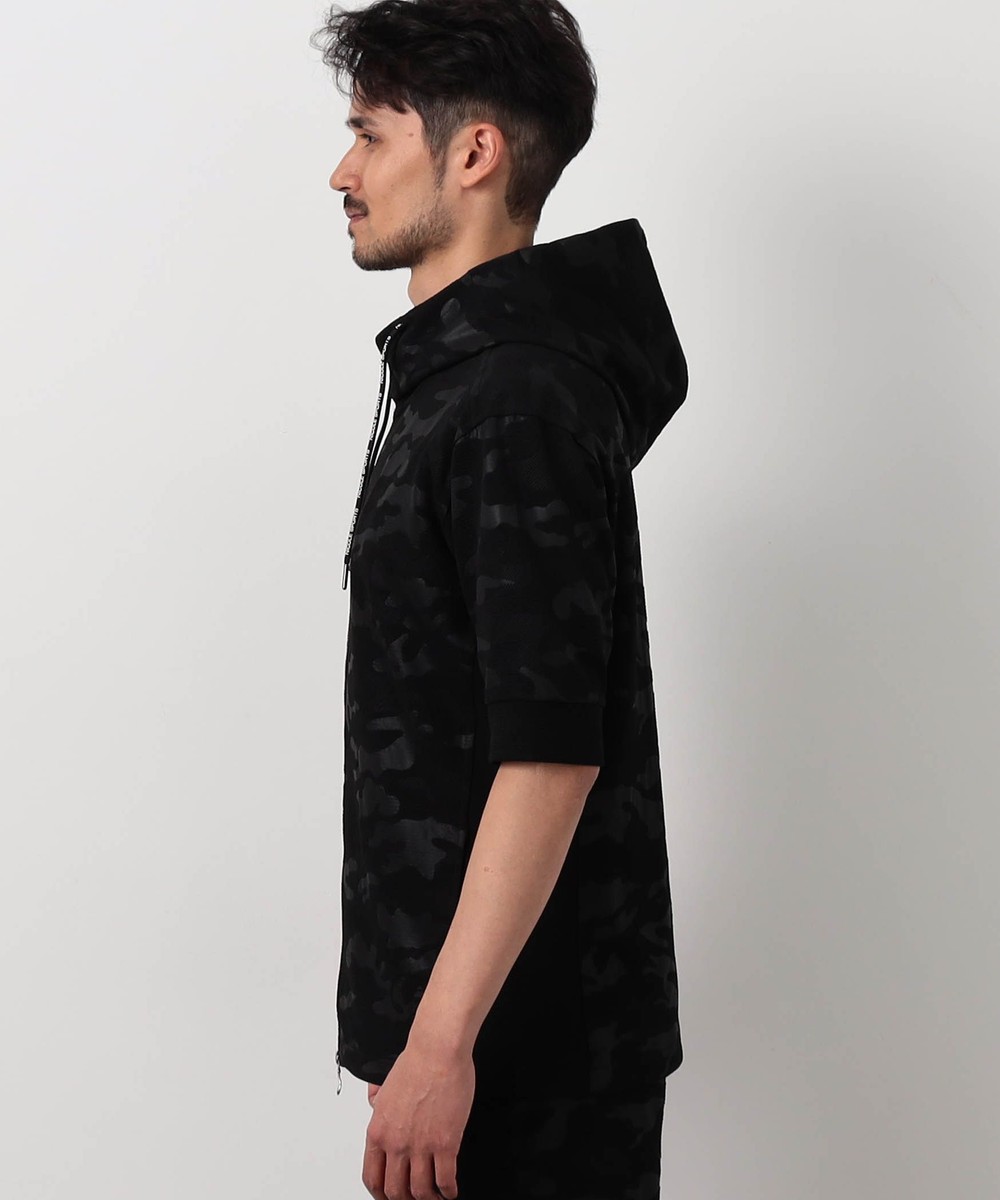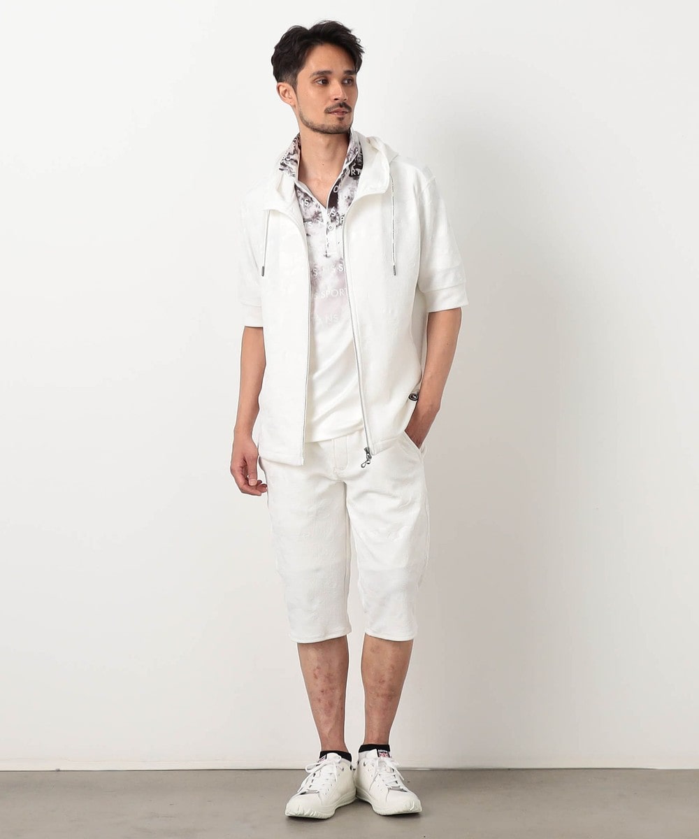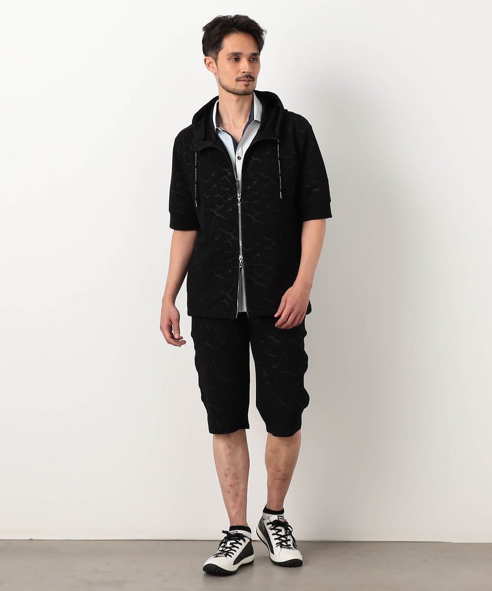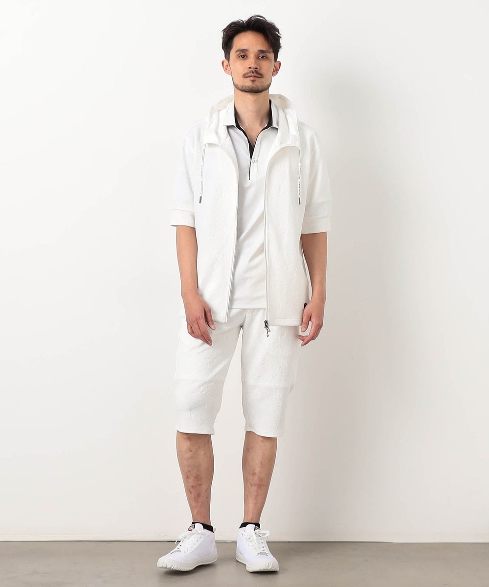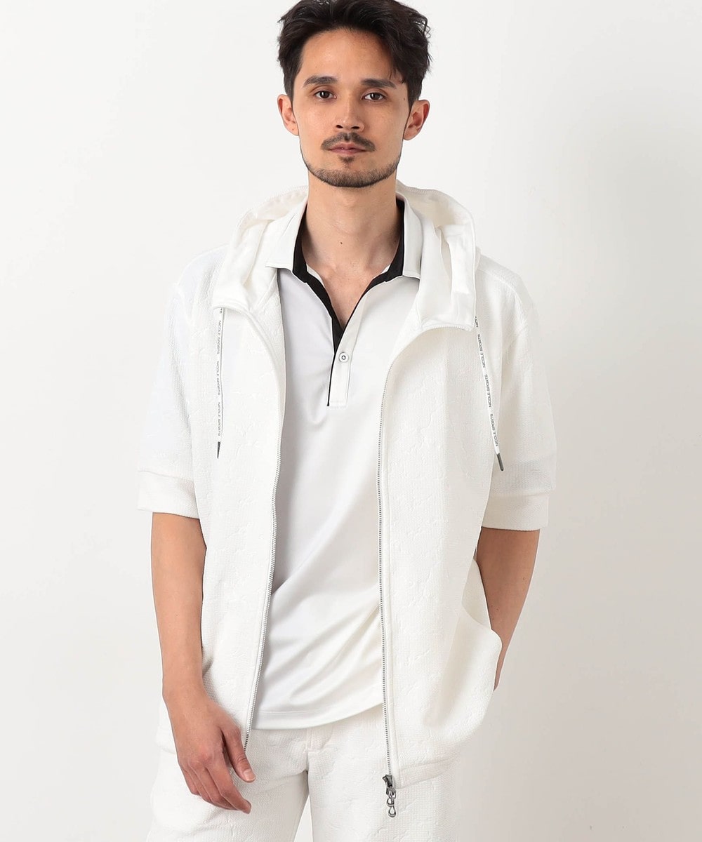Tシャツやタンクトップの上から、夏でもサラッと羽織れるハイネック5分袖フルZIPパーカになります。ブランドロゴを繊細にプリントしたスピンドルがデザインポイント。夏のコーディネイトのアクセントになります。