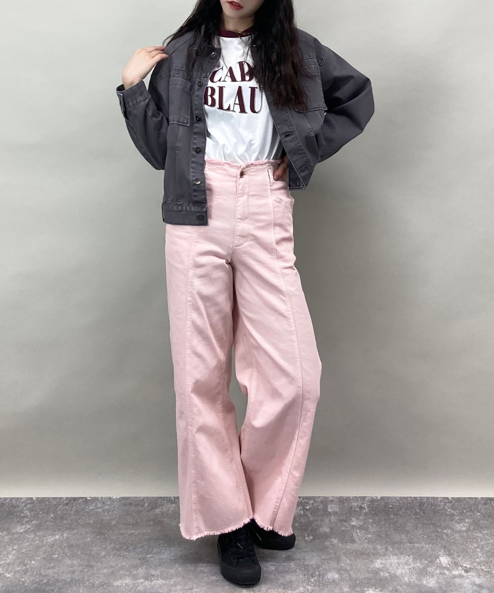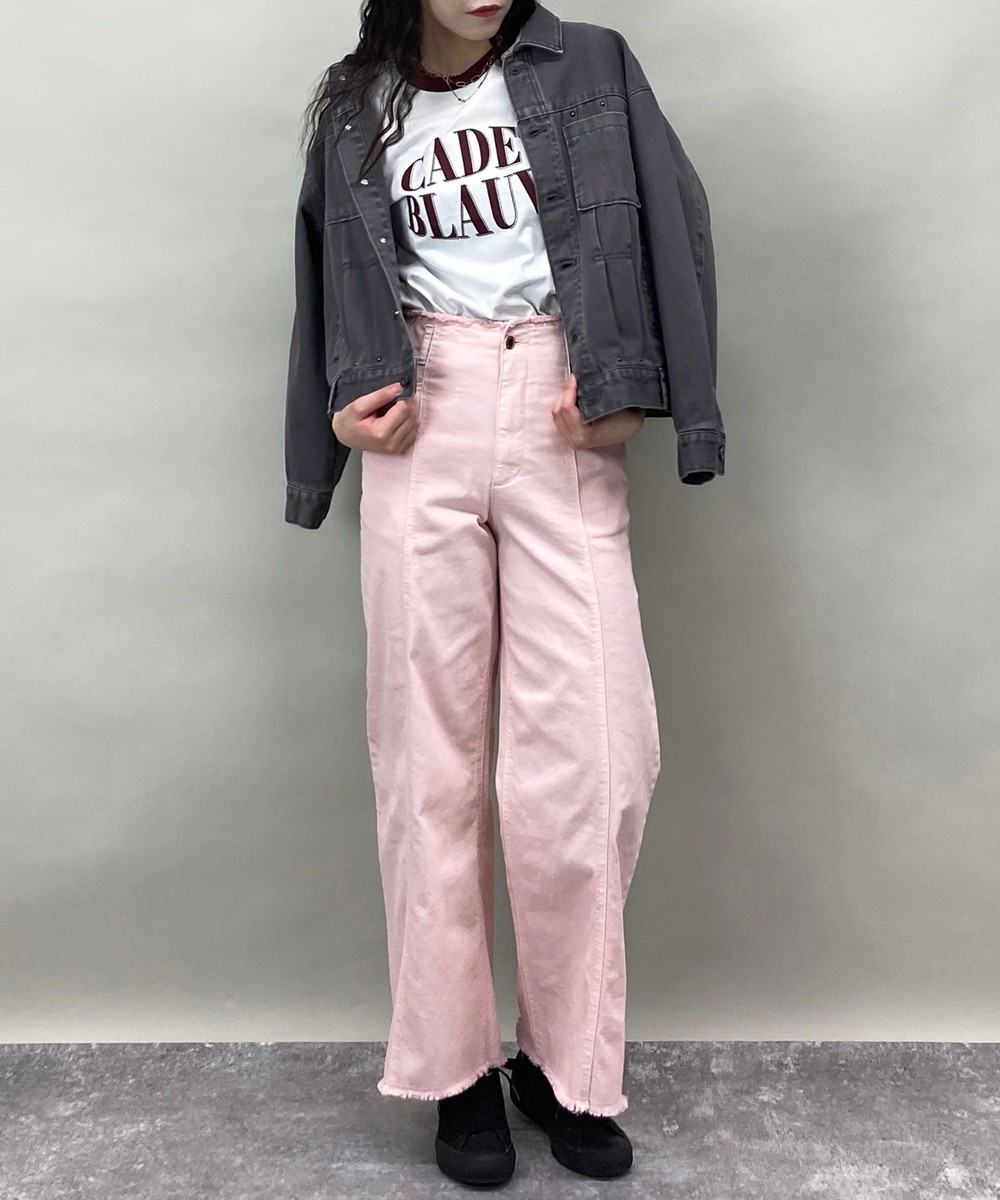 デニムジャケットとの相性もよくセットアップ風に着たインナーに差し色として着用もおすすめです。