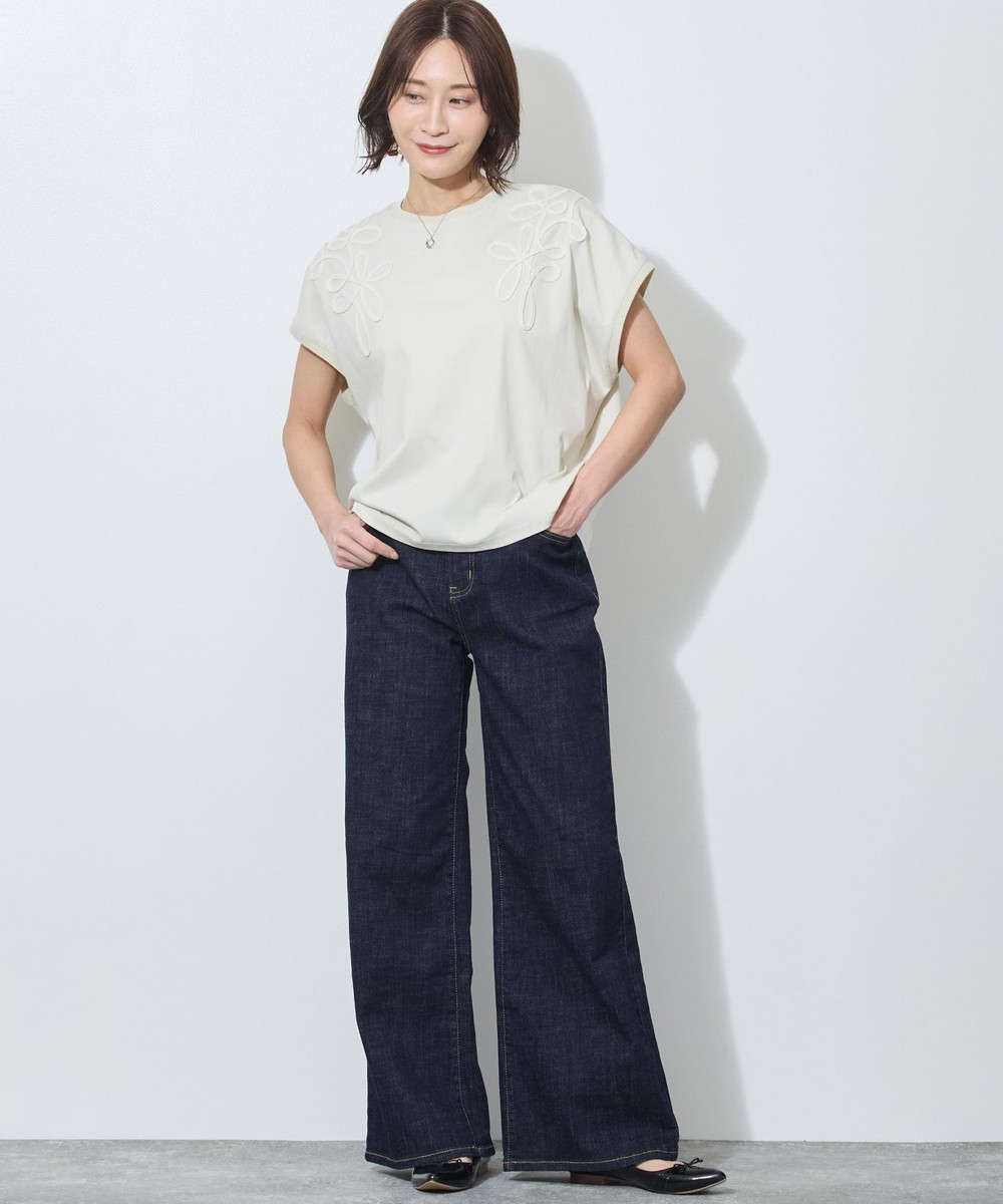ルーズな履き心地が味わえる、ワイドデニムパンツ。