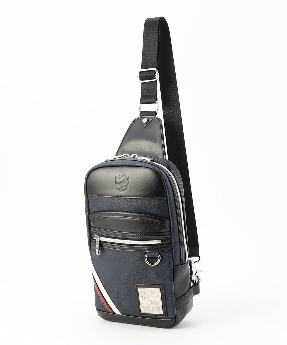 フェイクレザーに型押ししたランパントモチーフとシックな光沢感が特徴のアドミラル別注ボディバッグ。機能性とデザイン性を兼ね備えたバランスの良いアウトポケットと斜めのラインがディテールポイント。メインポケットはファスナー口を大きめに設定し使い勝手も申し分ない仕上がりです。フロントに配したコラボロゴ刻印のメタルプレートも上質な雰囲気を醸し出しています。