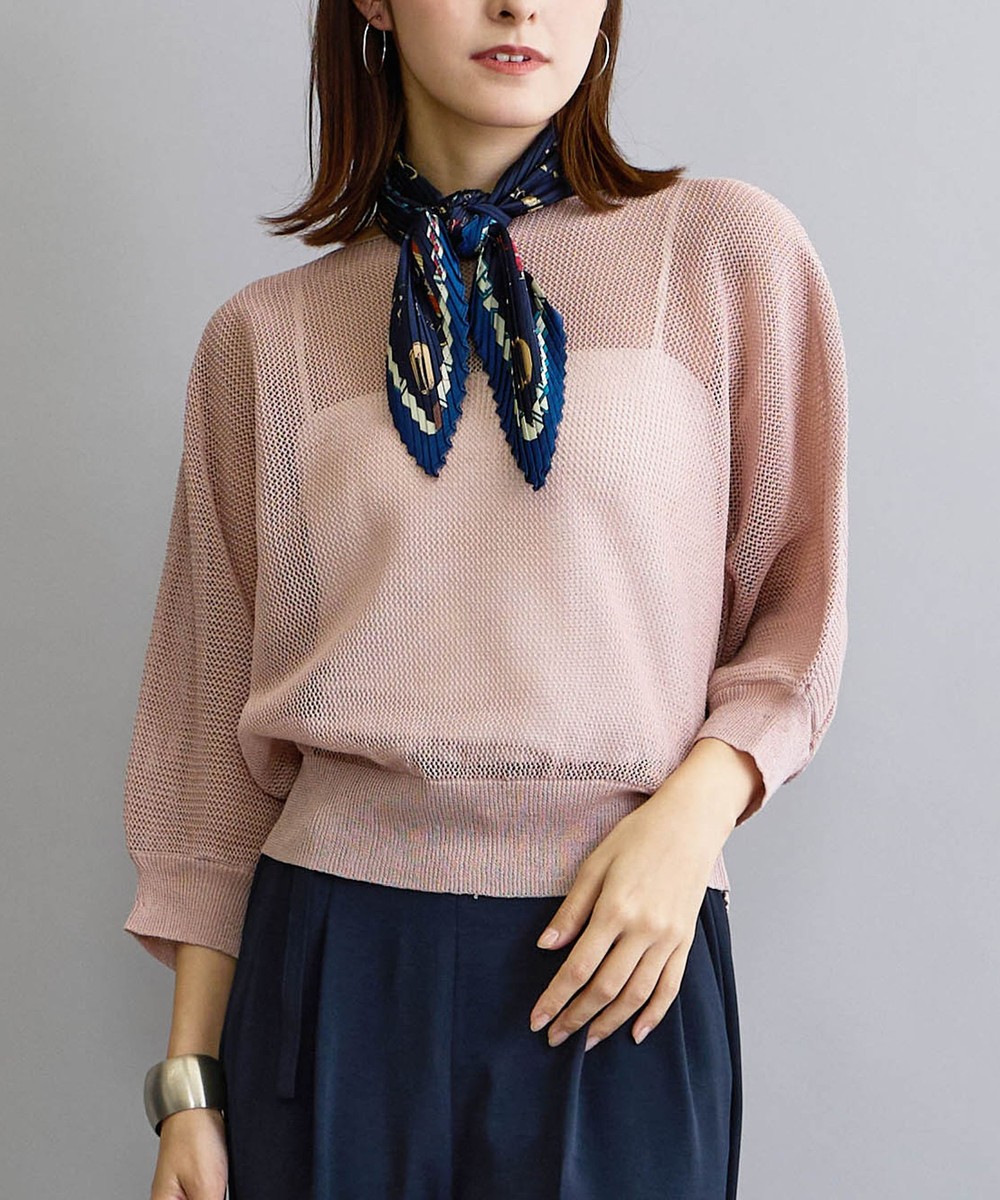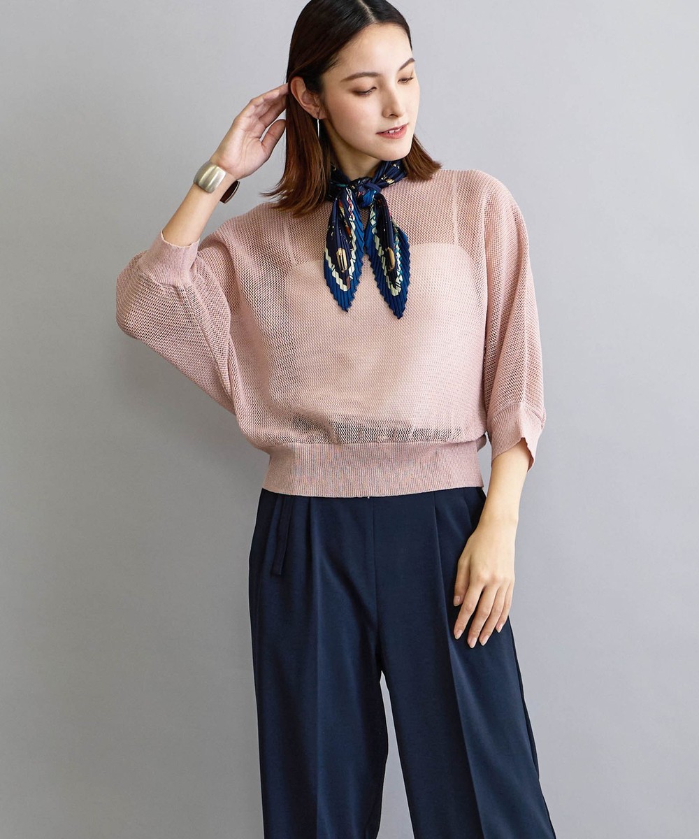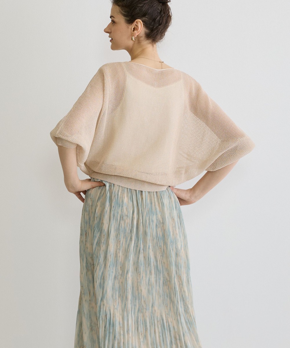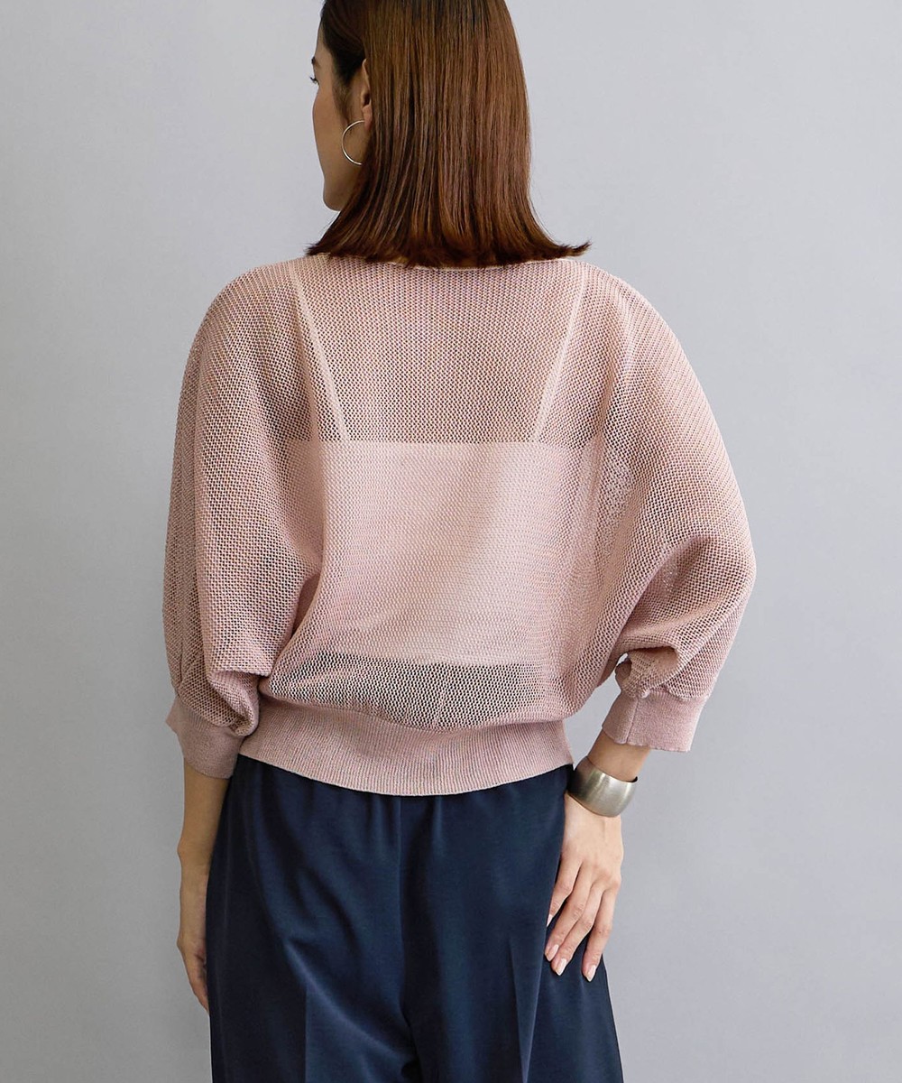 麻調の透け感のある編地が清涼感があり見た目も着心地も涼し気です。