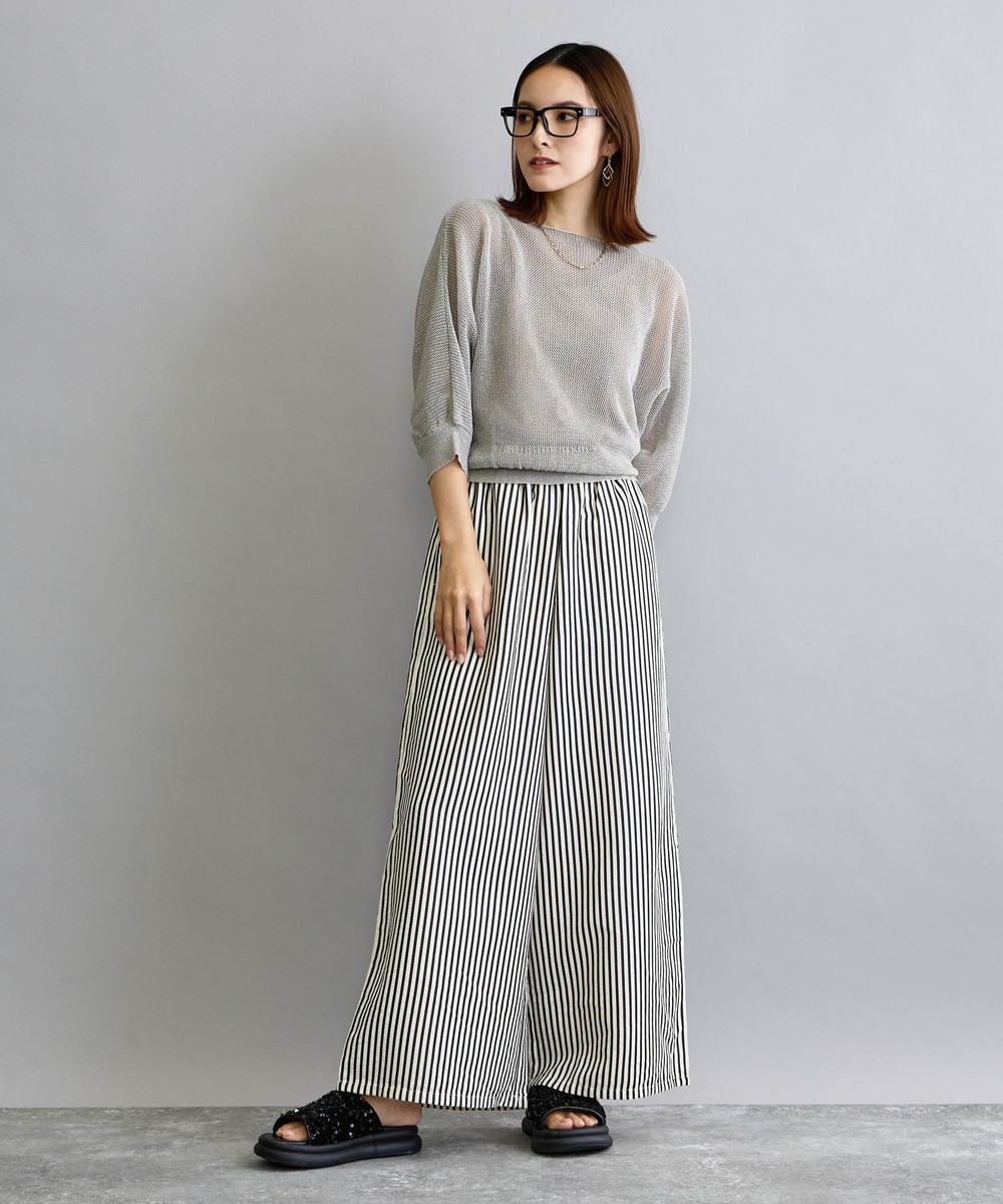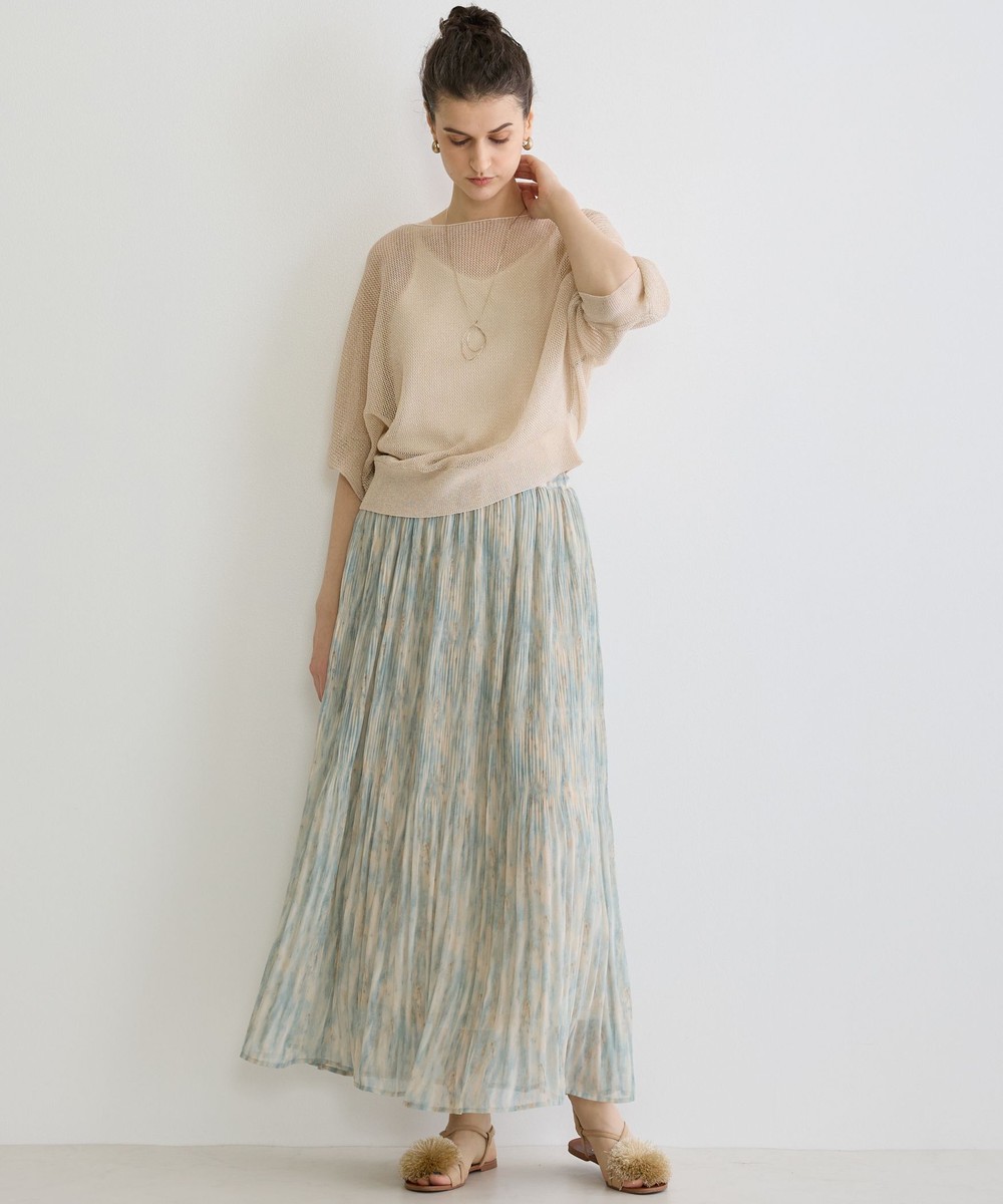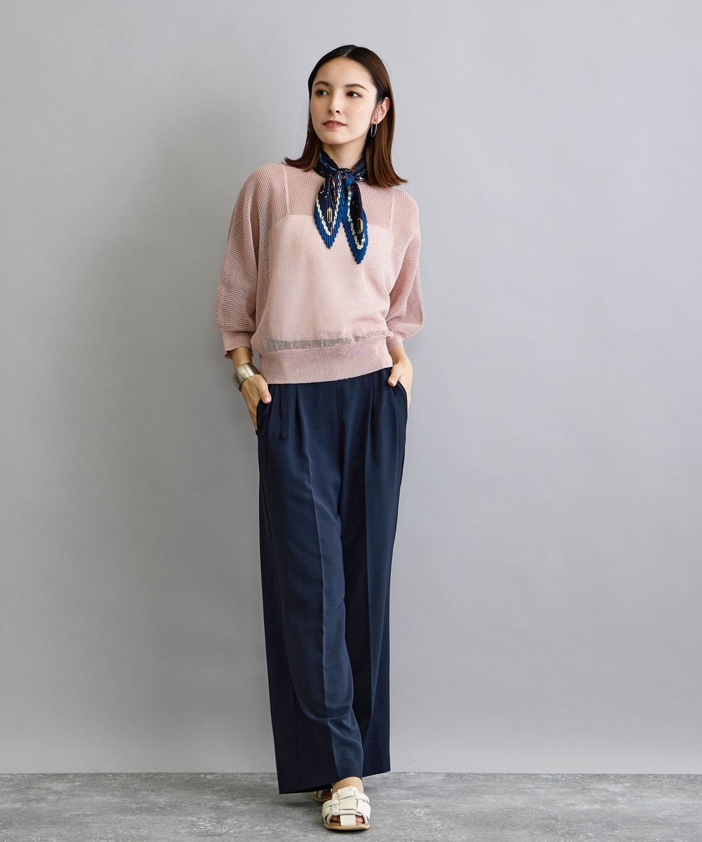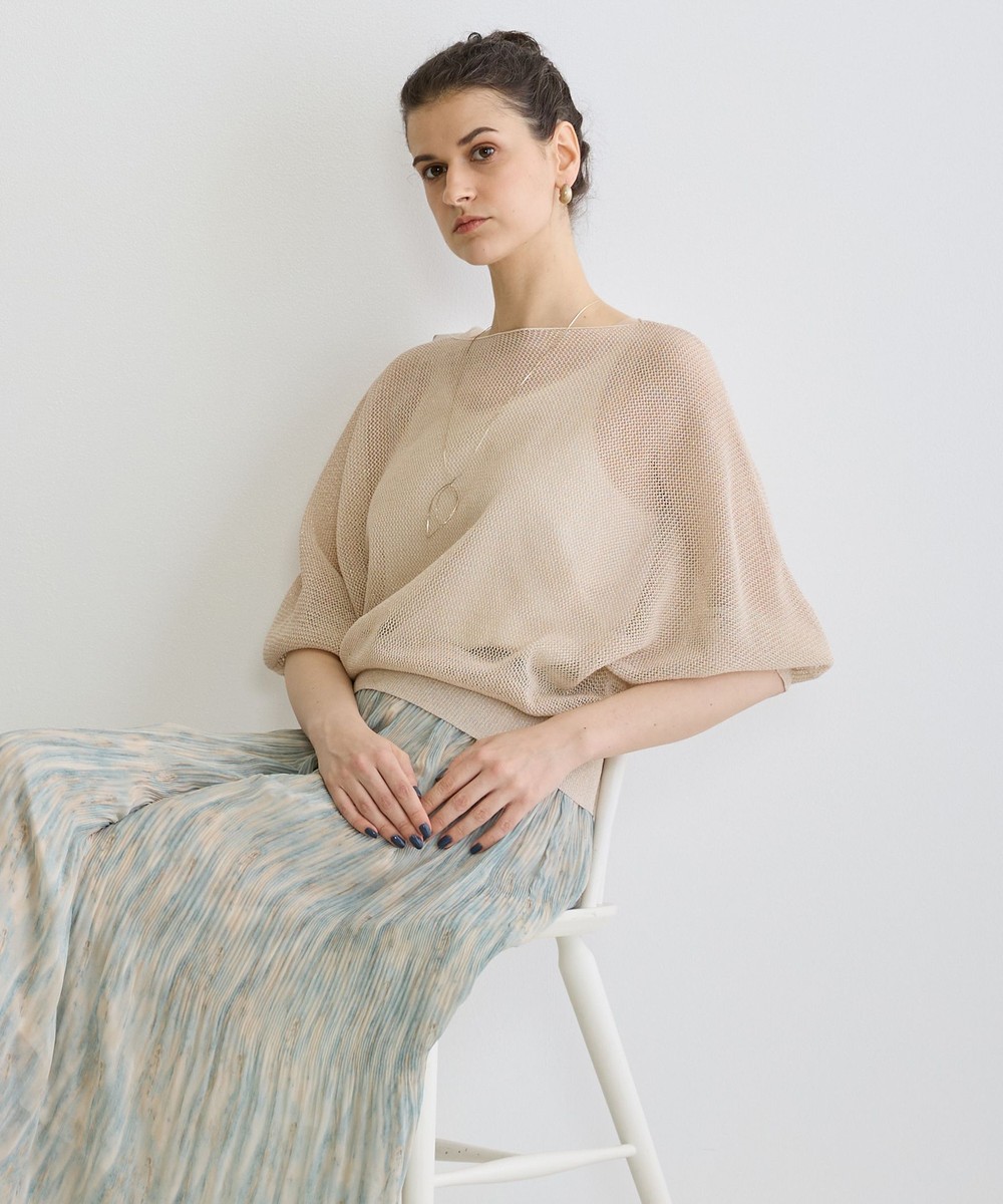 麻調の透け感のある編地が清涼感があり見た目も着心地も涼し気です。
