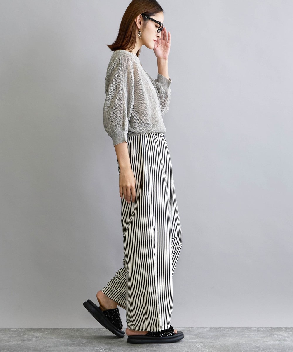 ほんのりキラキラした素材は、カジュアルから大人キレイめコーデなどスタイルの雰囲気を変えやすいアイテムです。
