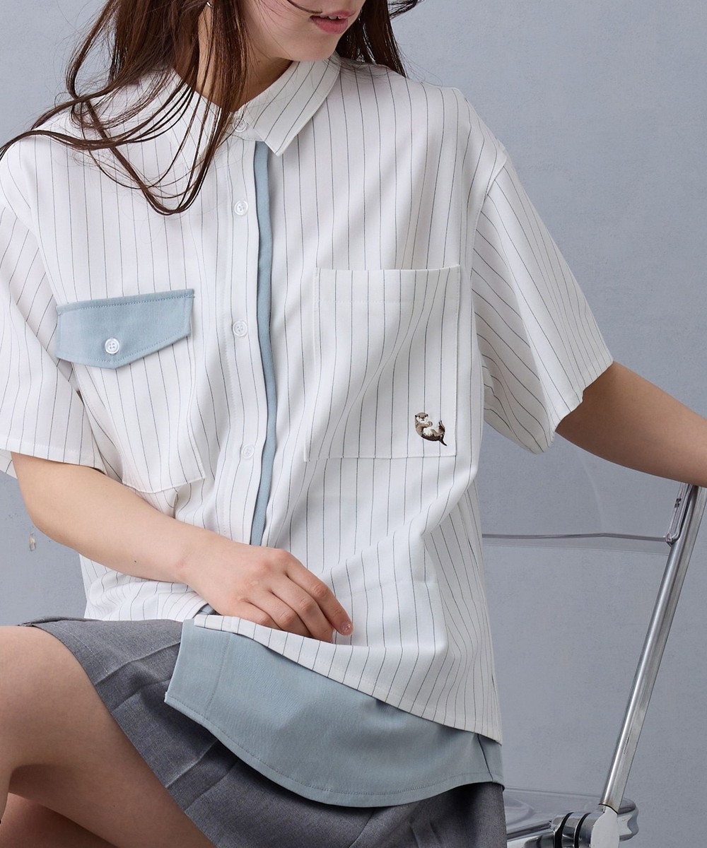 胸ポケットにはキュートなカワウソのワンポイント刺繍が入っており、コーディネートのポイントに!