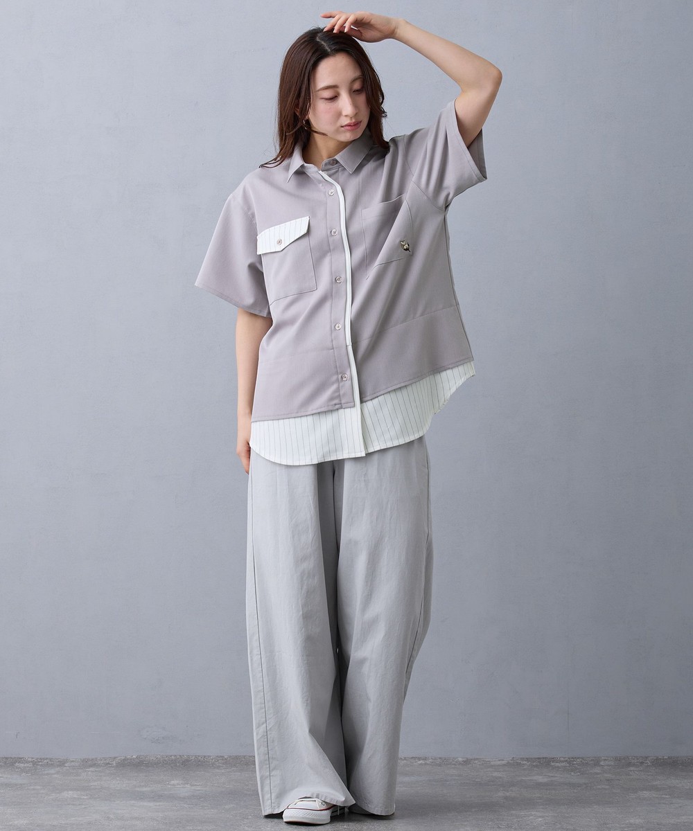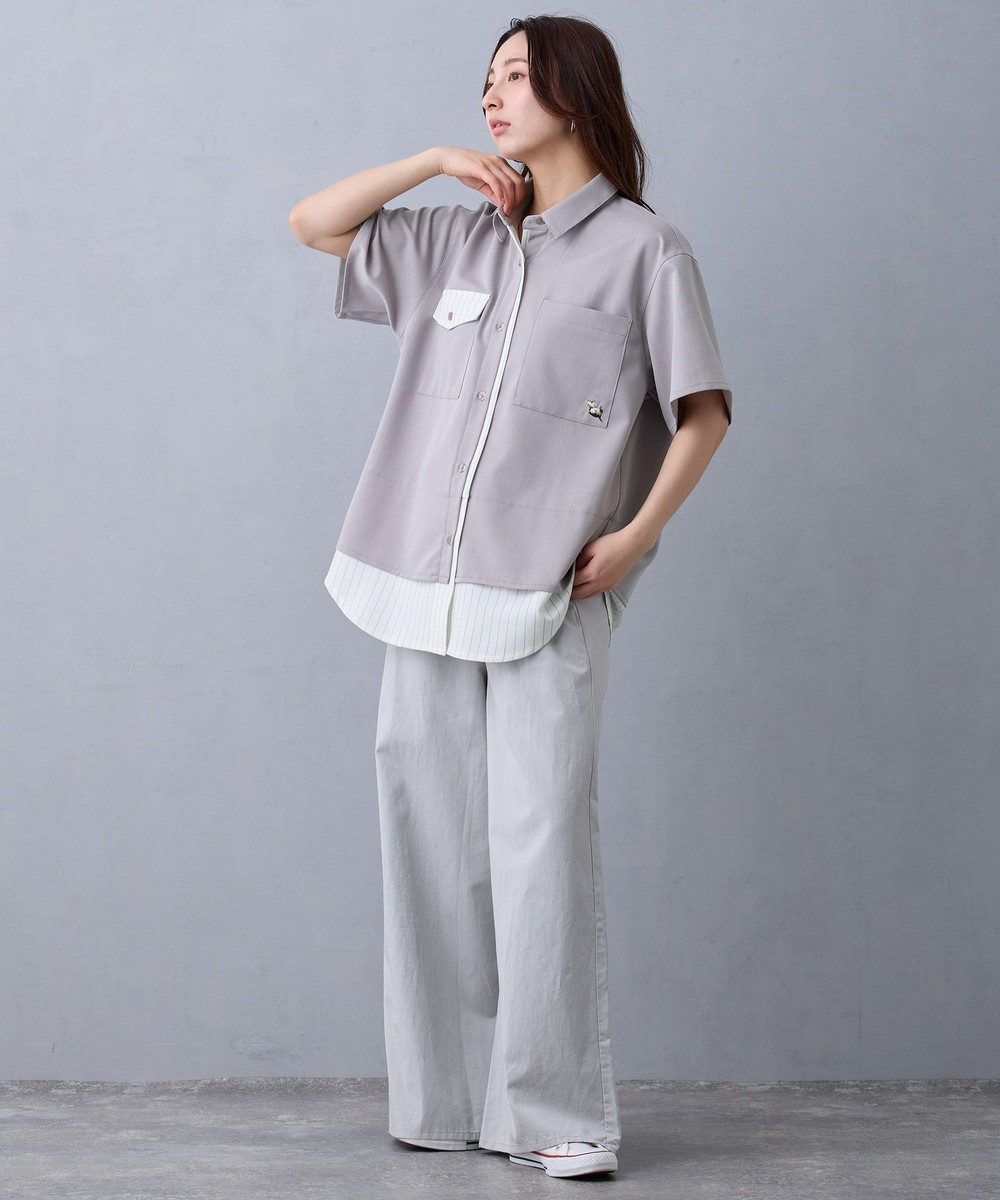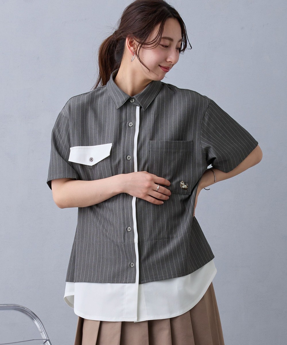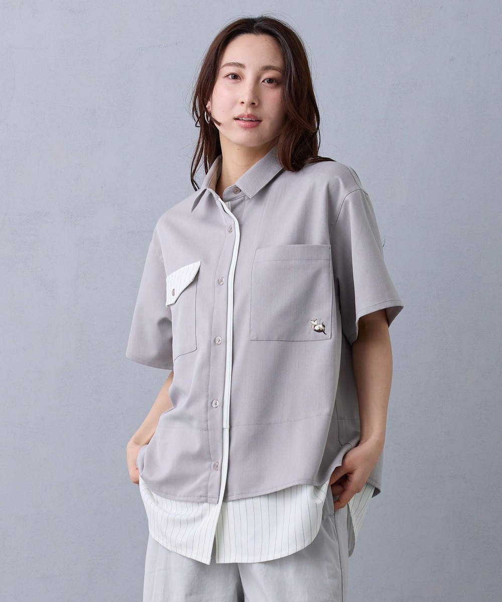 トレンド感のあるレイヤード風デザインのオーバーシャツ。