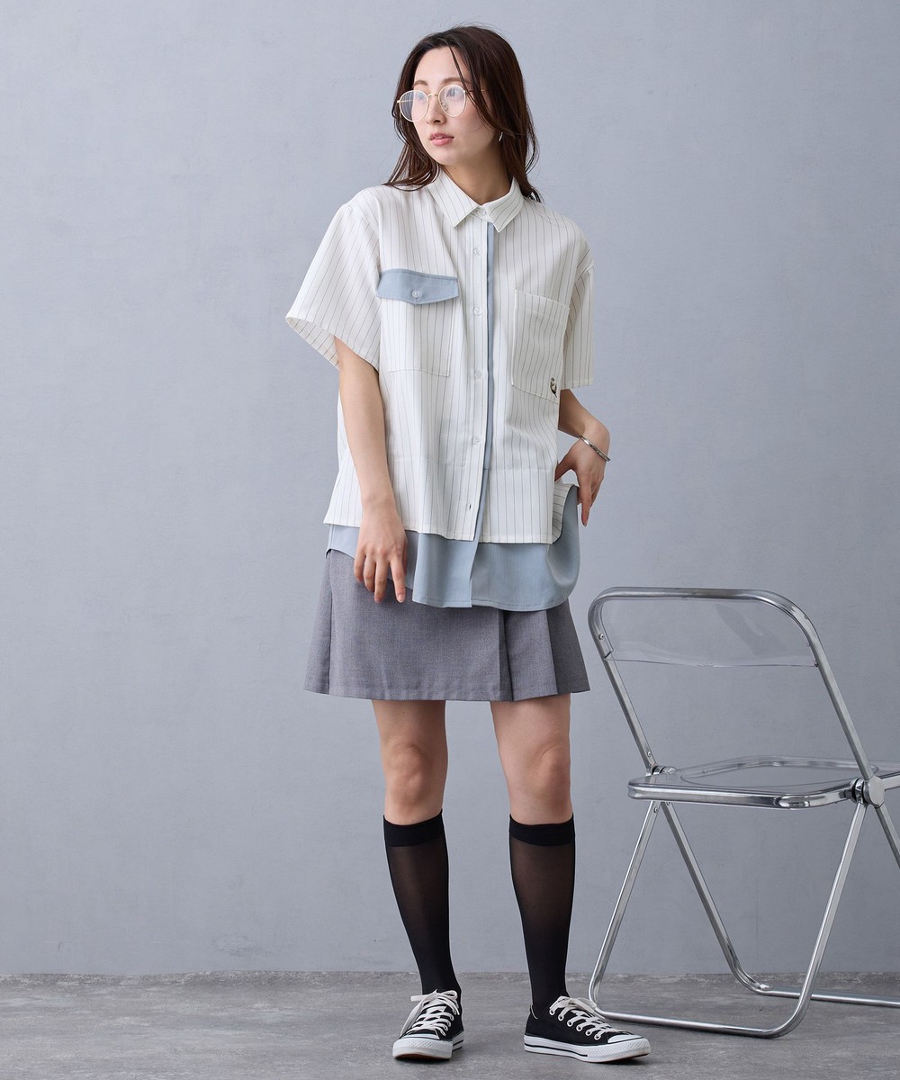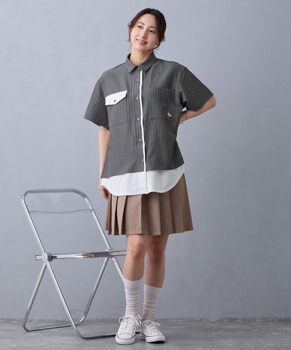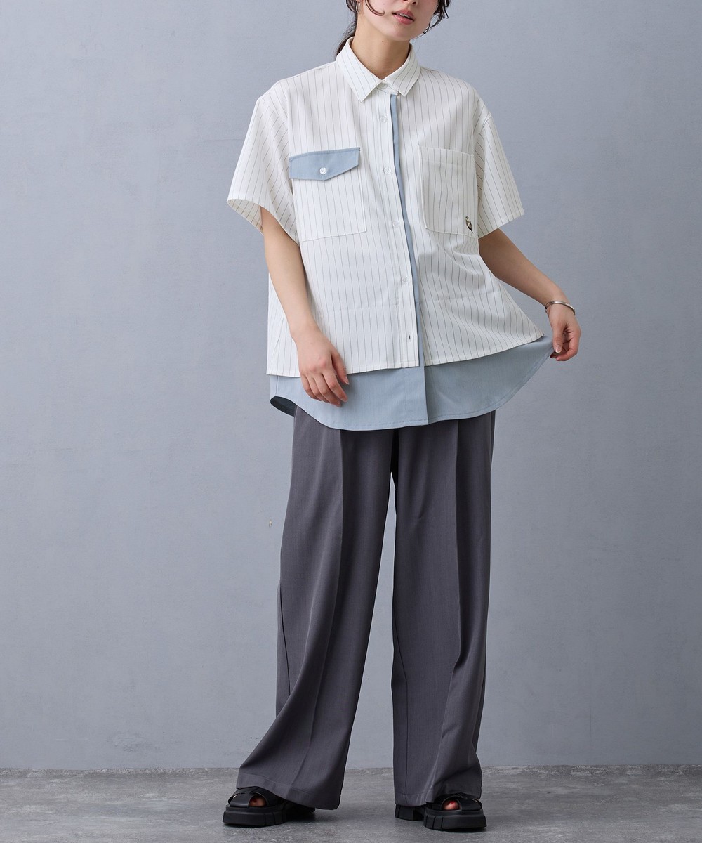 トレンド感のあるレイヤード風デザインのオーバーシャツ。