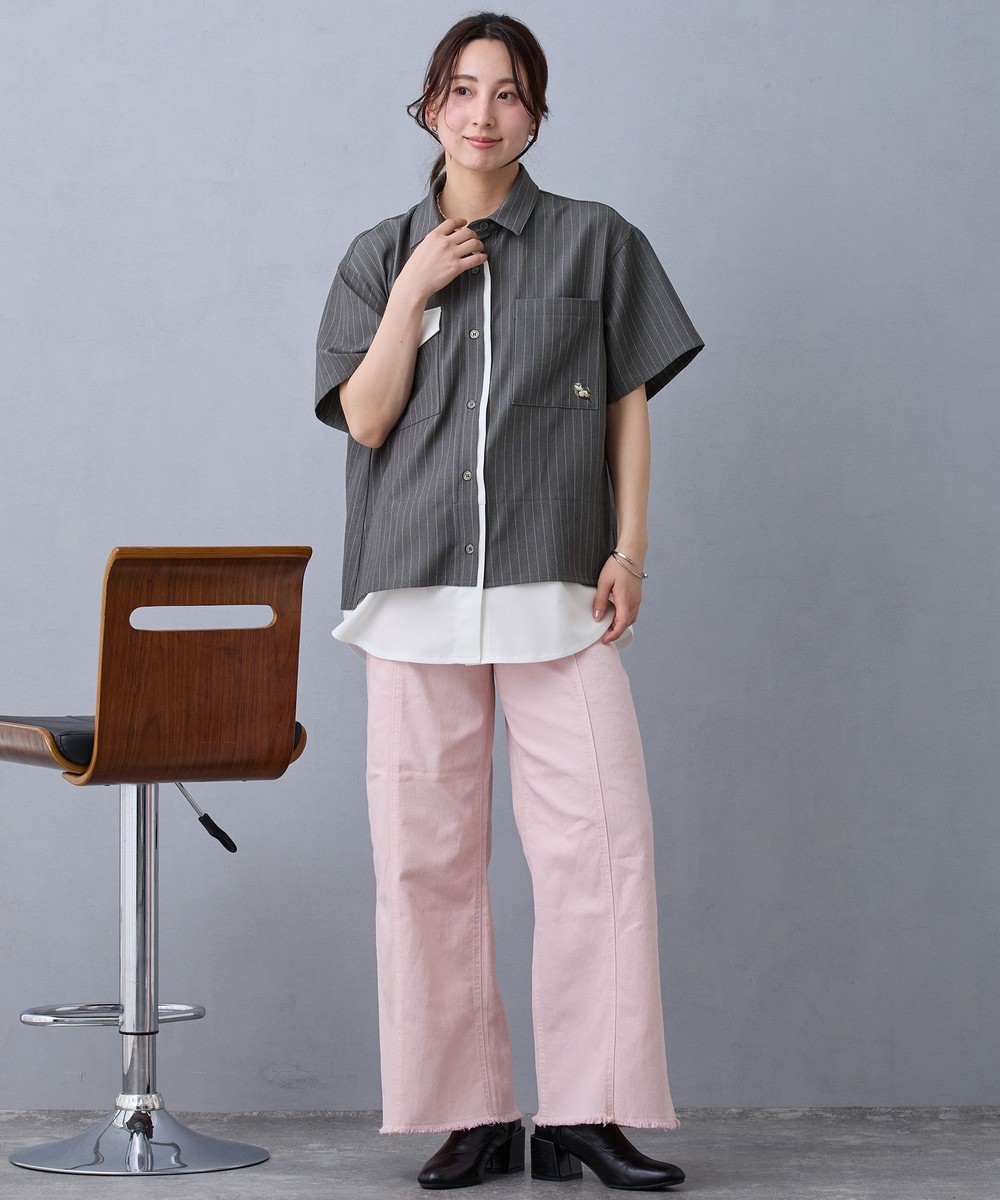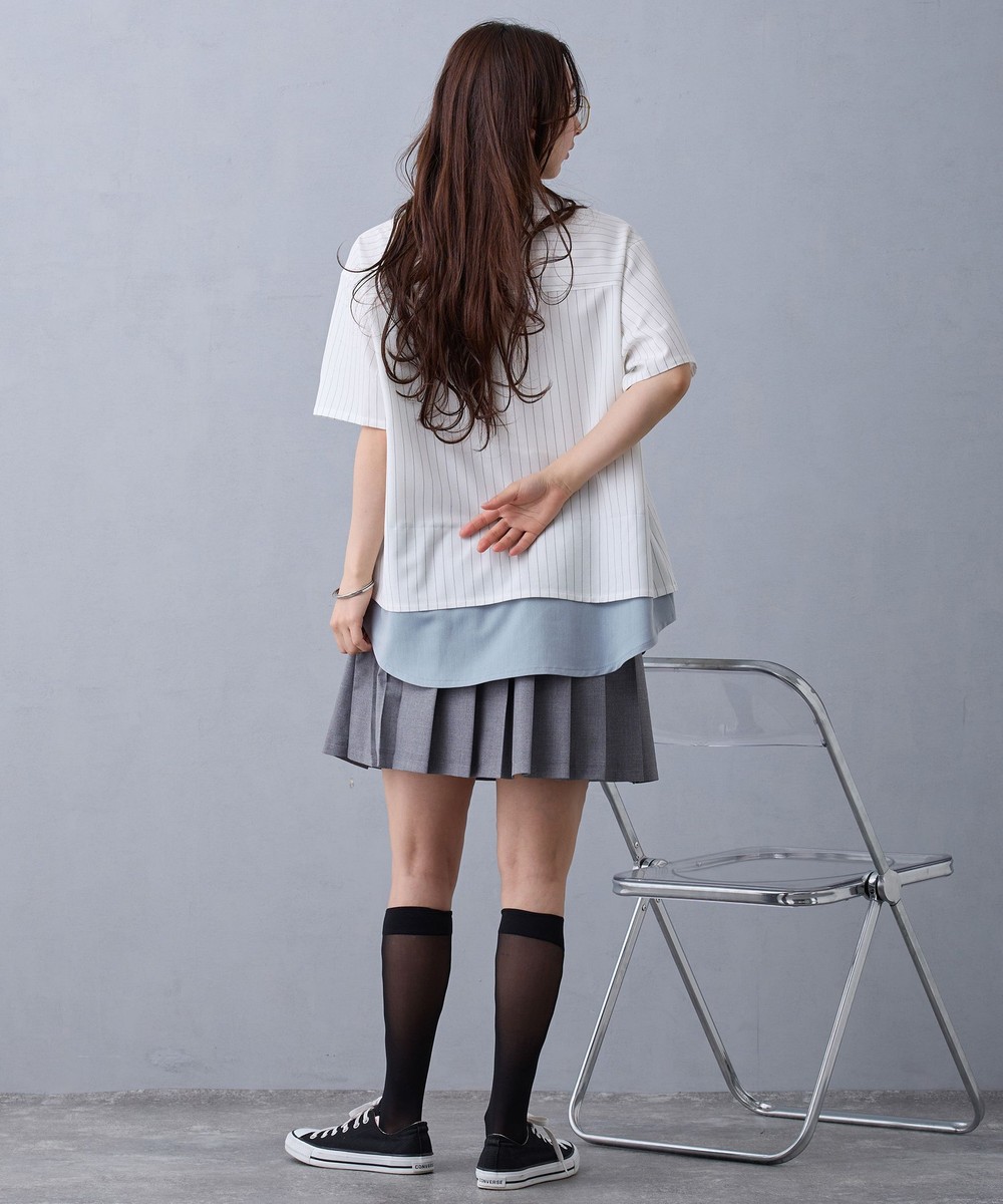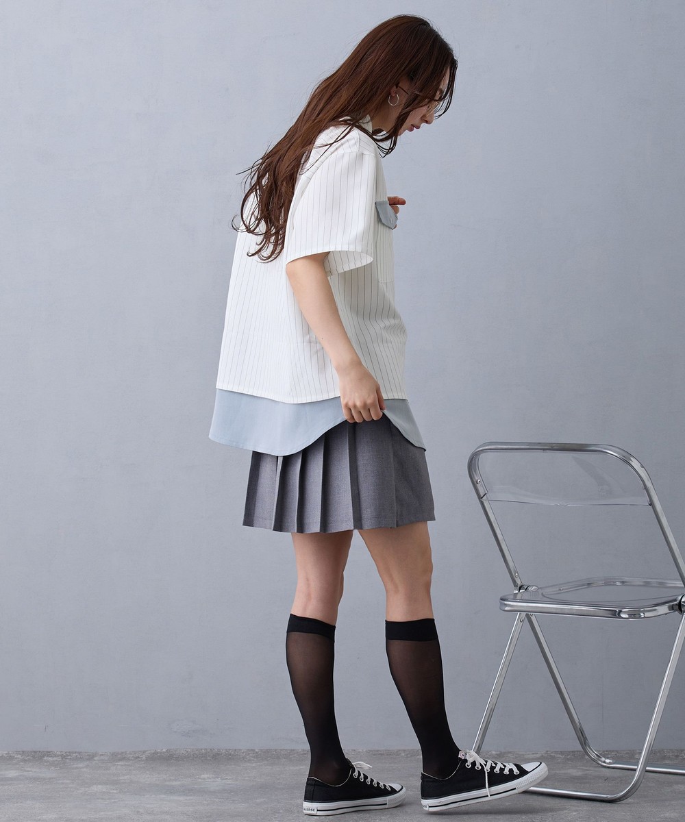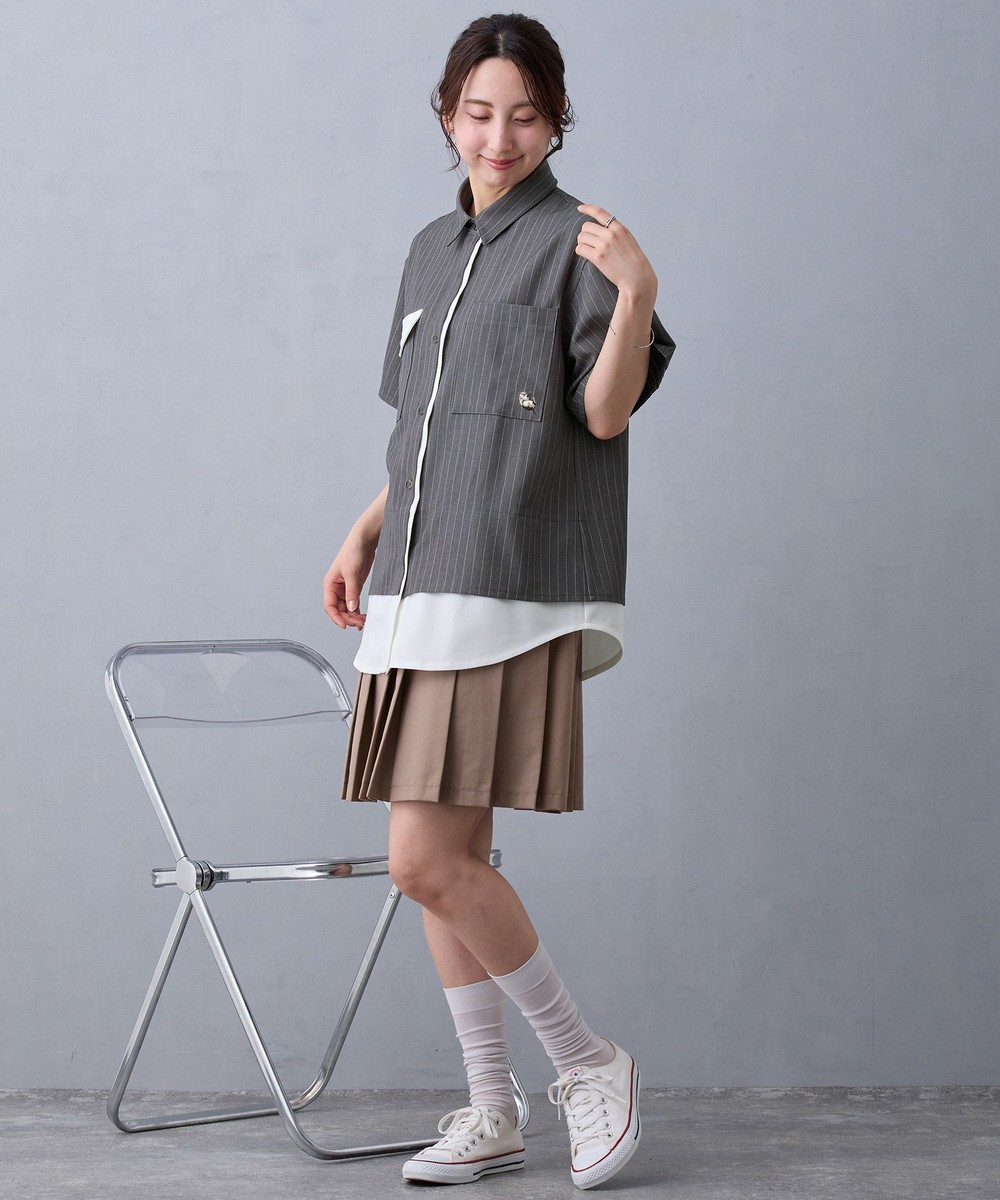 トレンド感のあるレイヤード風デザインのオーバーシャツ。