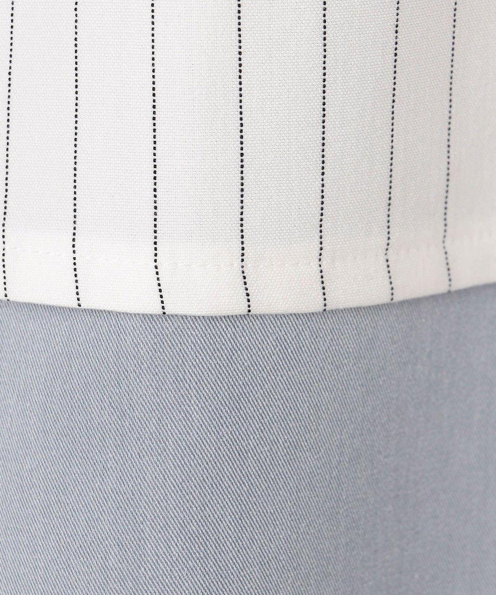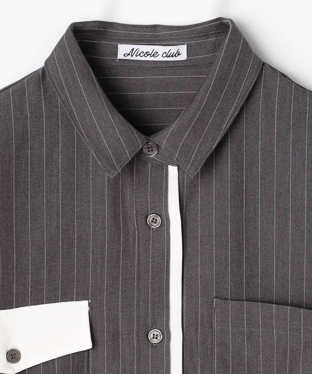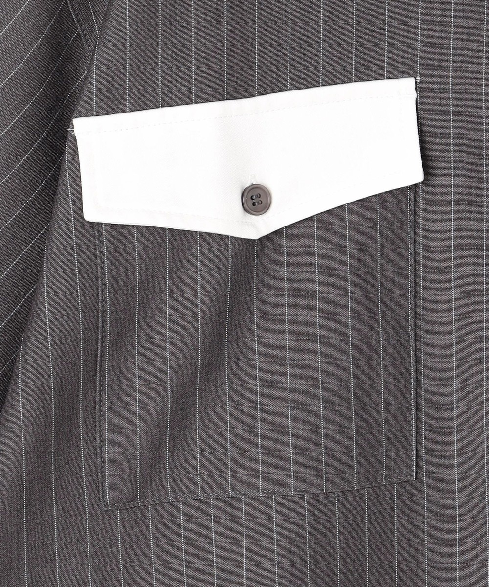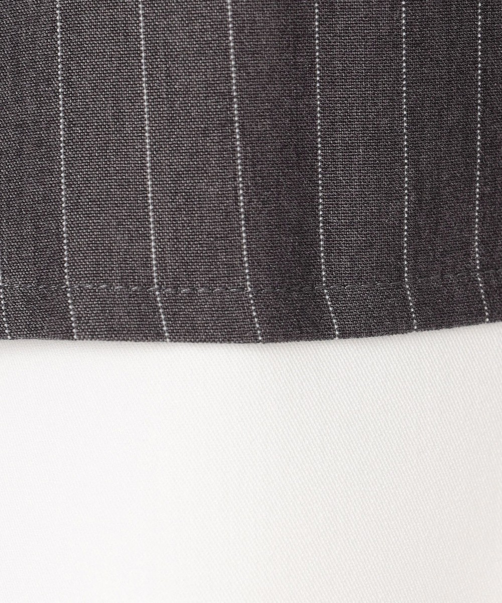 ストライプがシャープな印象を与えつつも、柔らかく落ち感のある素材とメンズライクなオーバーシルエットがカジュアルさをプラス。