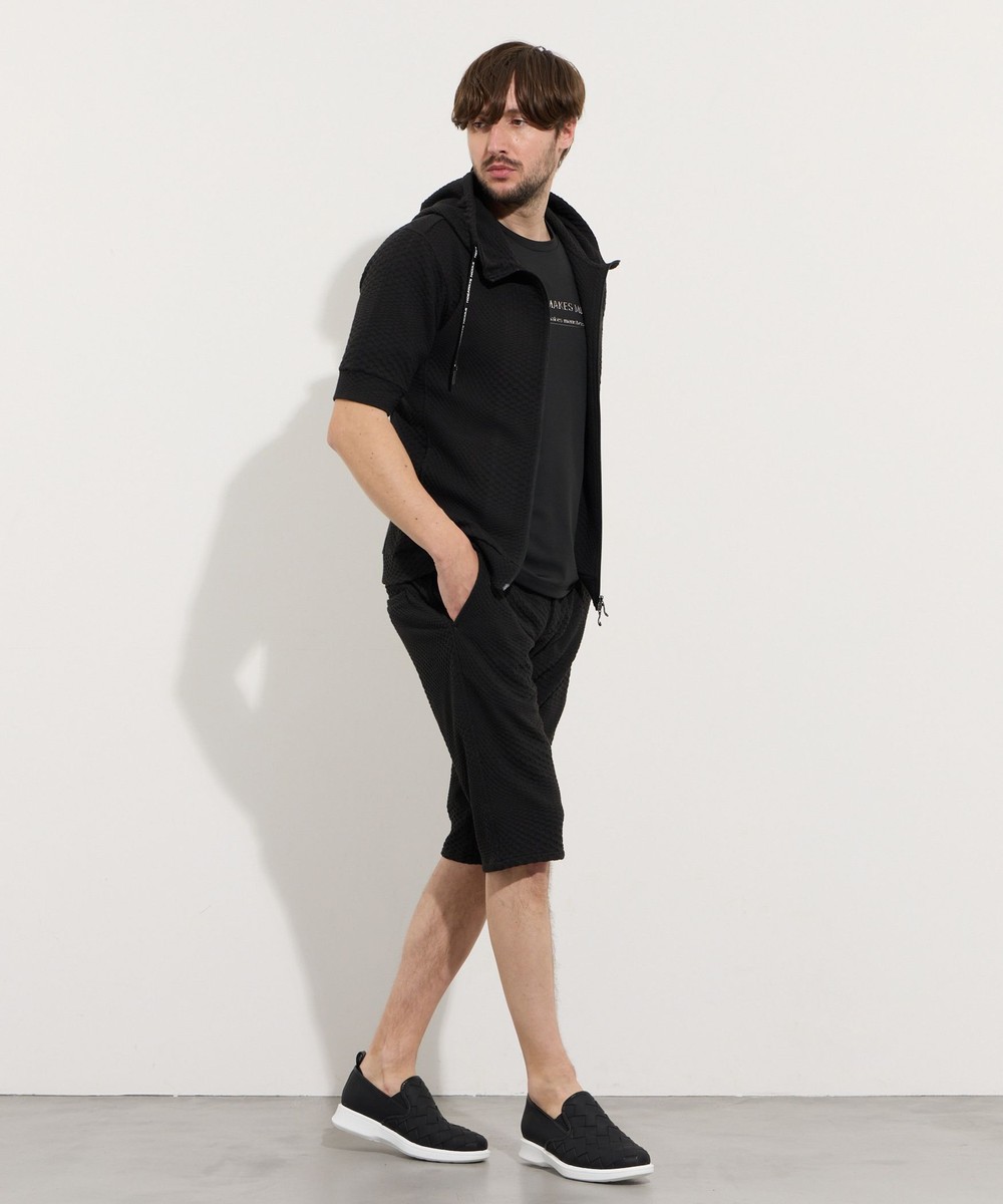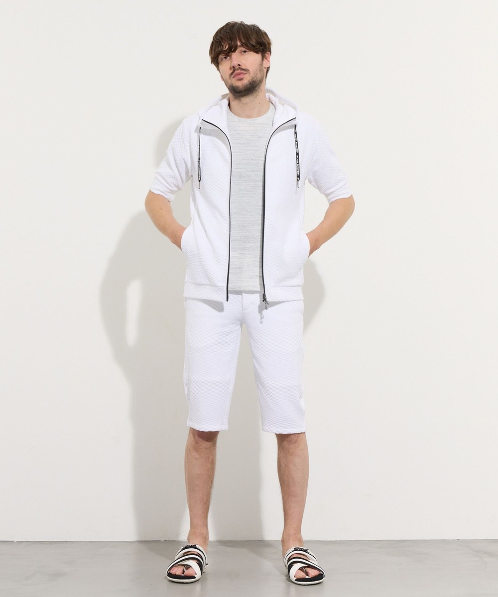 Tシャツやタンクトップの上から、夏でもサラッと羽織れるハイネック5分袖フルZIPパーカになります。