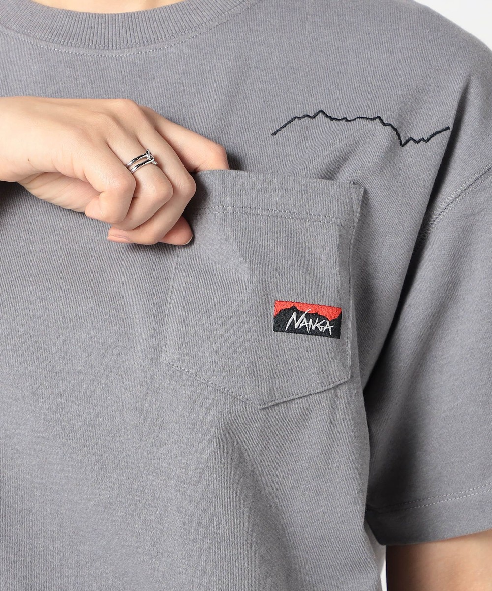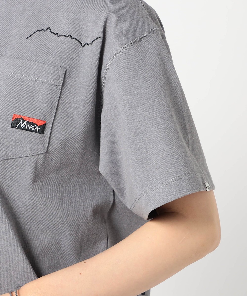 更に、胸にはポケットを配置し、そこにかかるようにNANGAロゴとナンガを象徴するナンガパルバットの山々の刺繍を施しています。