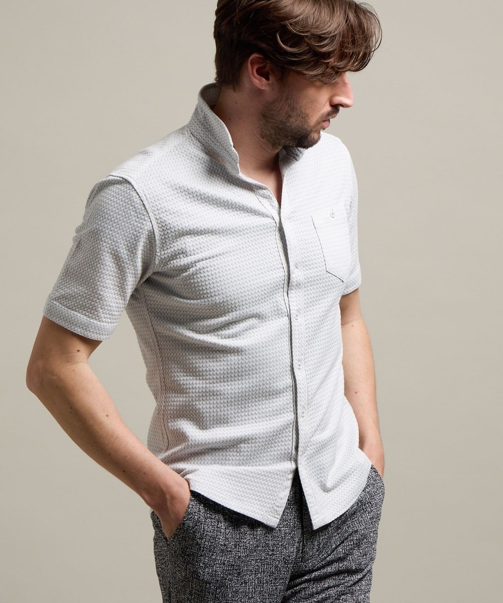 ストレッチ性が有る為、快適な素材。サッカ-効果、軽くてハリコシがある風合いが特徴です。