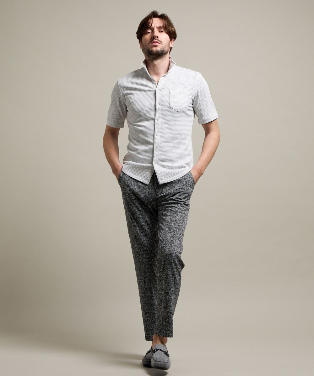 凹凸のある編地によりドライタッチな肌離れの良さと清涼感があります。