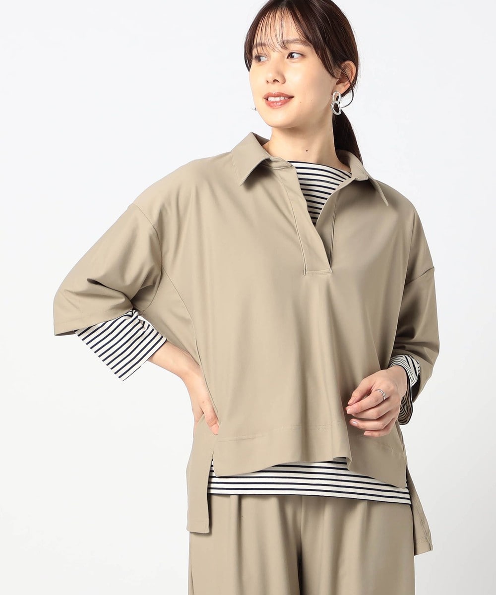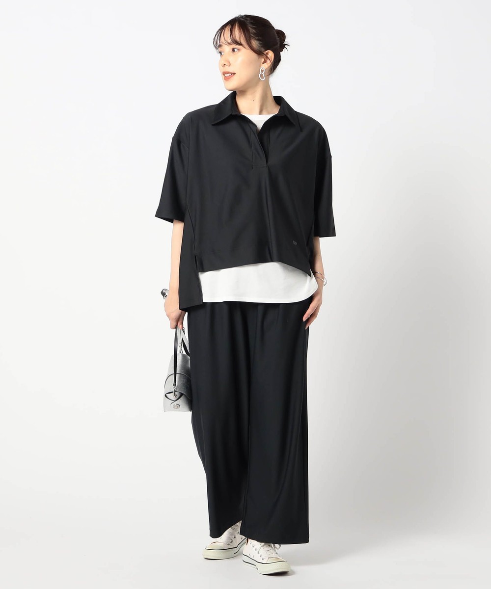 トップスが衿のあるスキッパーが型なので、程よい抜け感とリラックス感を両立出来る万能アイテムです。