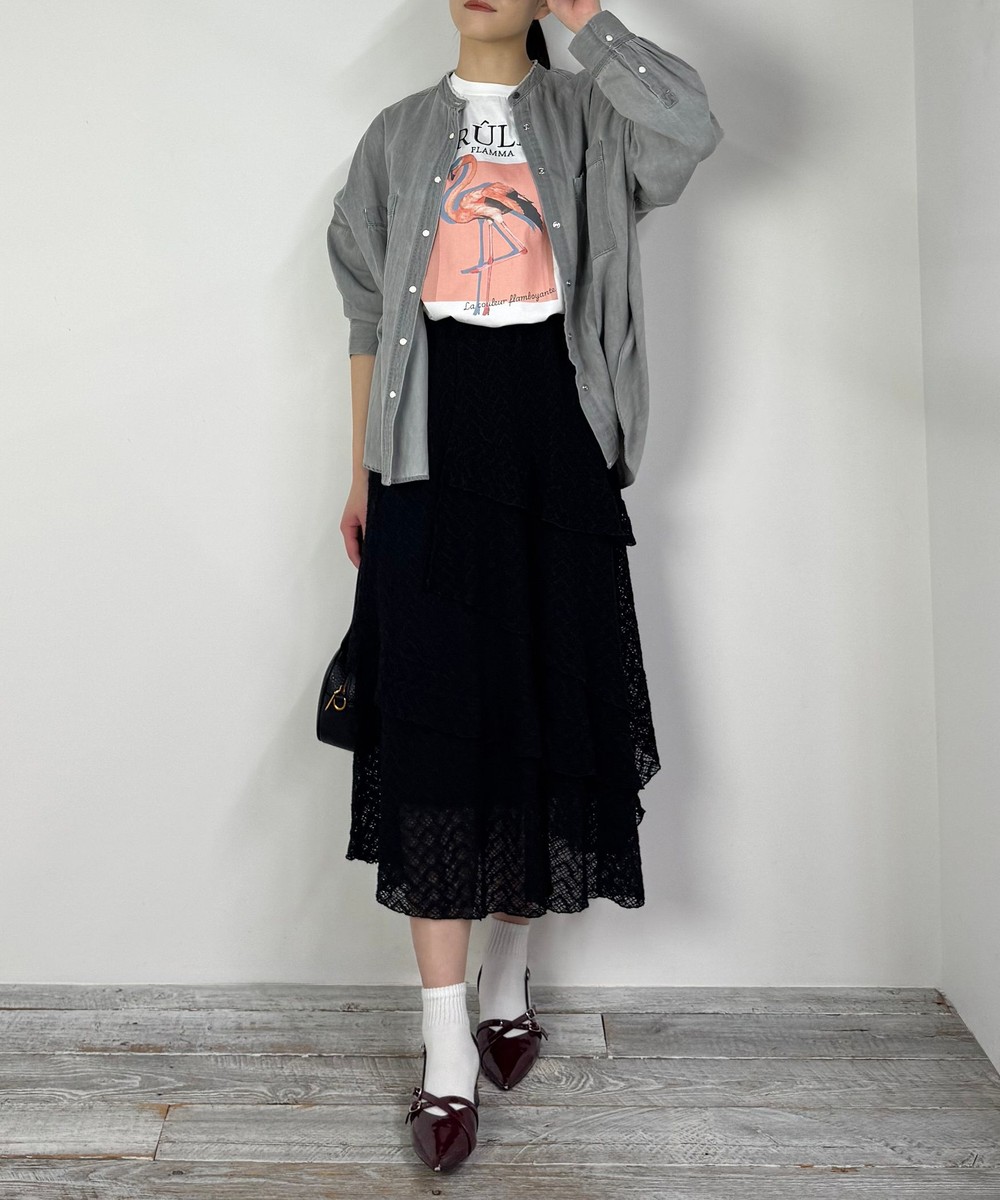 ヒップにかぶさる丈感とゆったりシルエットでこなれ感を演出。