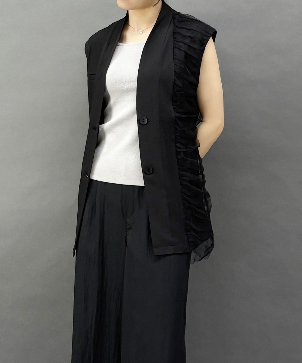 ワイドパンツやロングスカートなどと合わせるとモード感ある大人な雰囲気に。