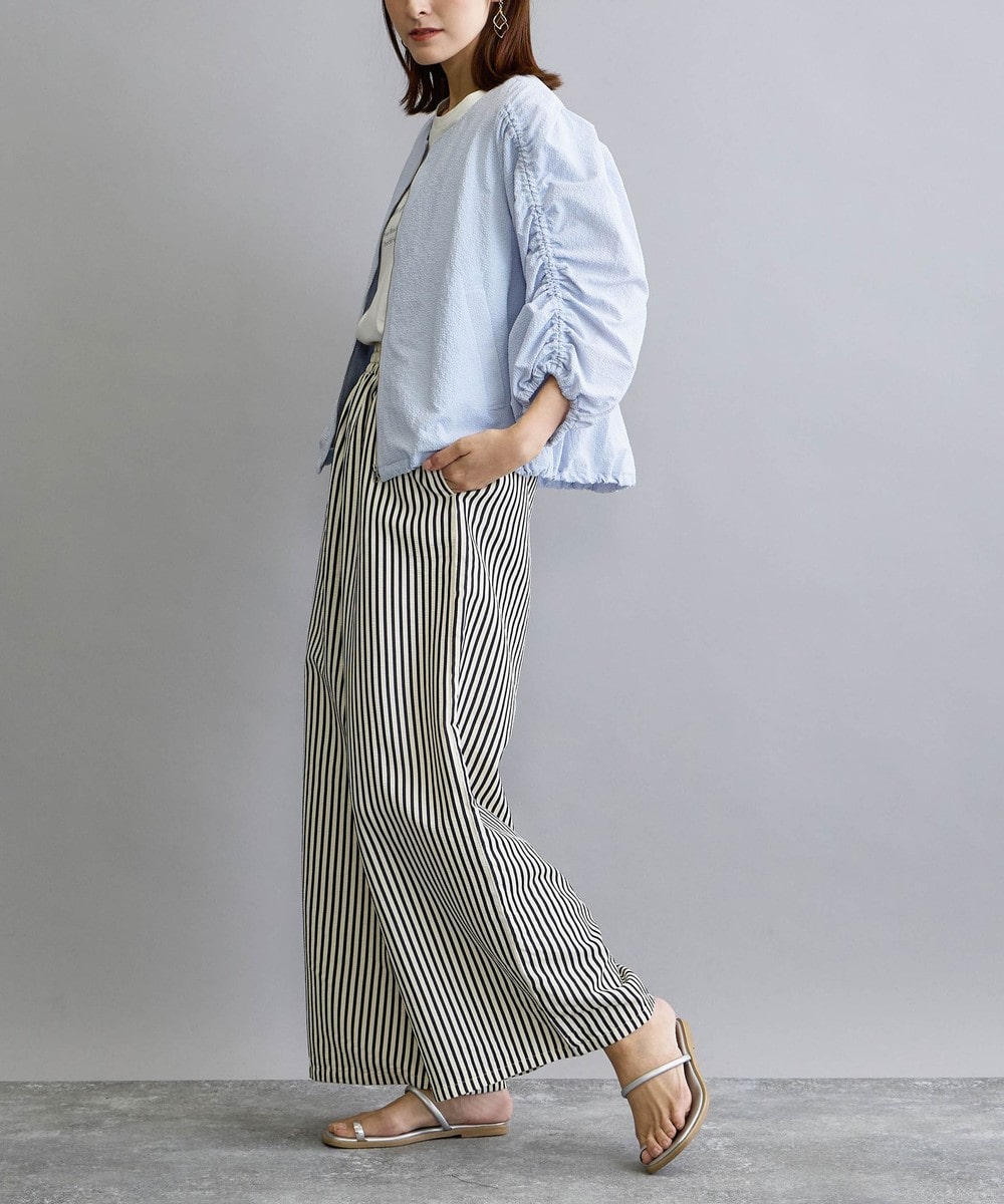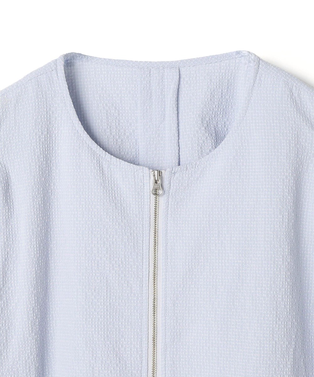 ノーカラーのため、ハイネネックなどの首元にボリュームのあるインナーとあわせても上手にレイヤード可能。デイリー使いはもちろん、行楽シーズンにも活躍するアイテムです。