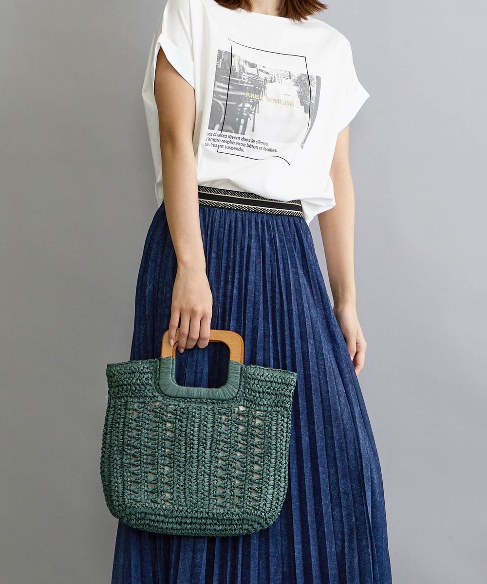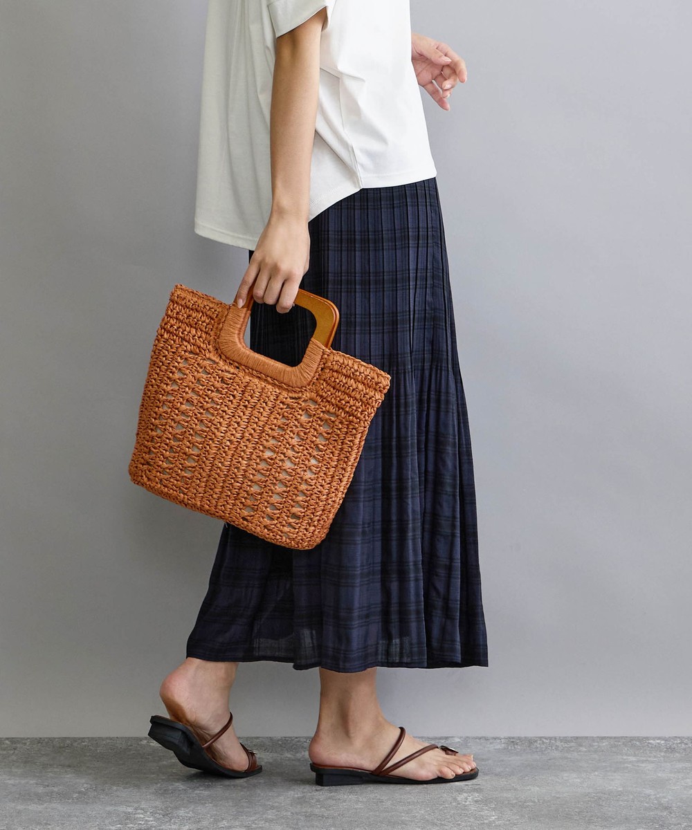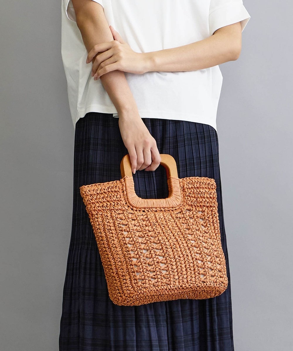 素材/表地:分類外繊維(紙)100% 持ち手部分:天然草木(木) 裏地:ポリエステル100%