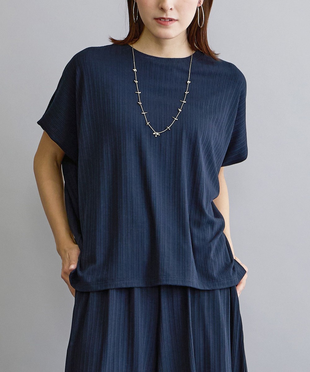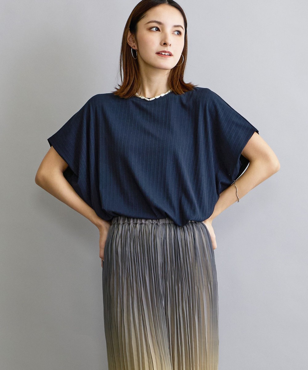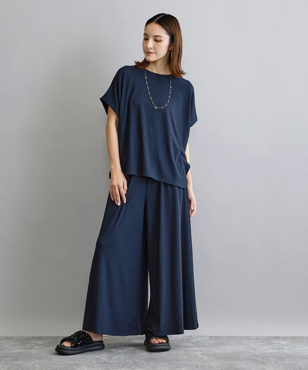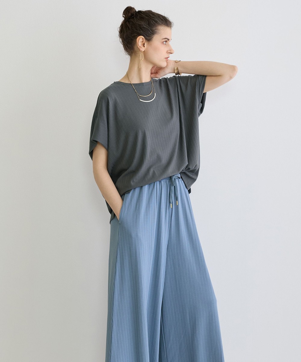 ランダムテレコリブの縦目がすっきりとしスタイルアップに、どんなボトムスとも相性が良く幅広いコーディネートを楽しめます。