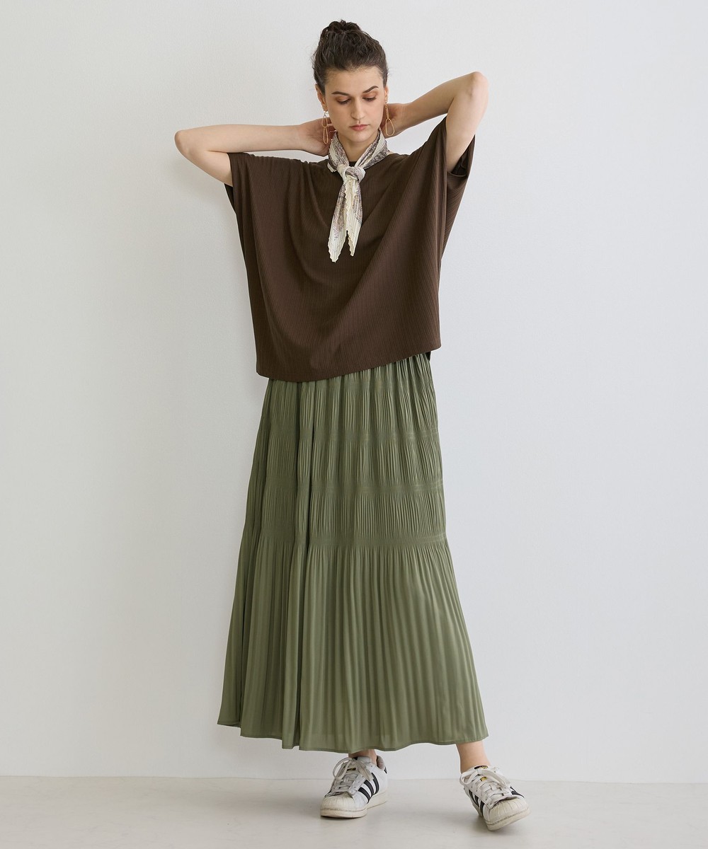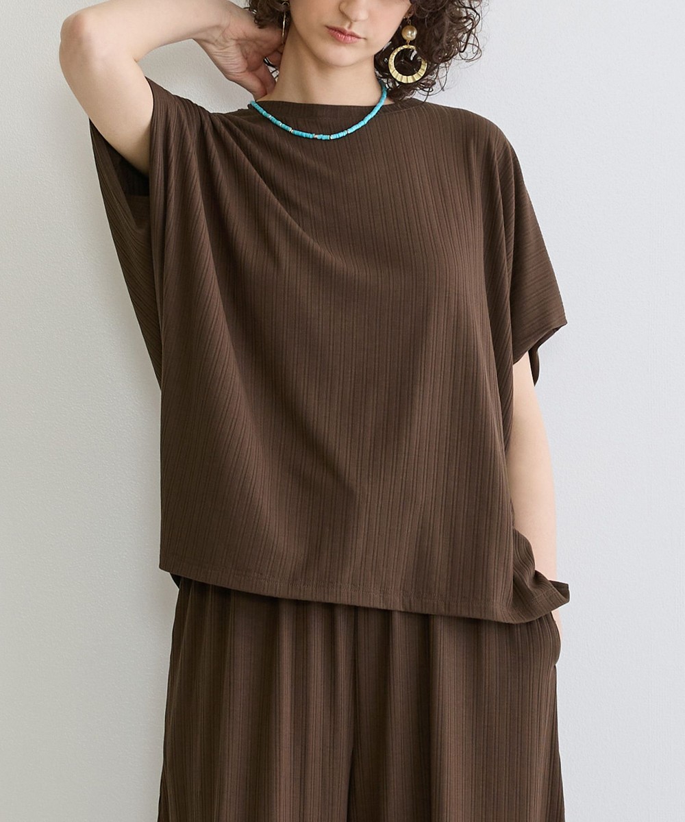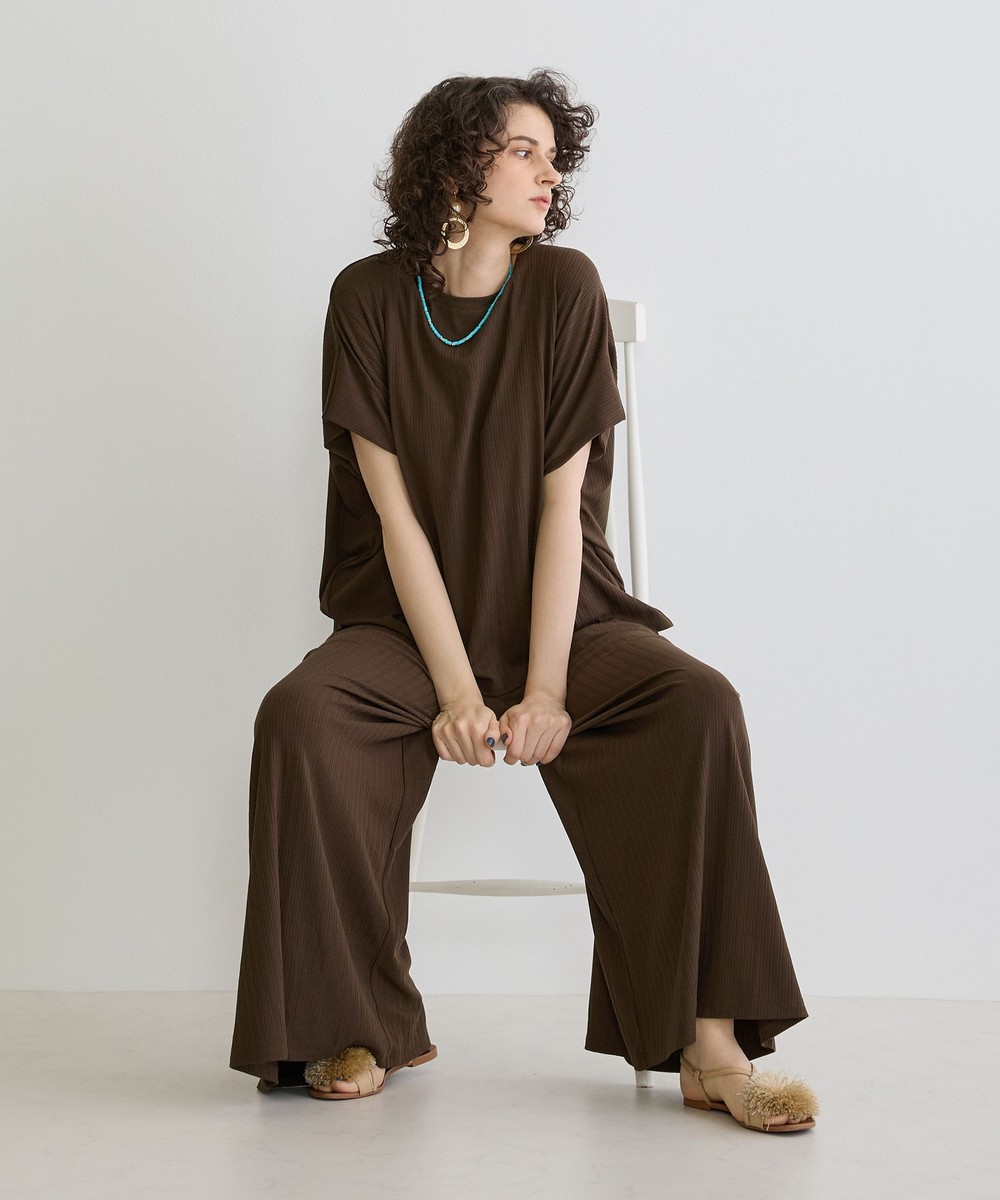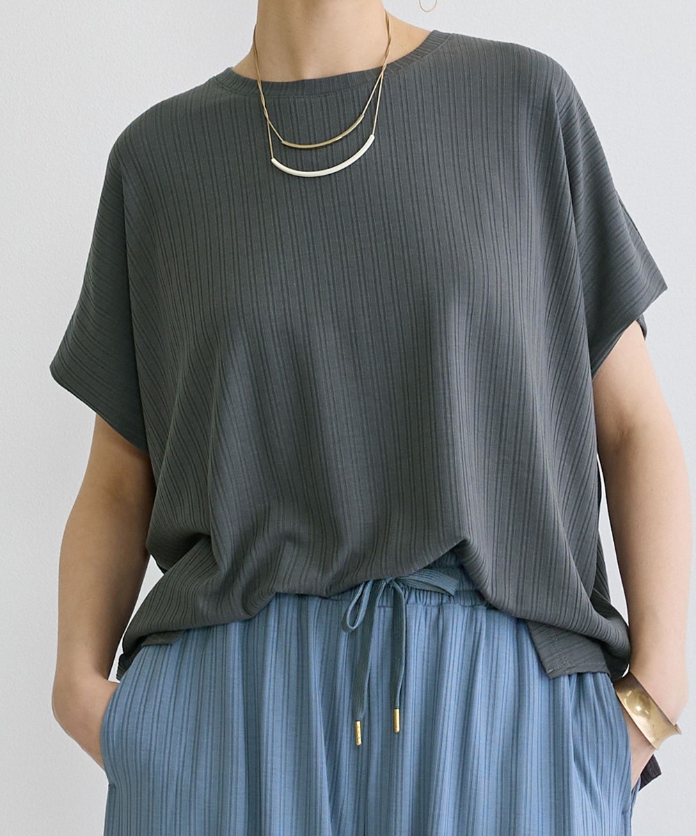 ランダムテレコリブの縦目がすっきりとしスタイルアップに、どんなボトムスとも相性が良く幅広いコーディネートを楽しめます。