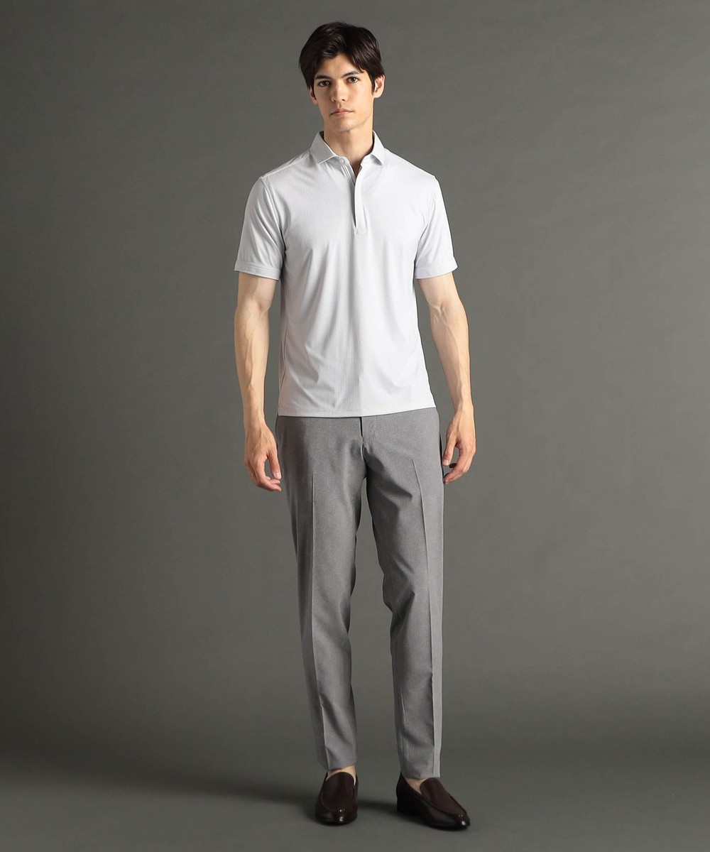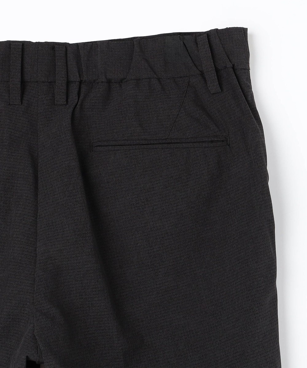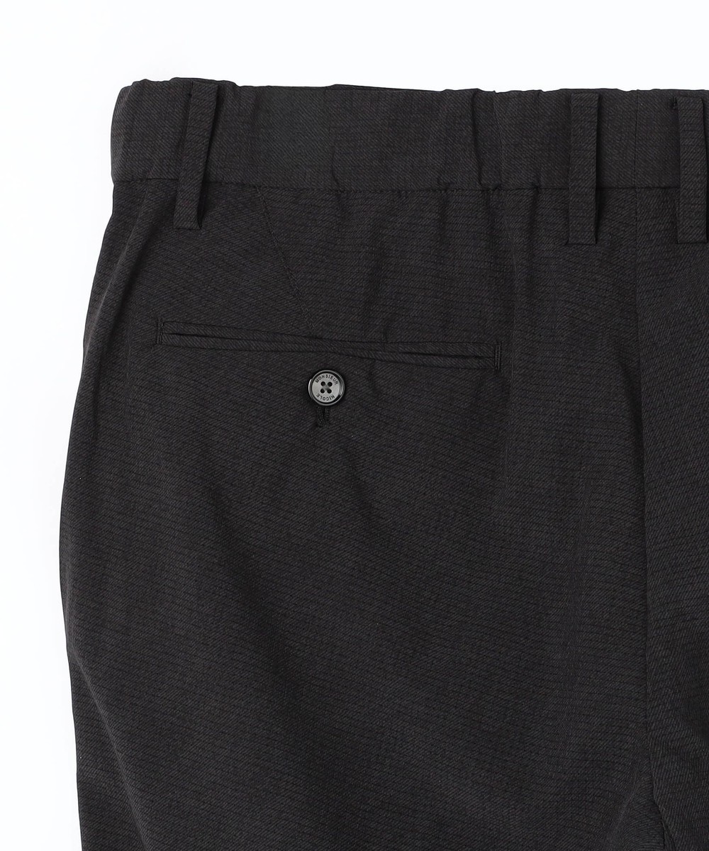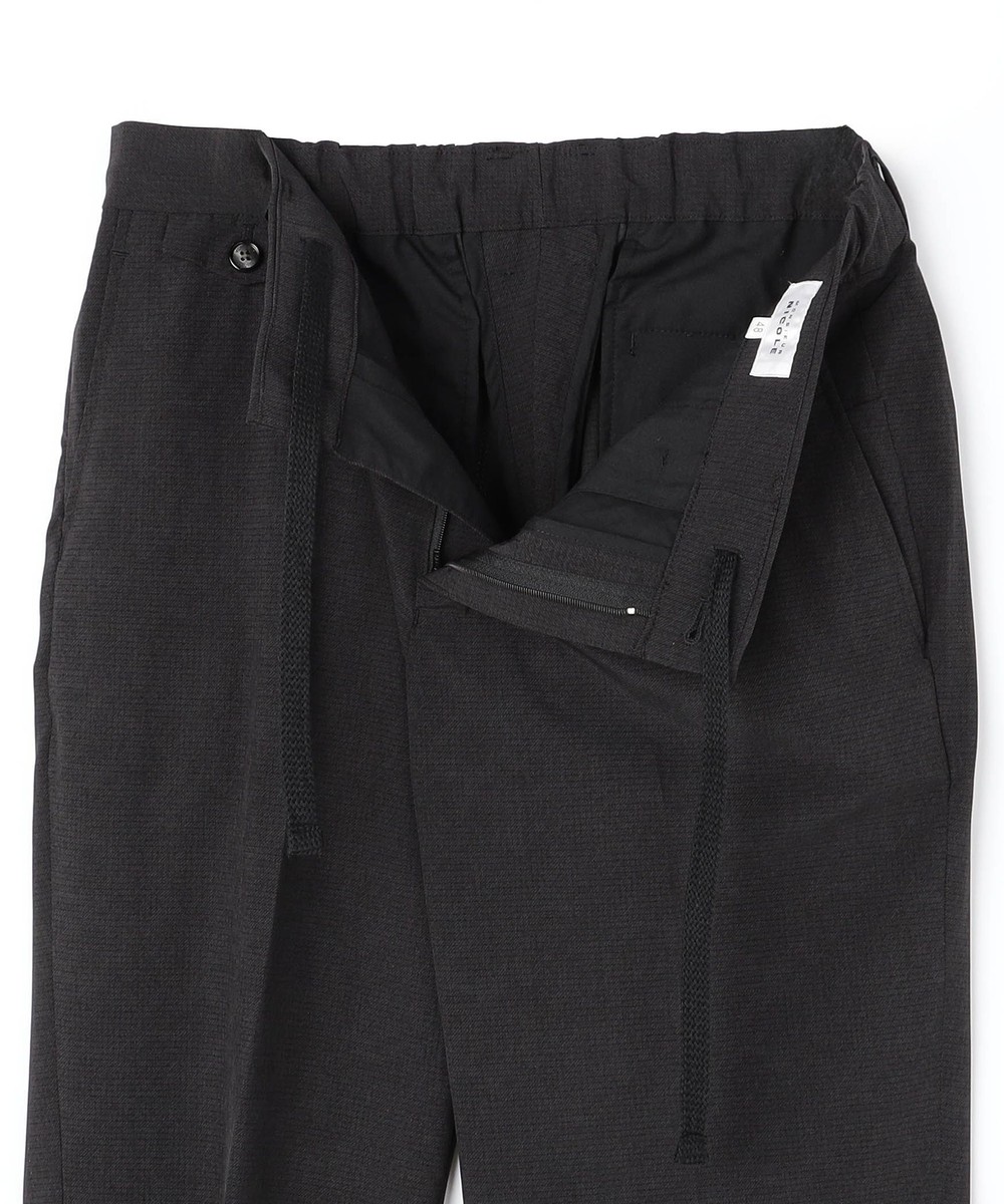 ムッシュニコル定番スラックスをベースに、ウエストベルトの後ろ見頃側のみギャザー仕様にアップデート。程よく身体にフィットするアクティブパンツ。