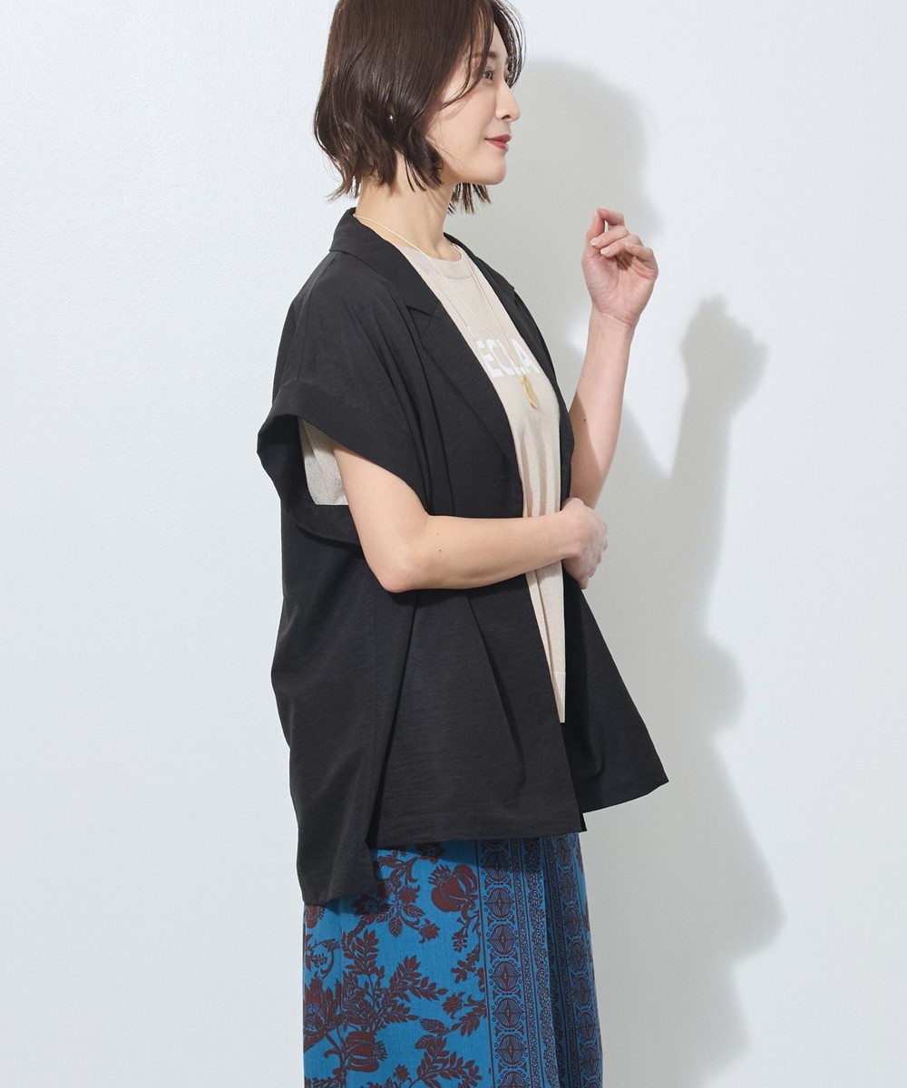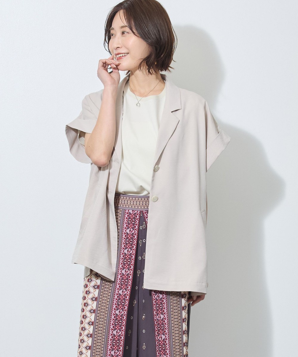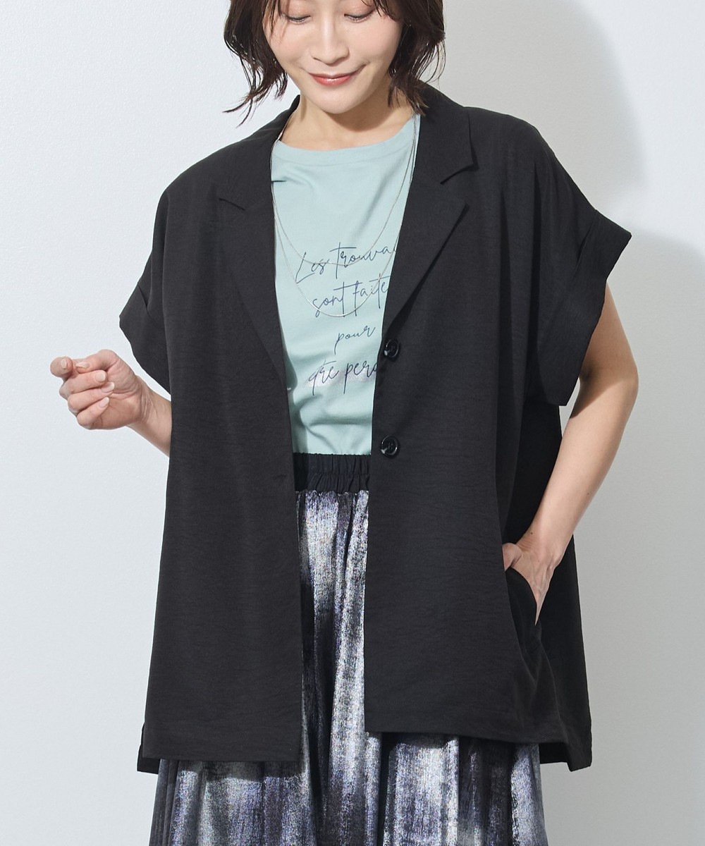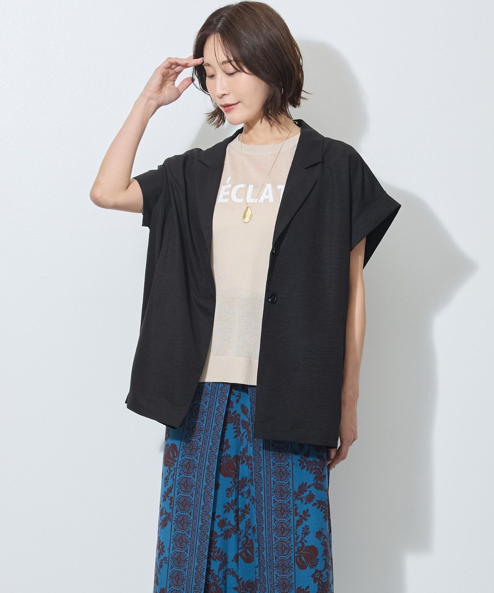 テーラードカラーでも、落ち感のある柔らかい素材が女性らしさも。
