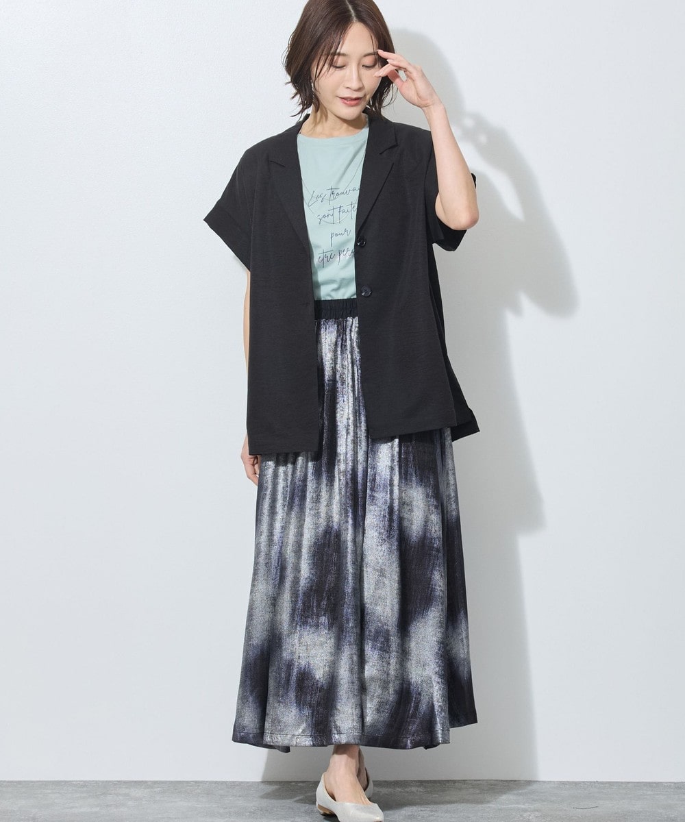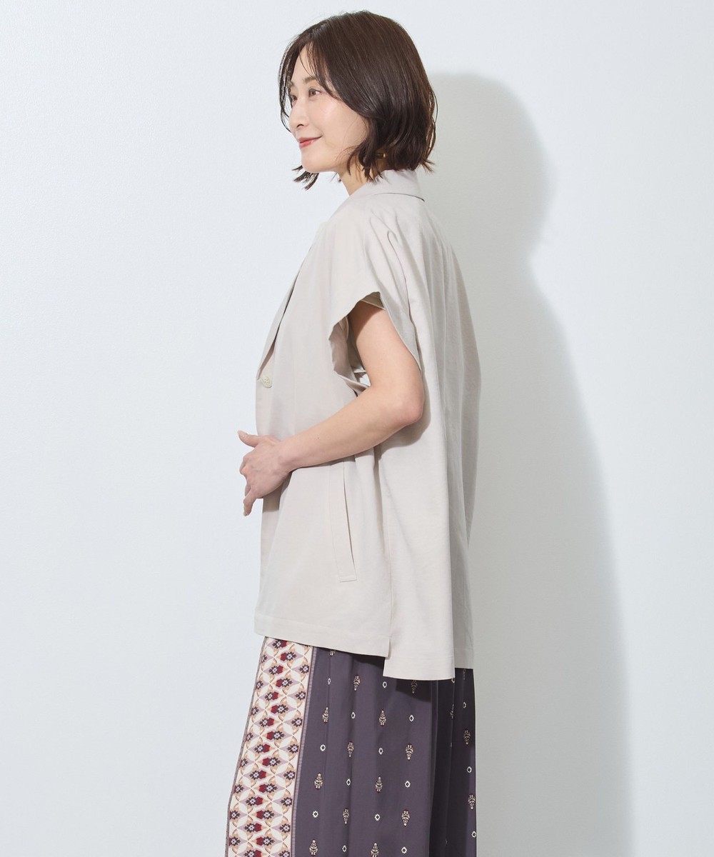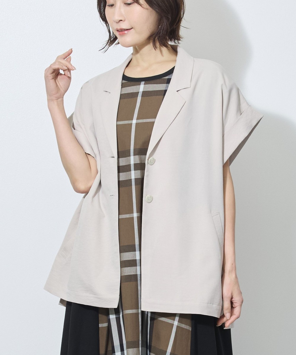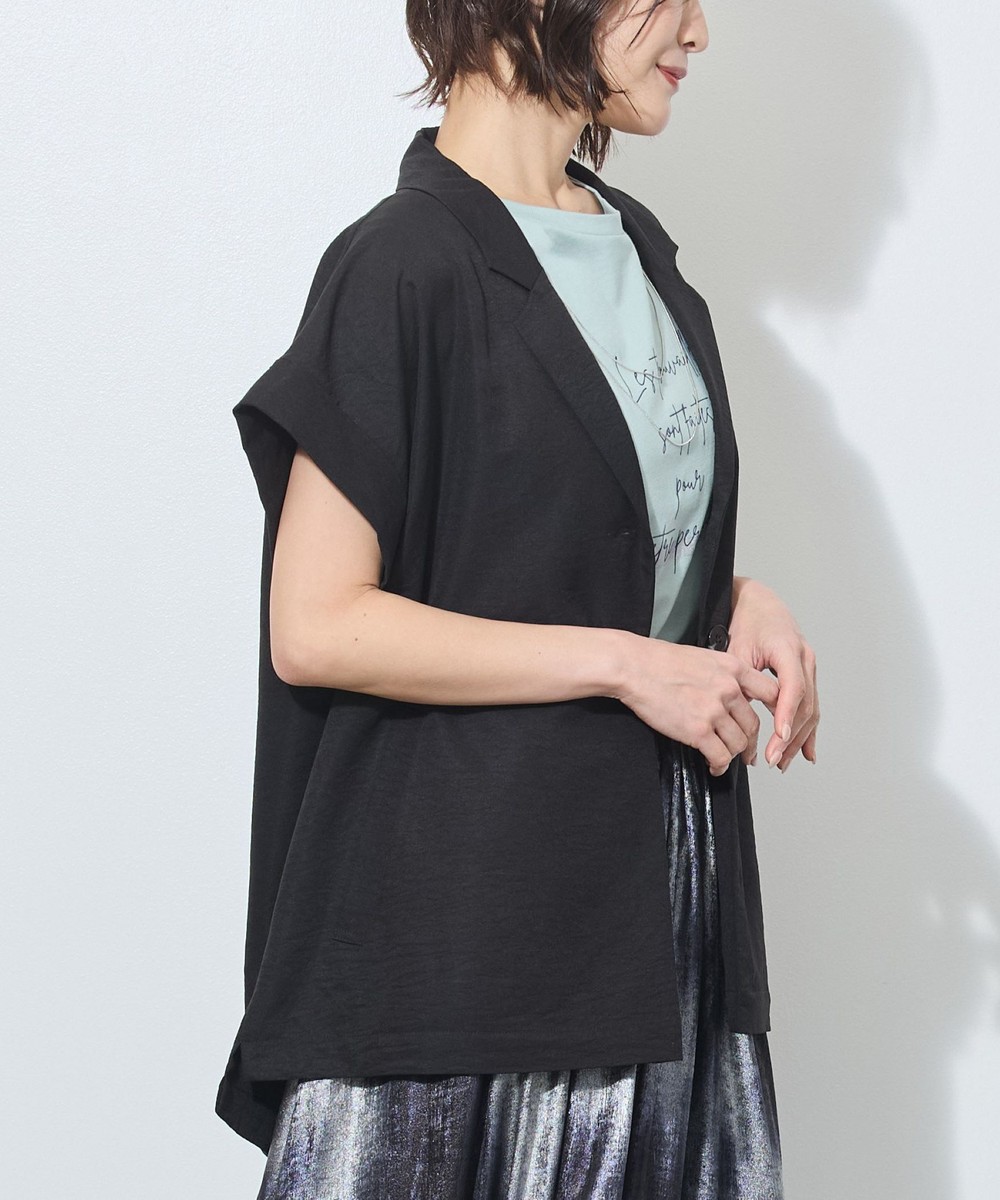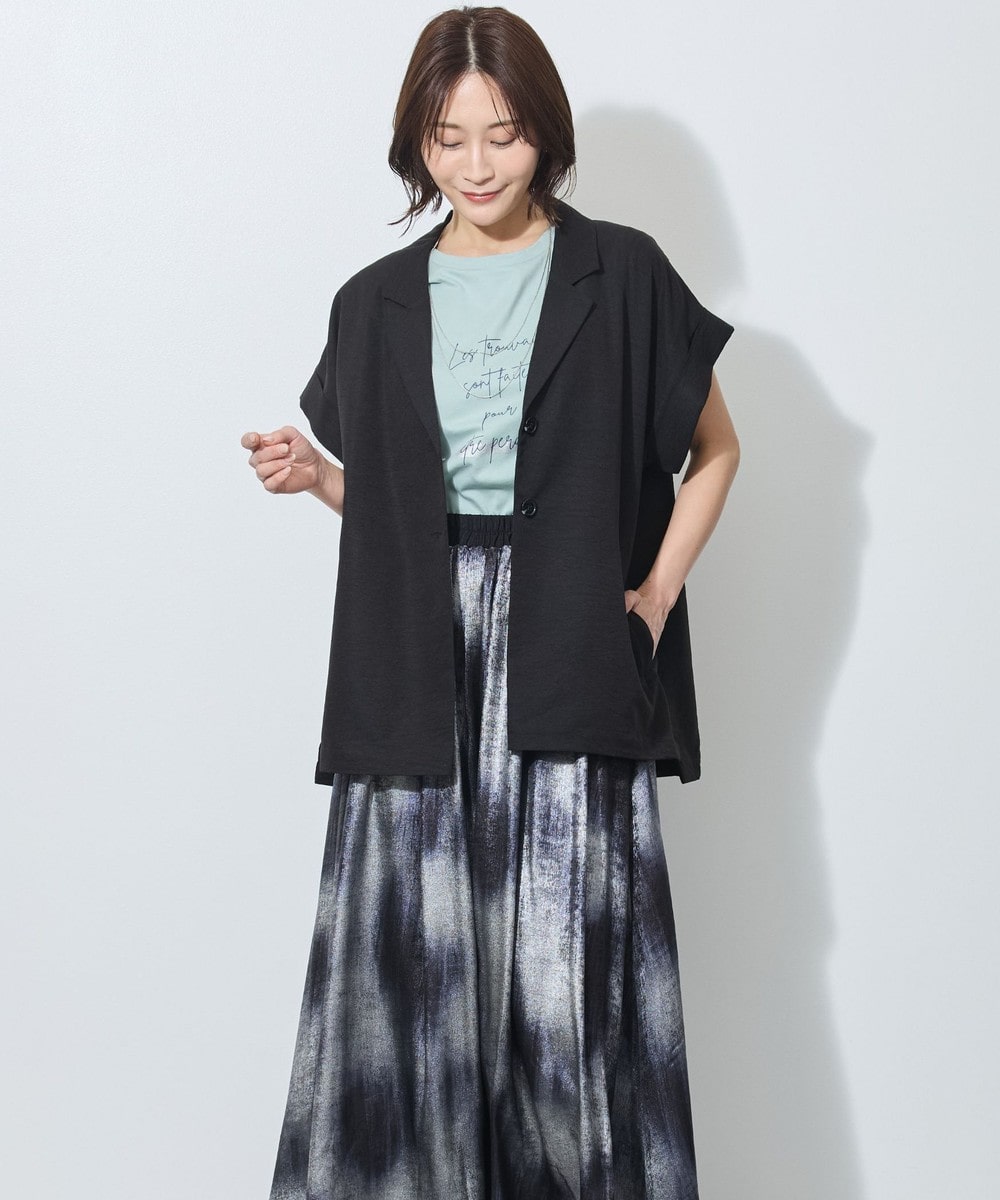 テーラードカラーでも、落ち感のある柔らかい素材が女性らしさも。