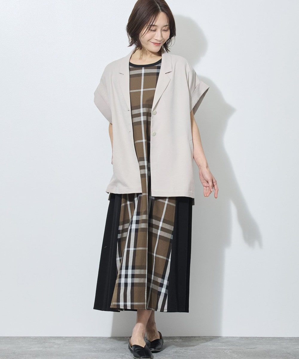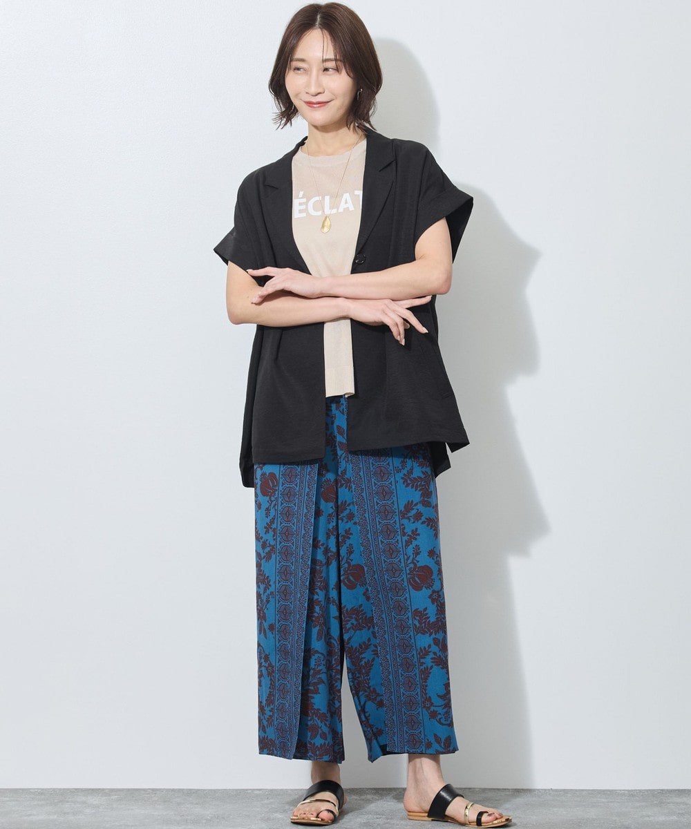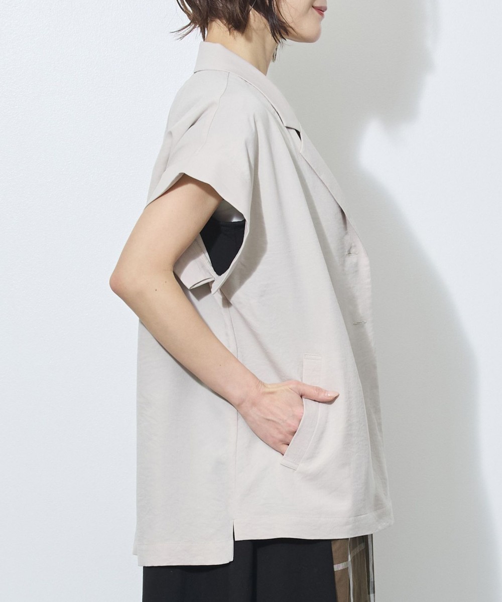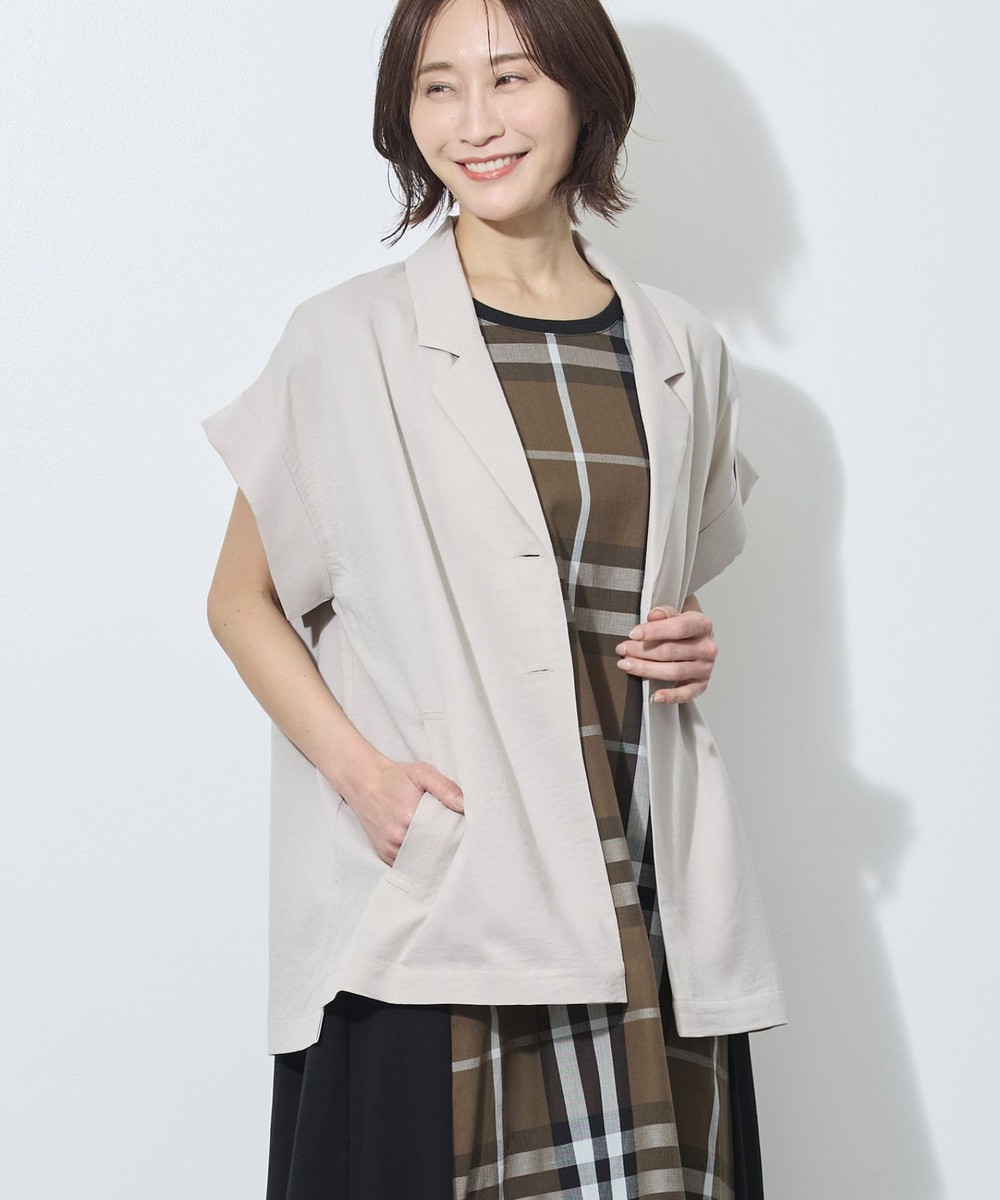 テーラードカラーでも、落ち感のある柔らかい素材が女性らしさも。