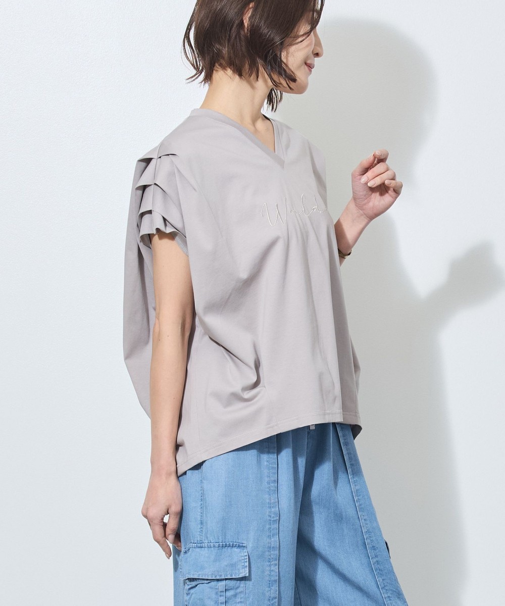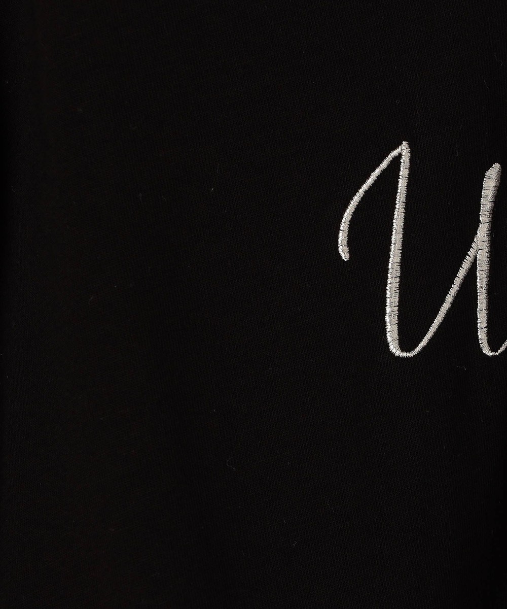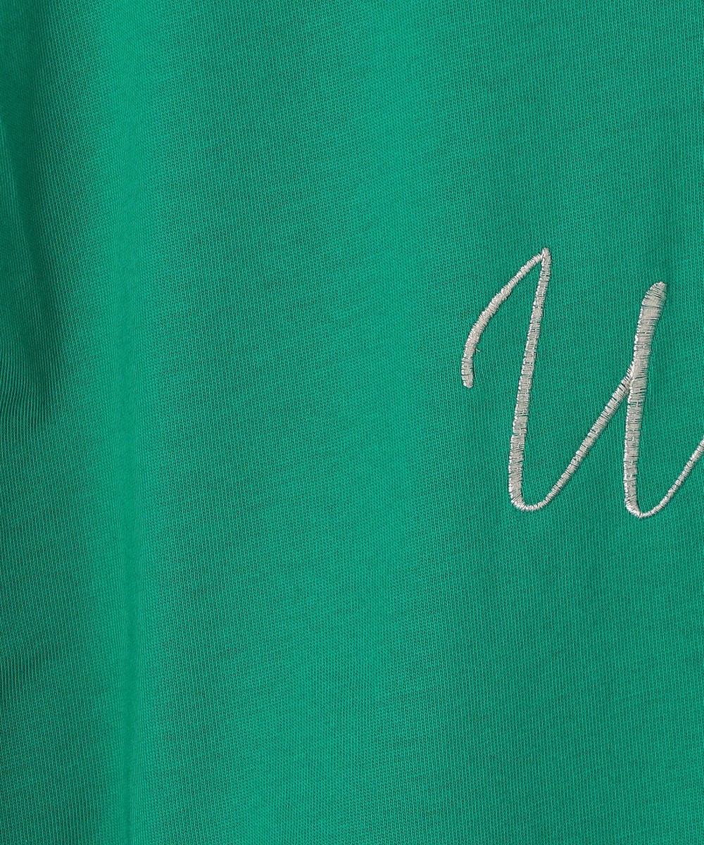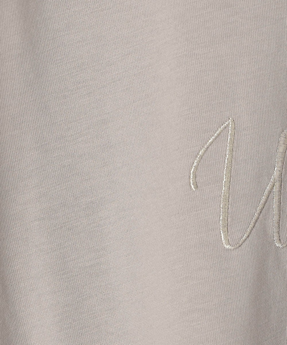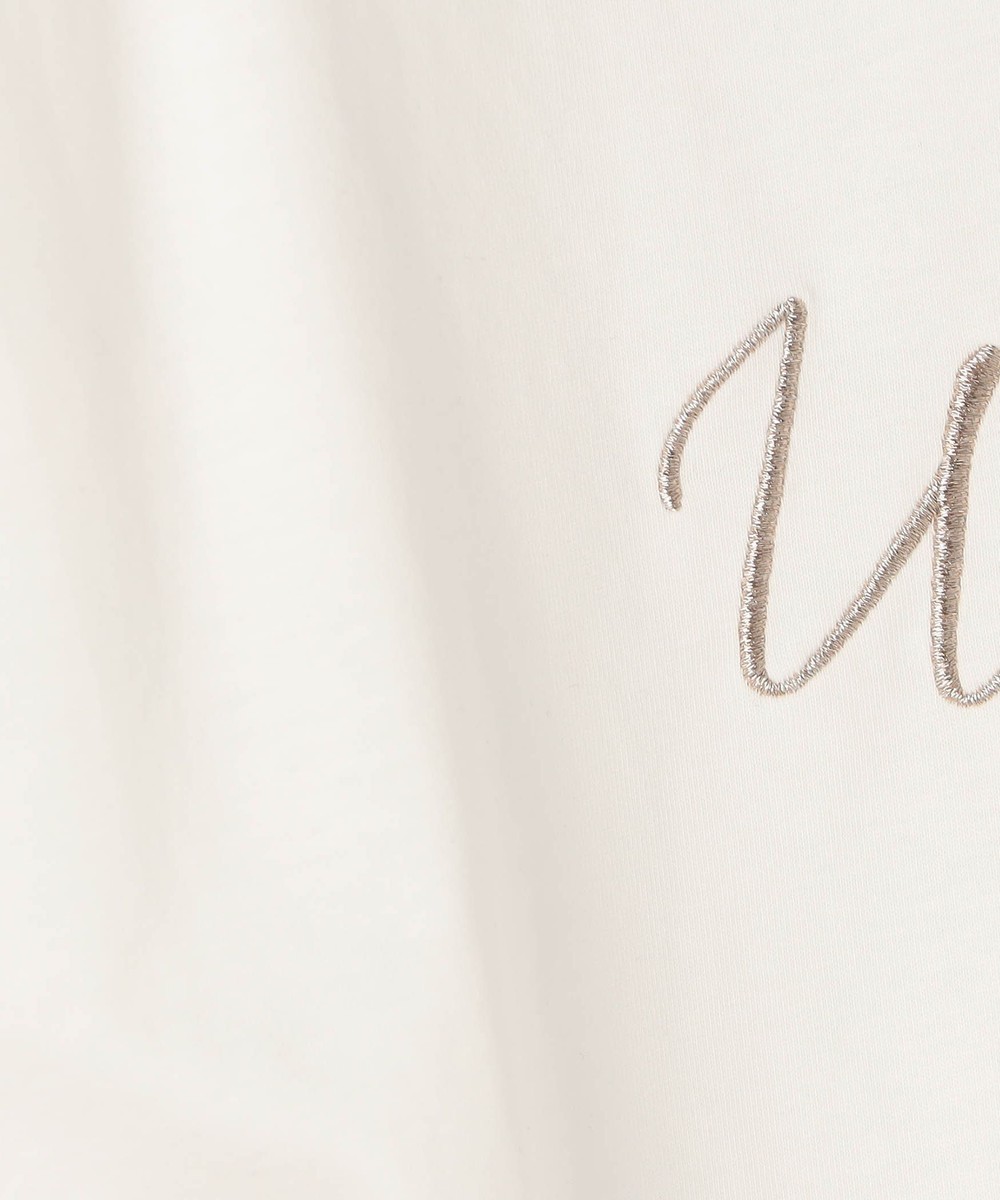 胸のロゴ刺繍は淡いゴールドの筆記体で、女性らしさを感じさせ、カジュアルになりすぎないのが◎。