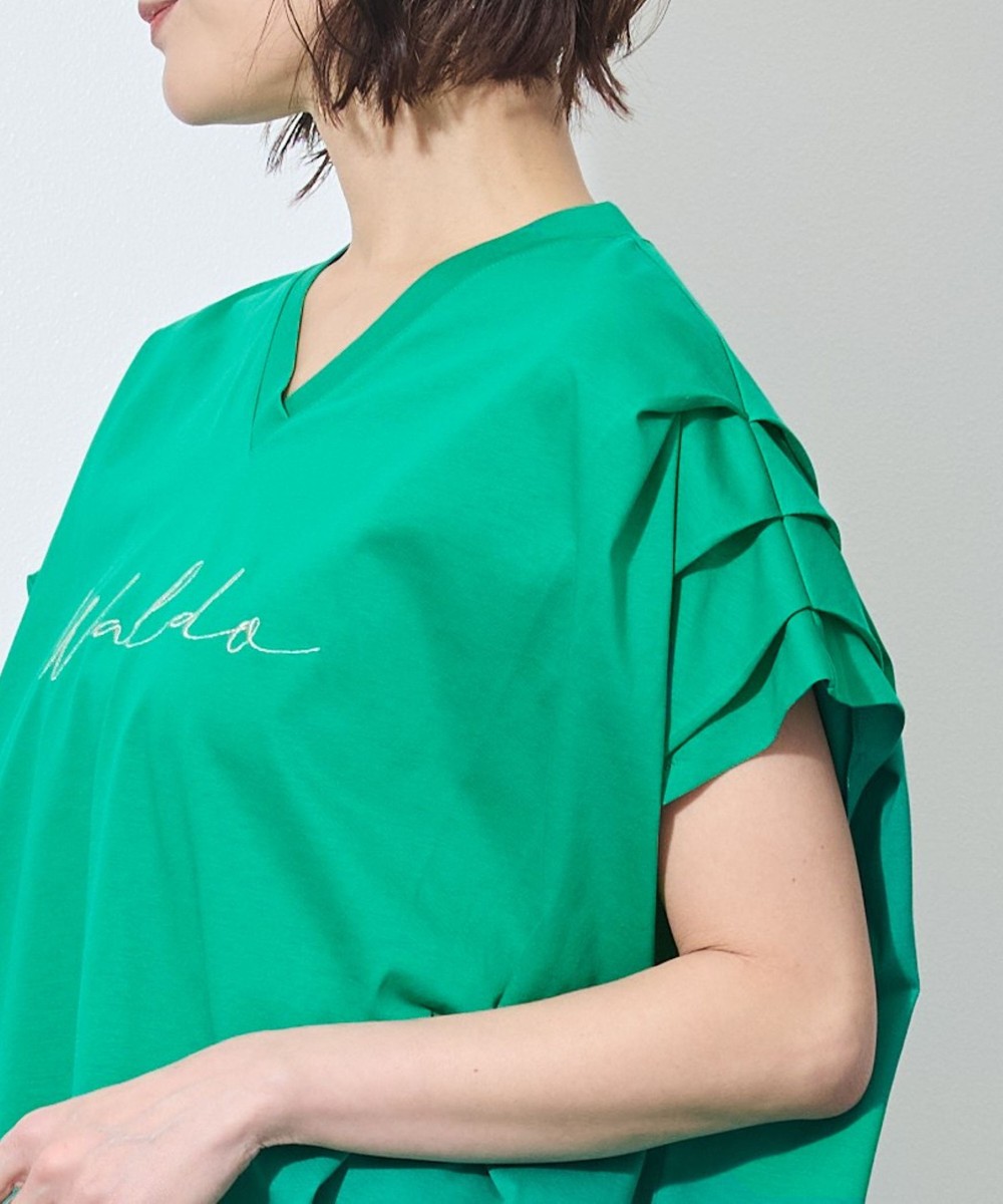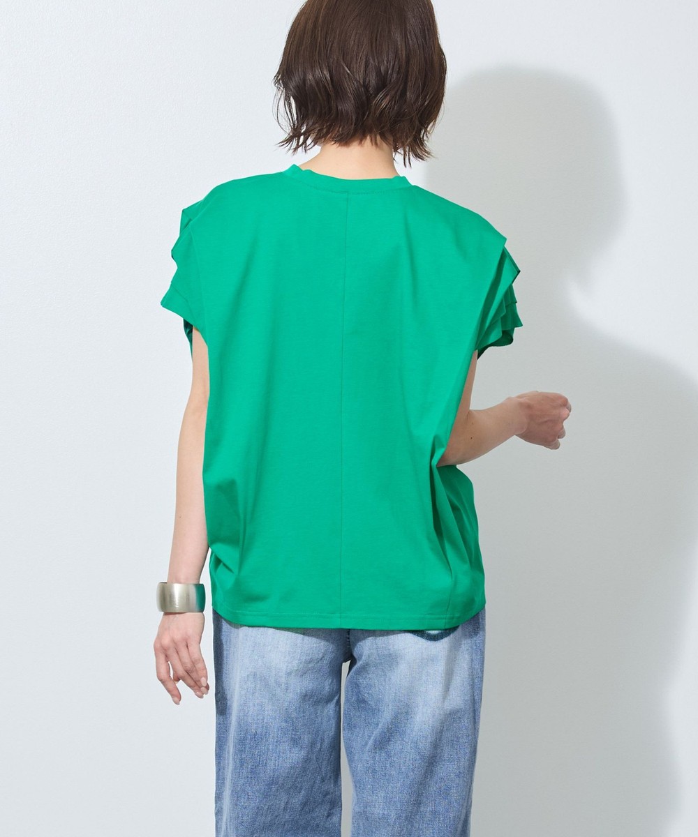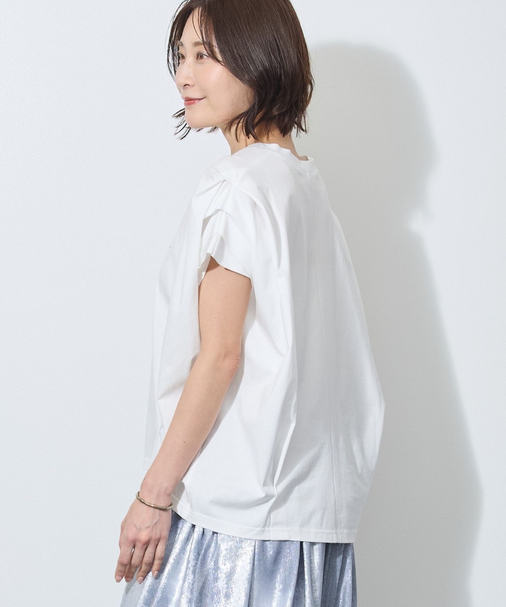 袖はフレンチスリーブ丈で、さりげなく二の腕をカバーしてくれます。