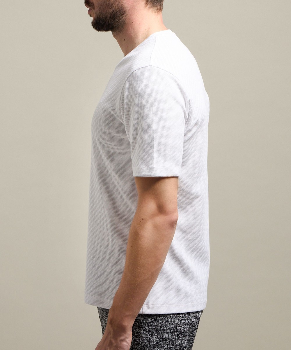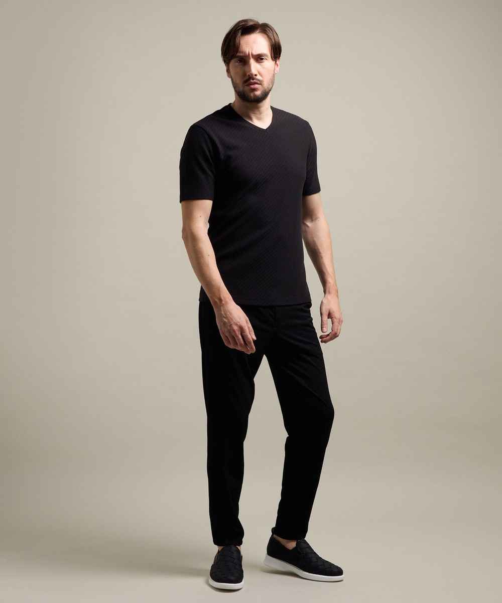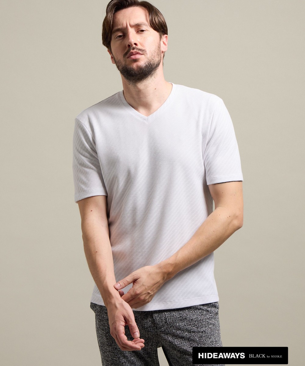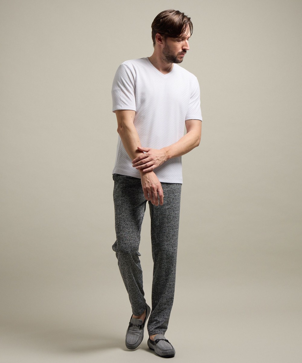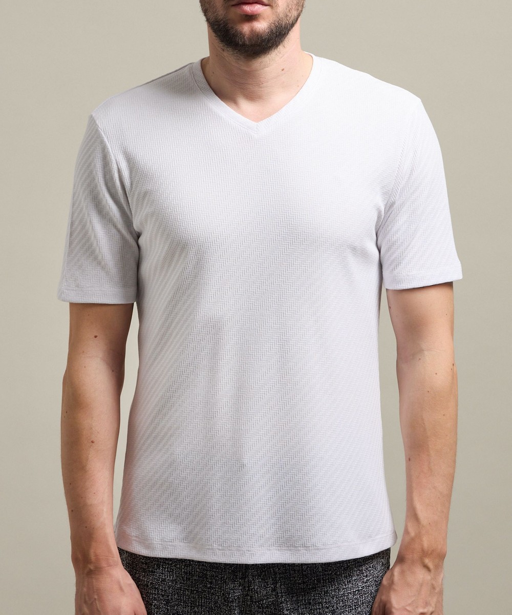 オリジナル矢羽根柄ジャカード生地を使用した、浅めのVネック半袖プルオーバーになります。