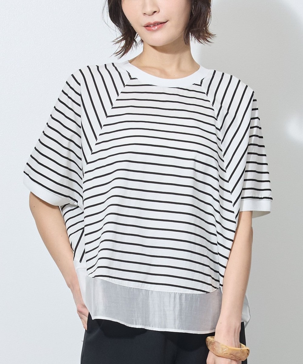 ゆるっとしたシルエットが魅力のボーダードルマンプルオーバー。