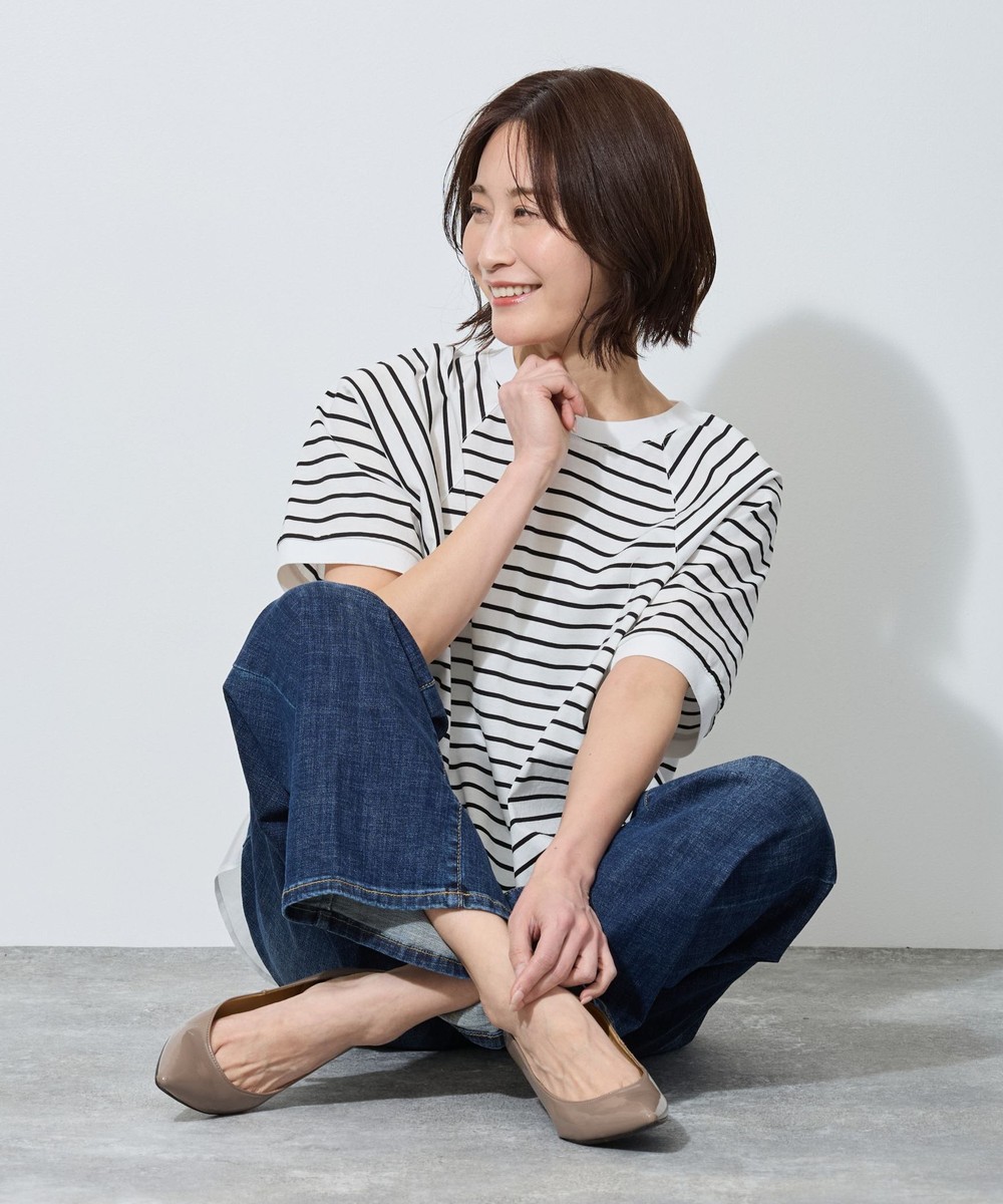 シンプルなボーダーに軽さと表情をプラスしています。