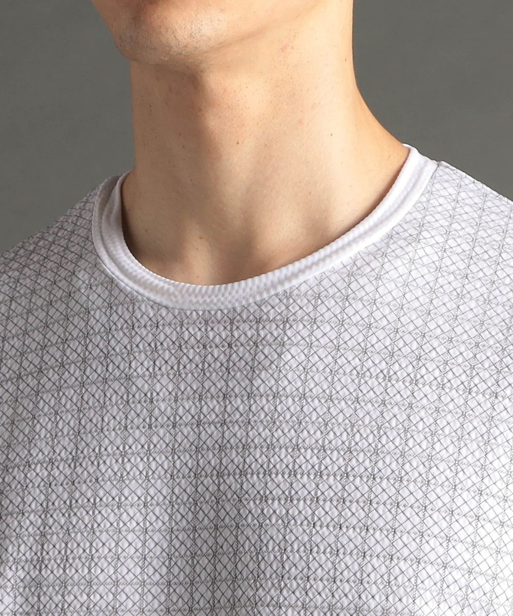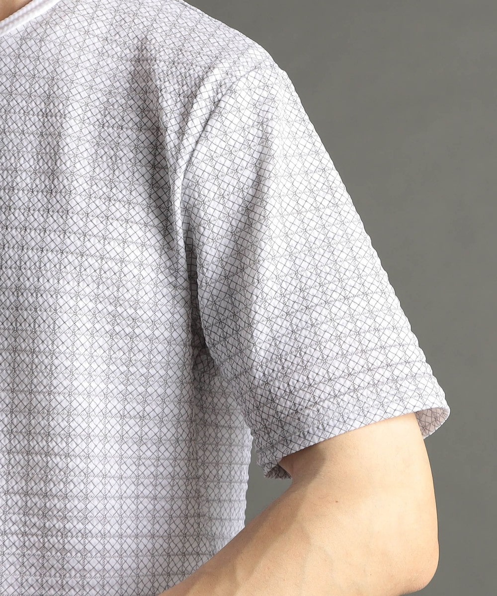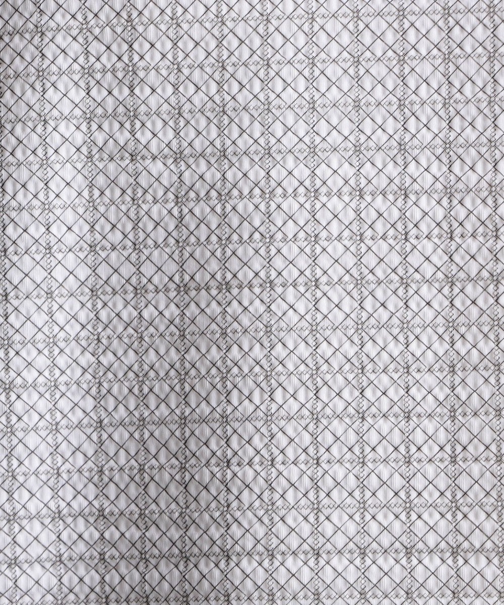 インクジェット、エンボスプリントを施しアラカルトで格子状ジオメトリック柄を表現。