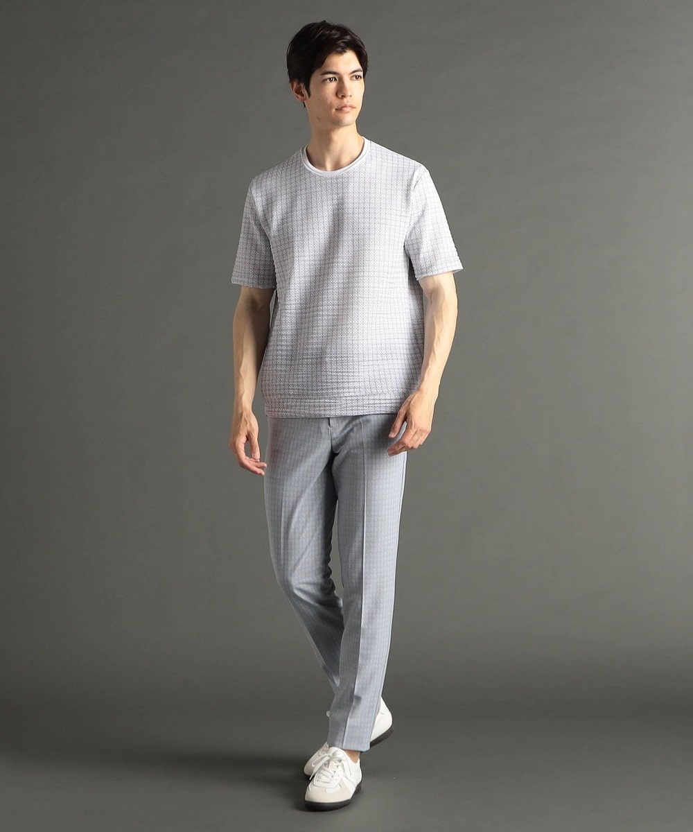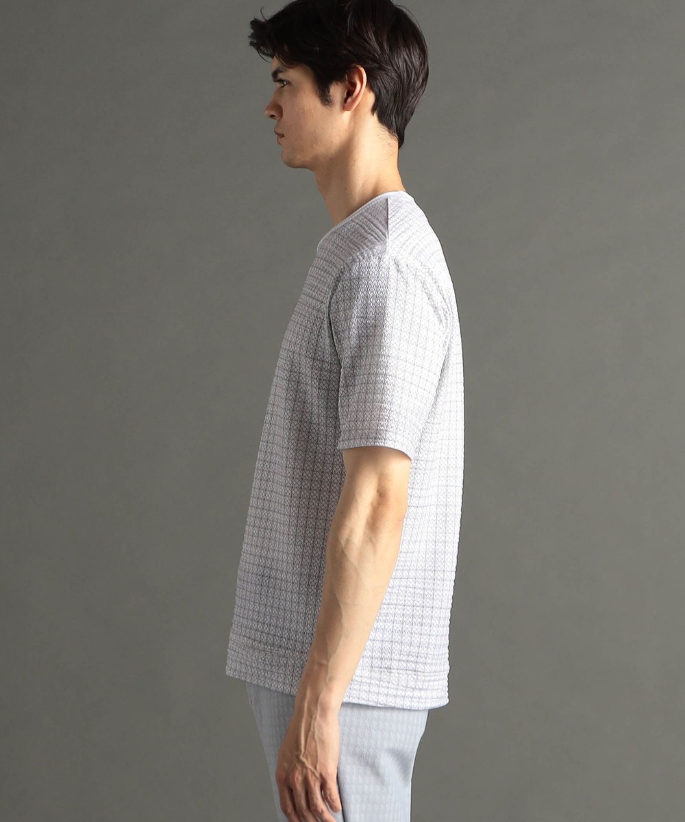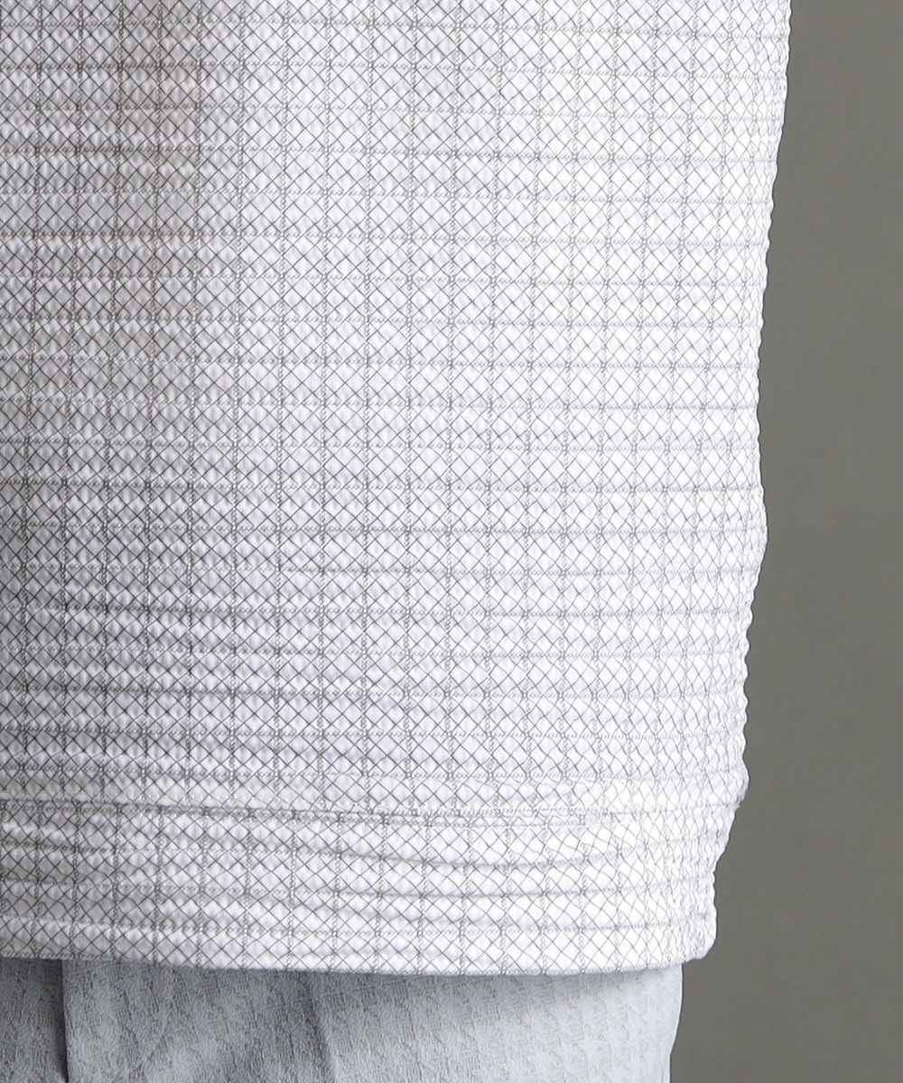 インクジェット、エンボスプリントを施しアラカルトで格子状ジオメトリック柄を表現。
