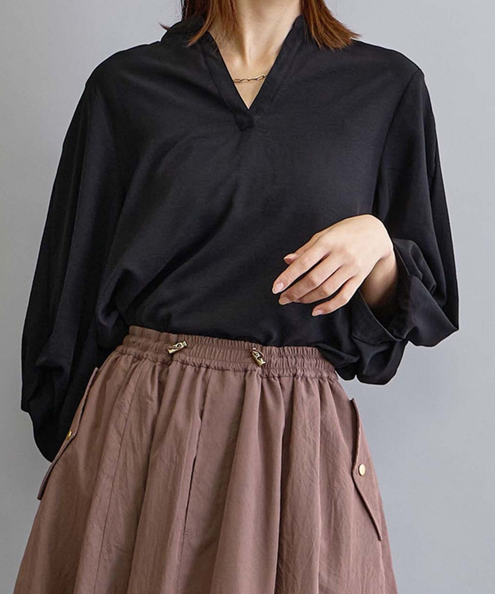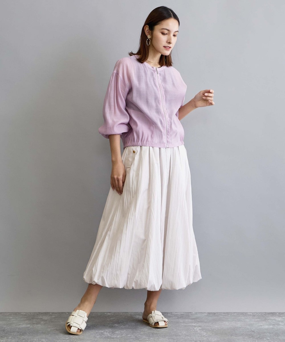 同素材のバルーンブラウス(メーカー品番:6205-8112)と合わせると統一感のあるセットアップコーデを楽しめます。