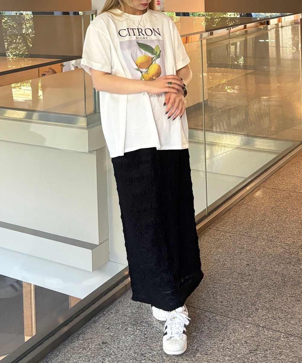シャツとパンプスでクールにも、Tシャツとスニーカーでカジュアルにも合わせやすくシンプルになりやすい夏のコーディネートのポイントに!