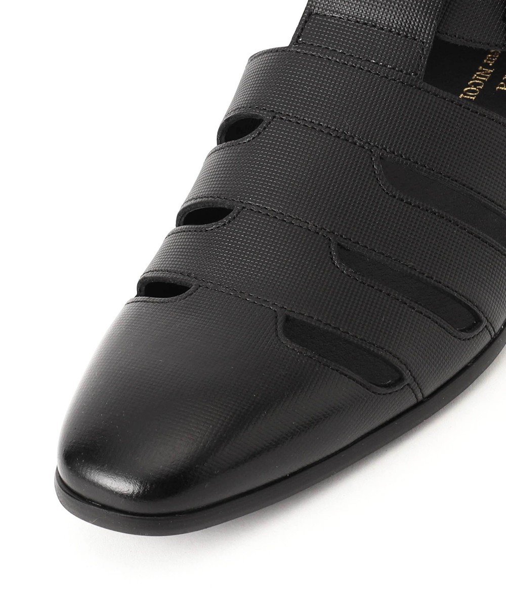 ジオメトリックエンボスの特徴的な革と国産加工ソールを使用。