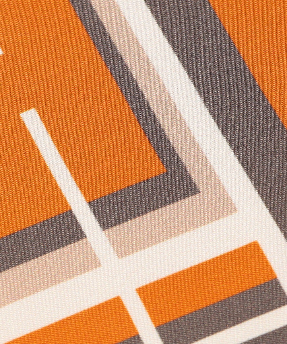 16匁ツイルシルクを使用。個性的なグラフィックプリントで展開。しなやかな風合い、上品な光沢感でラグジュアリーに仕上げました。
