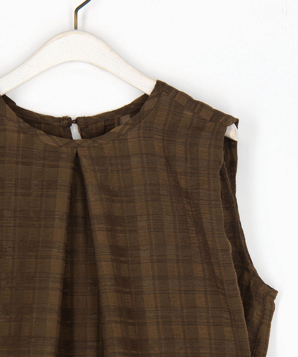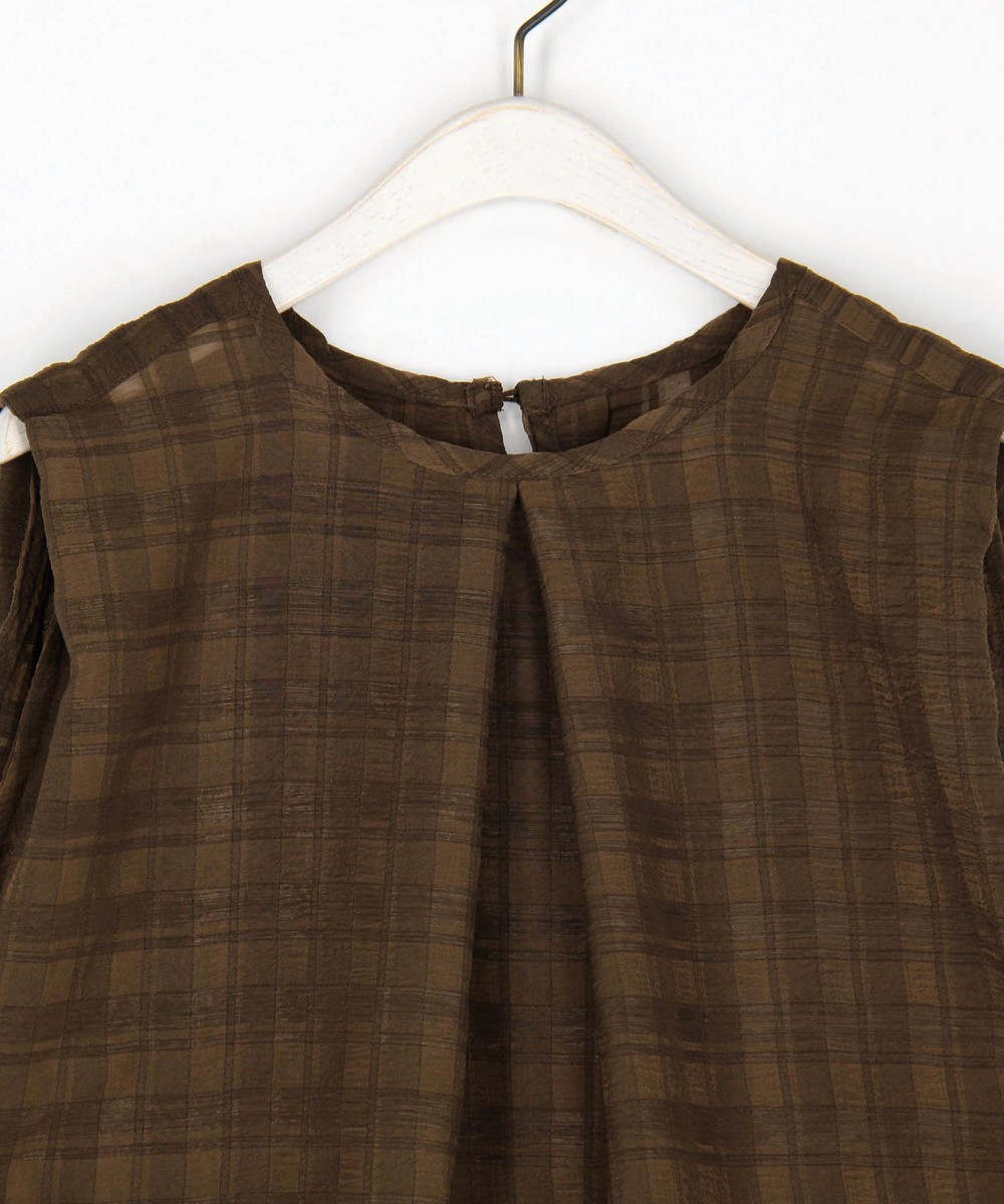 夏らしい季節感が出る、チェック柄シアー素材を使ったデザインブラウスです。
