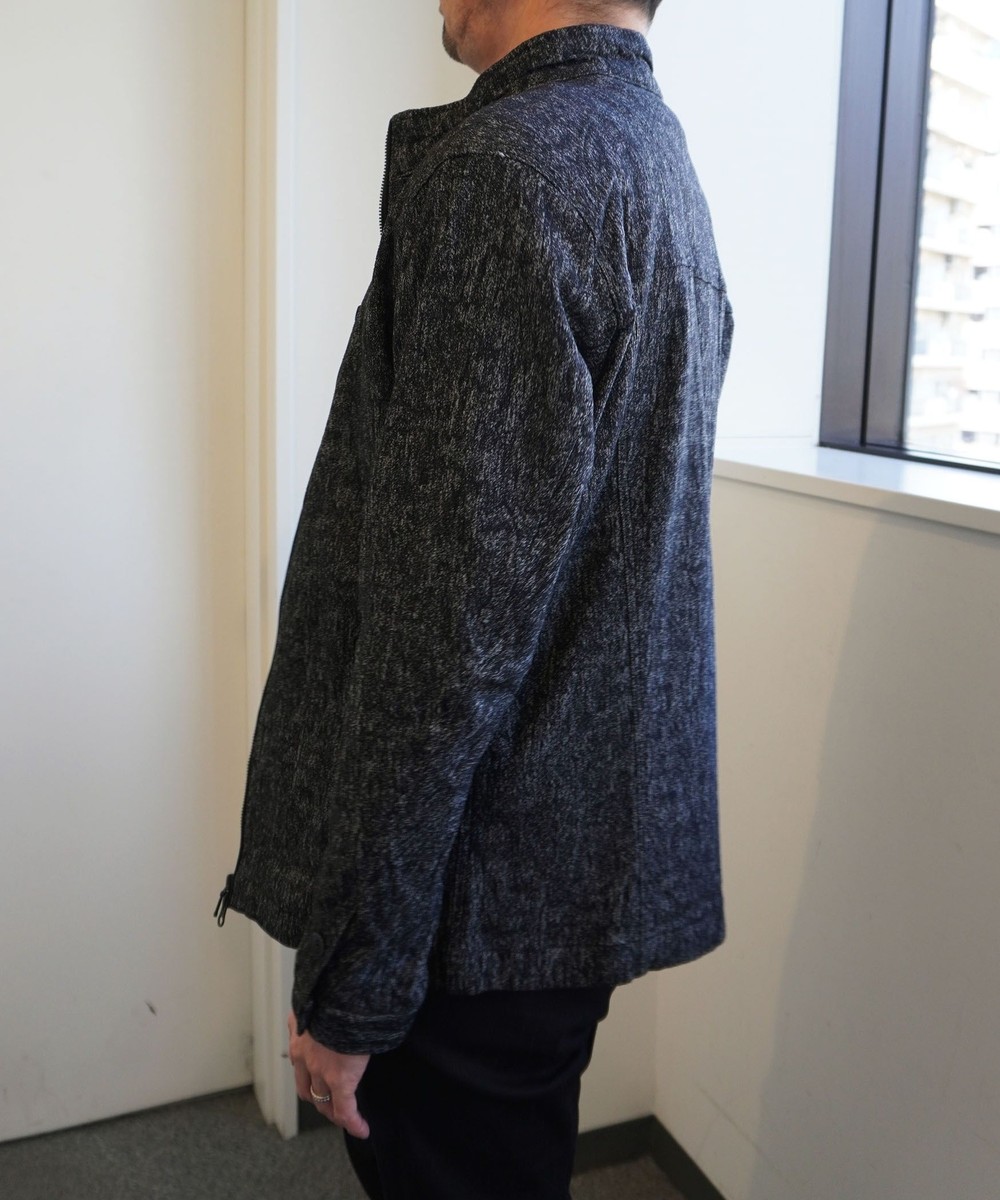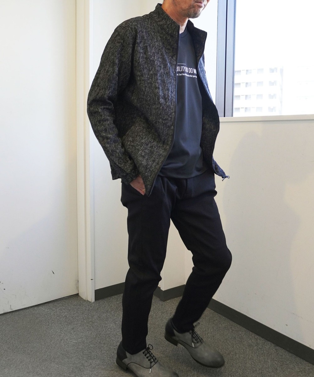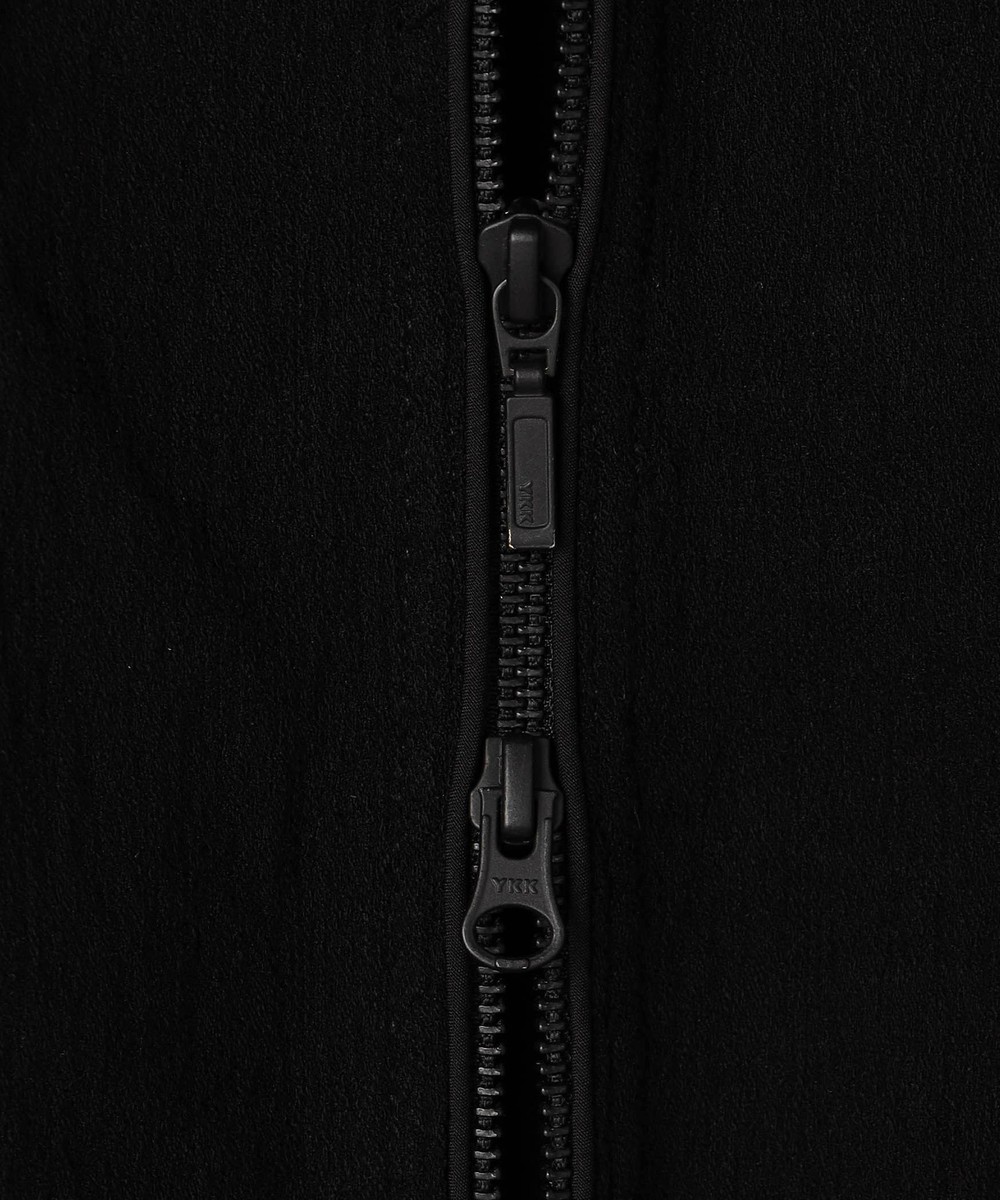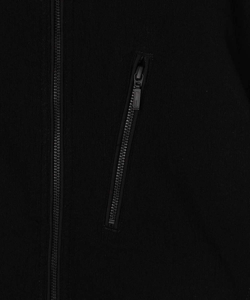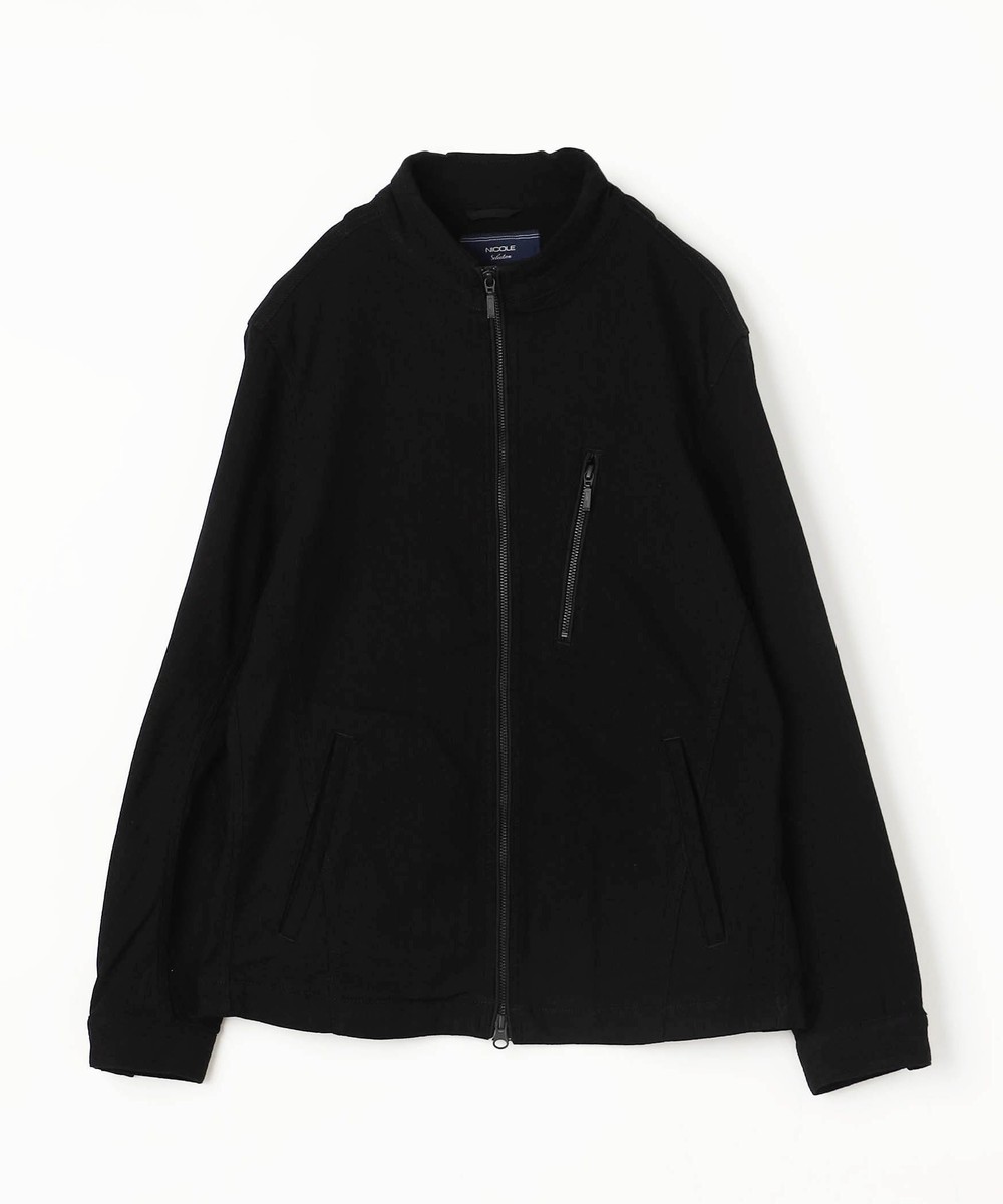 ウエストをシェイプさせた綺麗なシルエットと切り替えを利用した立体的なライダース袖が特徴のシングルライダースブルゾンです