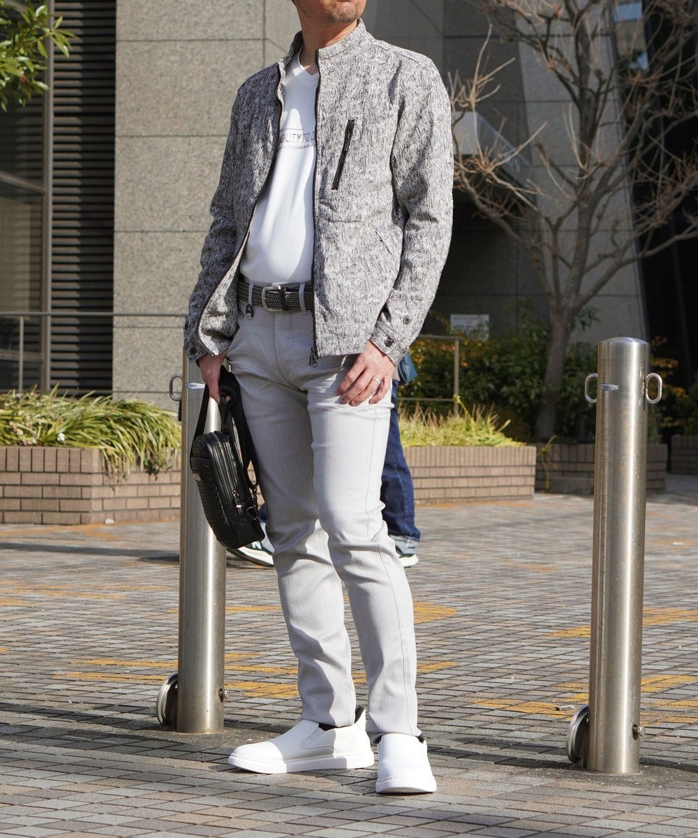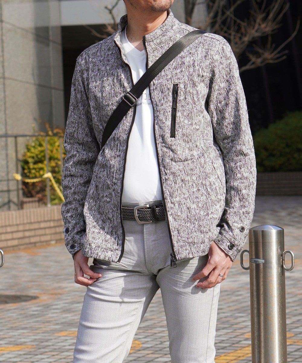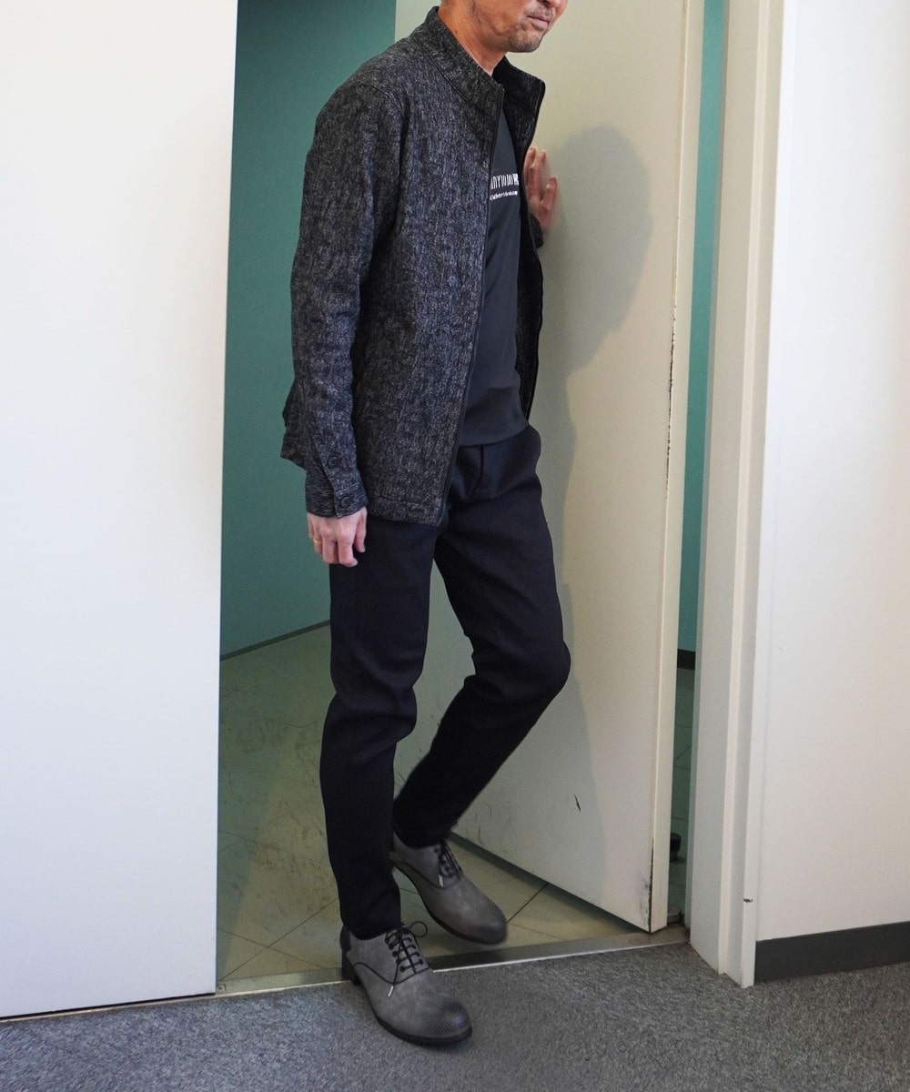 しっかりとした張りがありながらキックバックの効いた高いストレッチ性が特徴の総柄ジャカード素材を使用しています