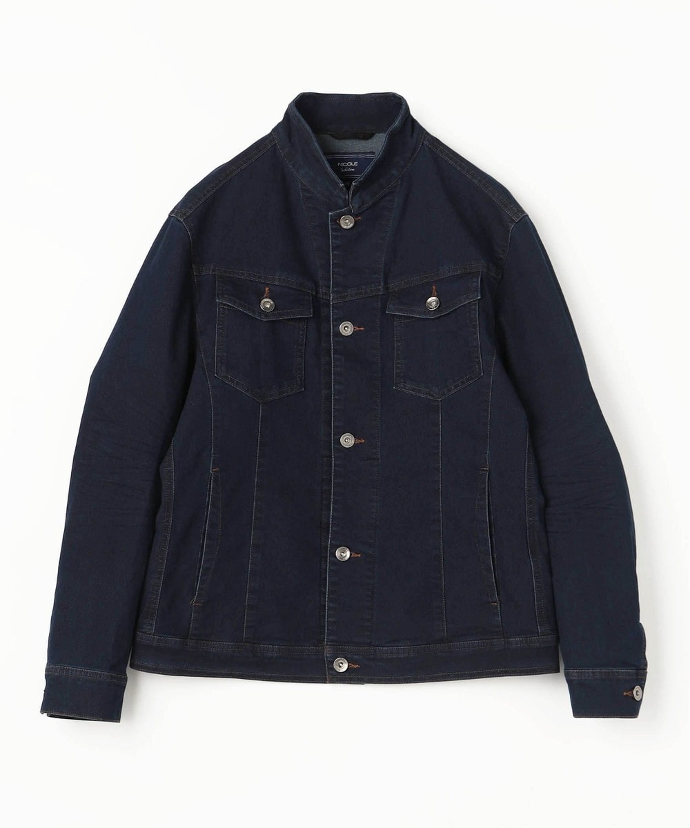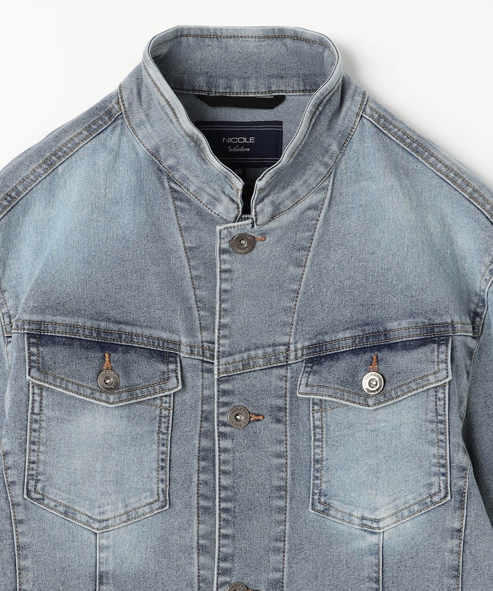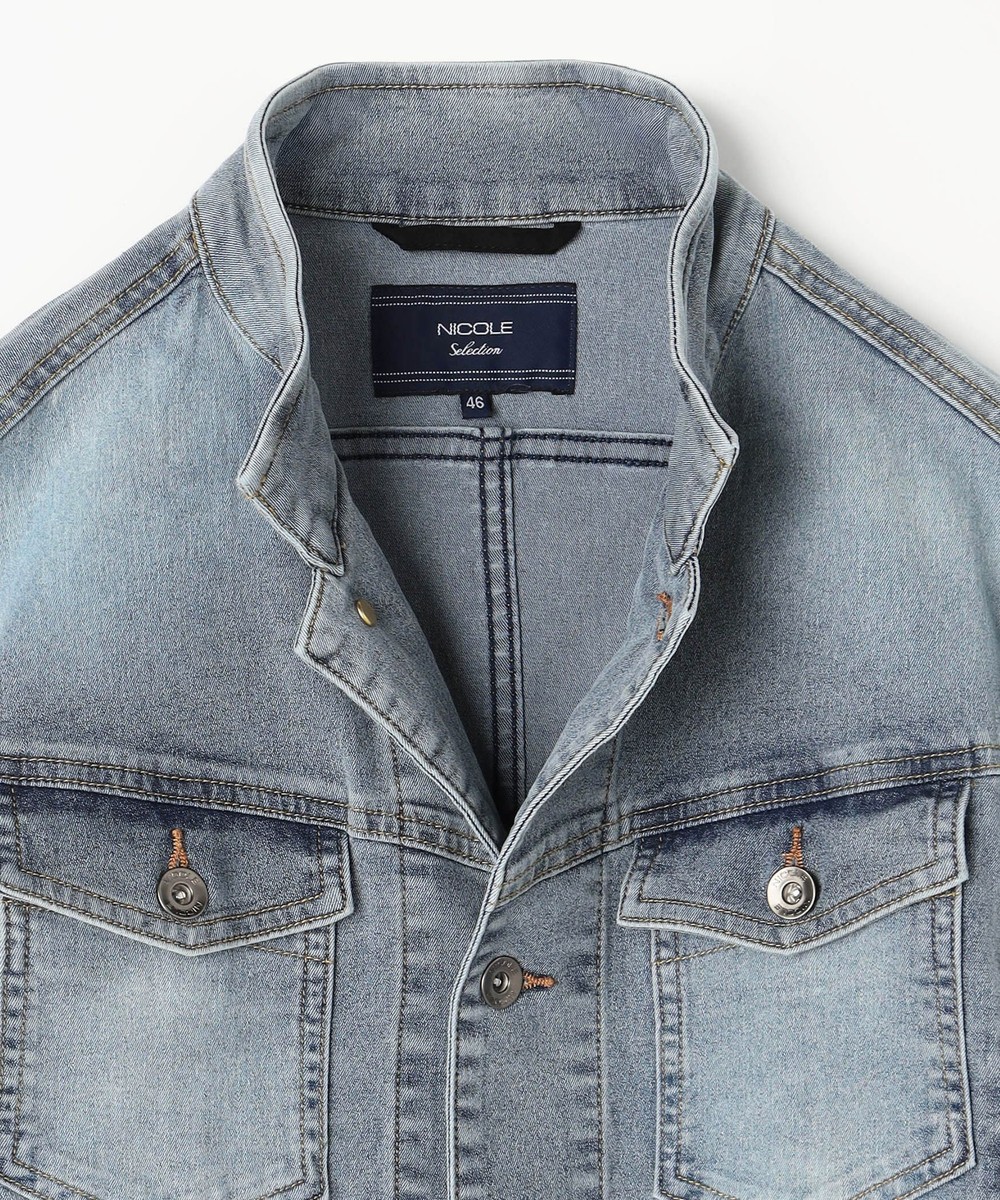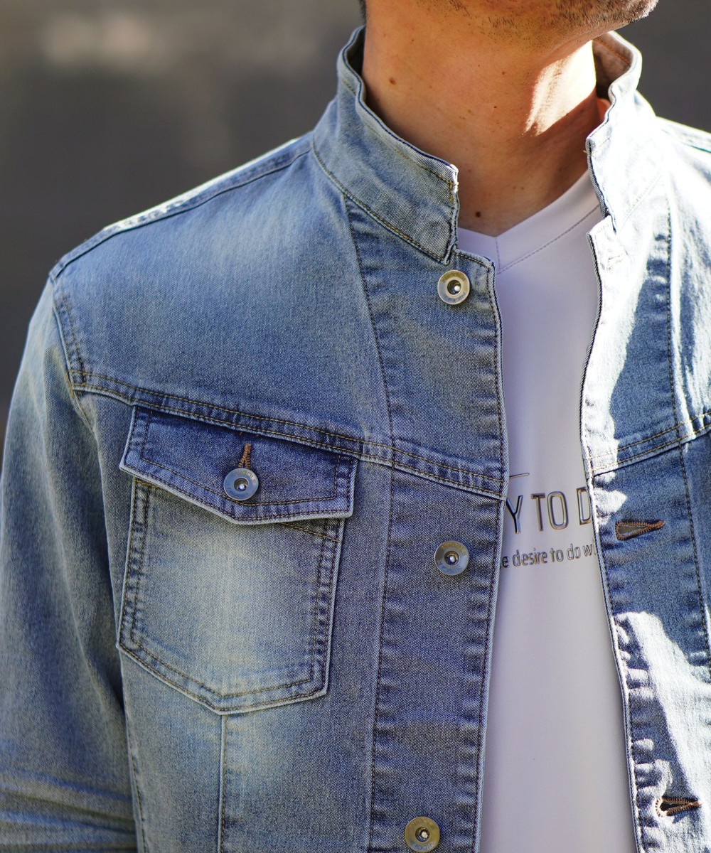 製品加工を施してデニム素材ならではの陰影感を表現しています各ボタンにはブランドロゴ入釦を使用し高級感ある1着となっています。