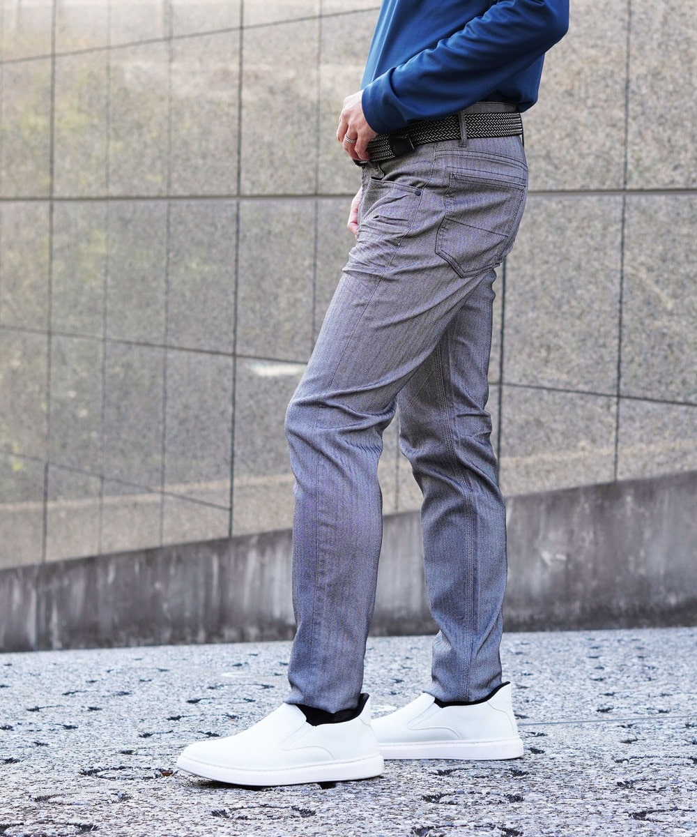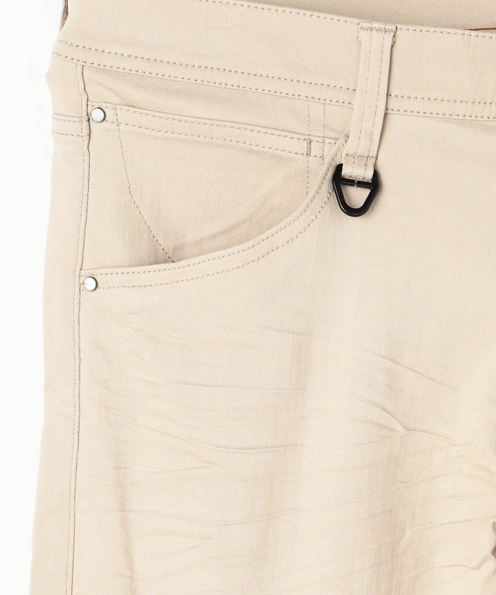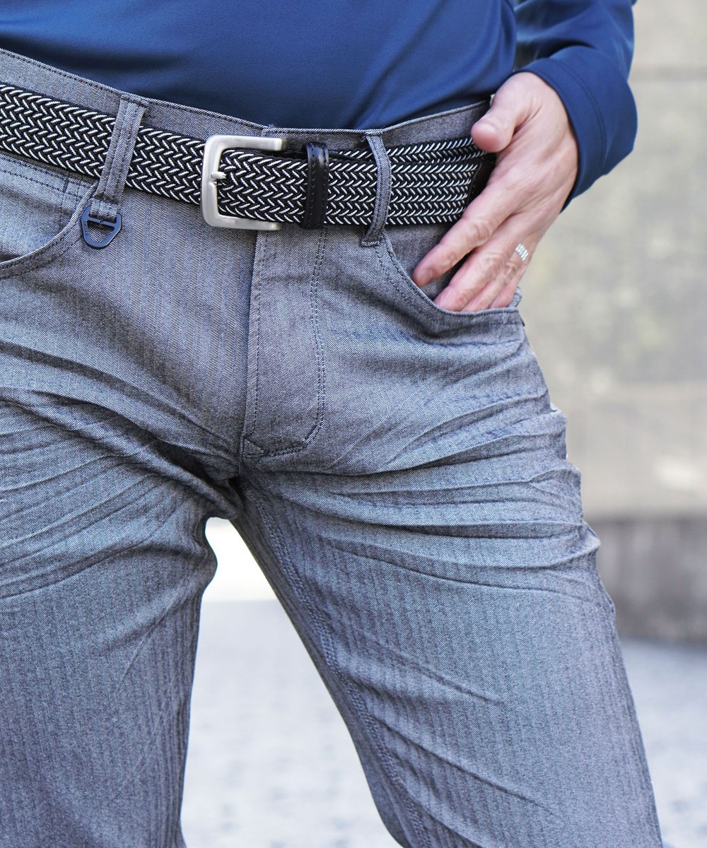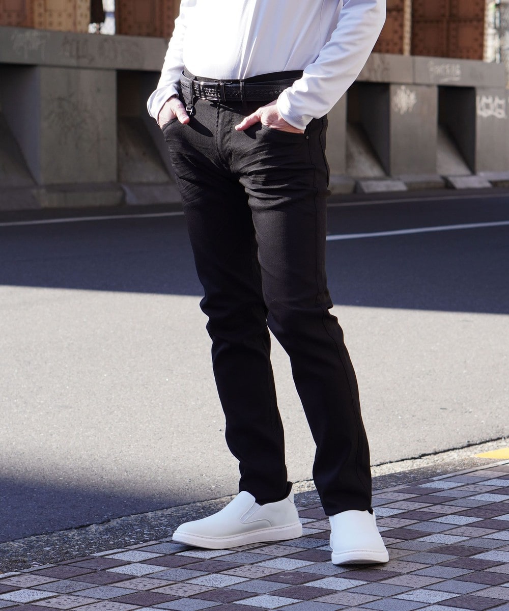 シンプルでベーシックなデザインの5ポケットパンツ。素材にあわせてウエストベルトも少し伸びる様に縫製し別布にストレッチ裏地を使用していますので穿き着心地も抜群です。