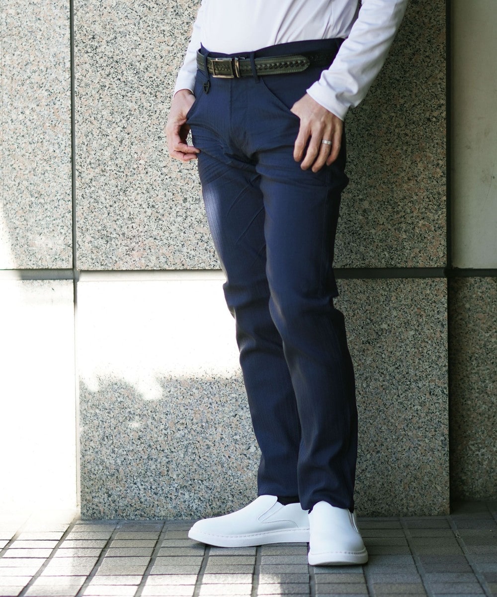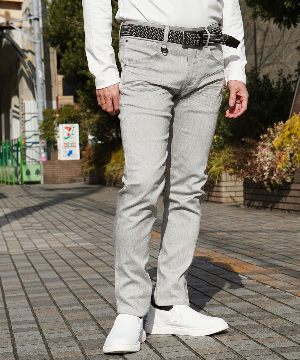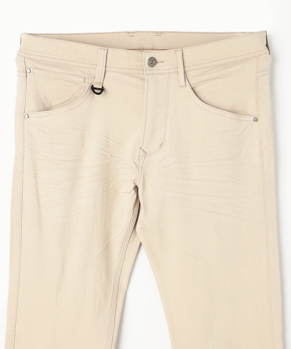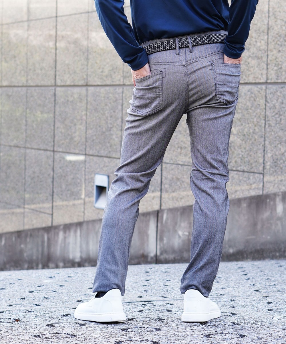 シンプルでベーシックなデザインの5ポケットパンツ。素材にあわせてウエストベルトも少し伸びる様に縫製し別布にストレッチ裏地を使用していますので穿き着心地も抜群です。