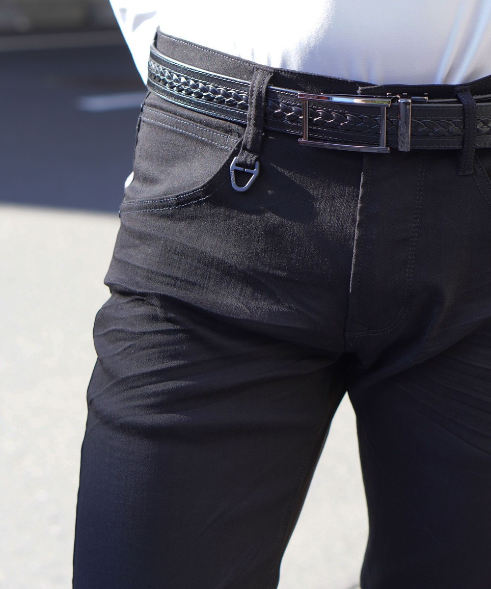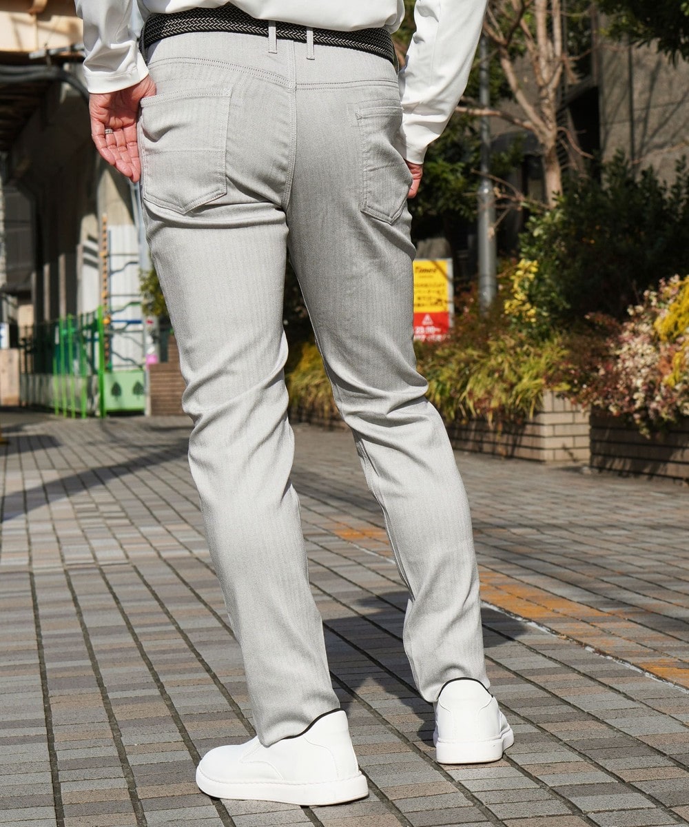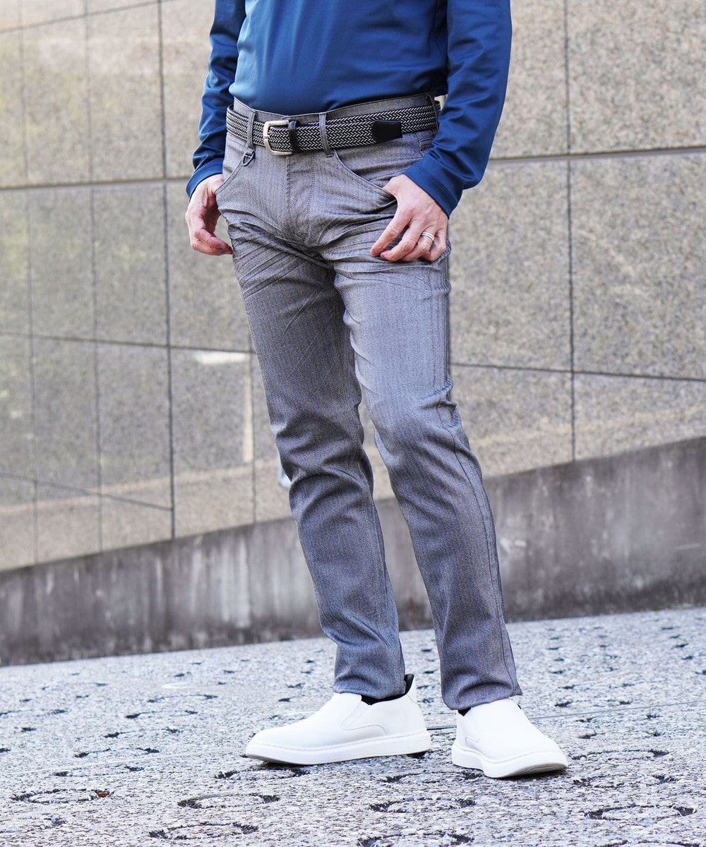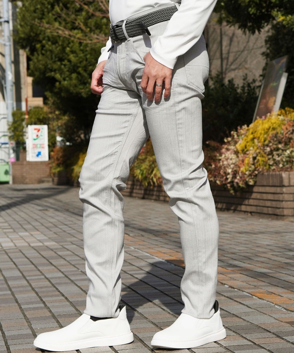 シンプルでベーシックなデザインの5ポケットパンツ。素材にあわせてウエストベルトも少し伸びる様に縫製し別布にストレッチ裏地を使用していますので穿き着心地も抜群です。