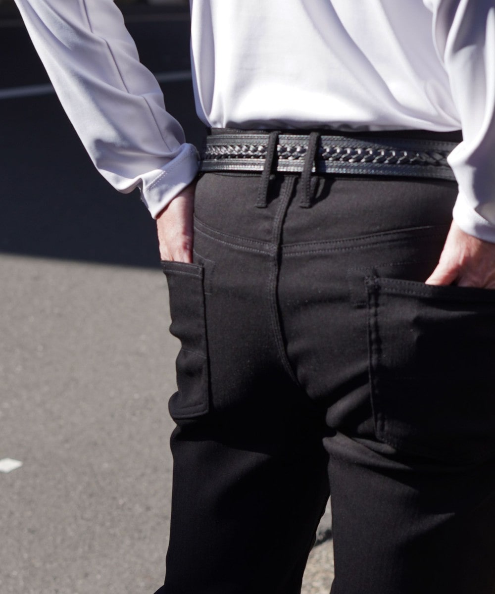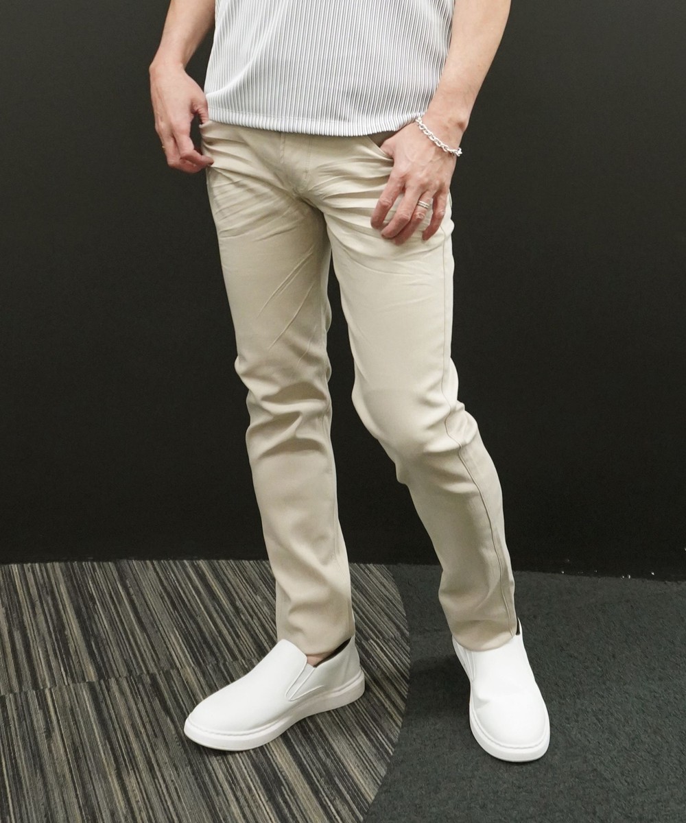ウエストと腰周りは少しタイトめ調整し、裾口にかけて細くし綺麗なシルエットとなっています
